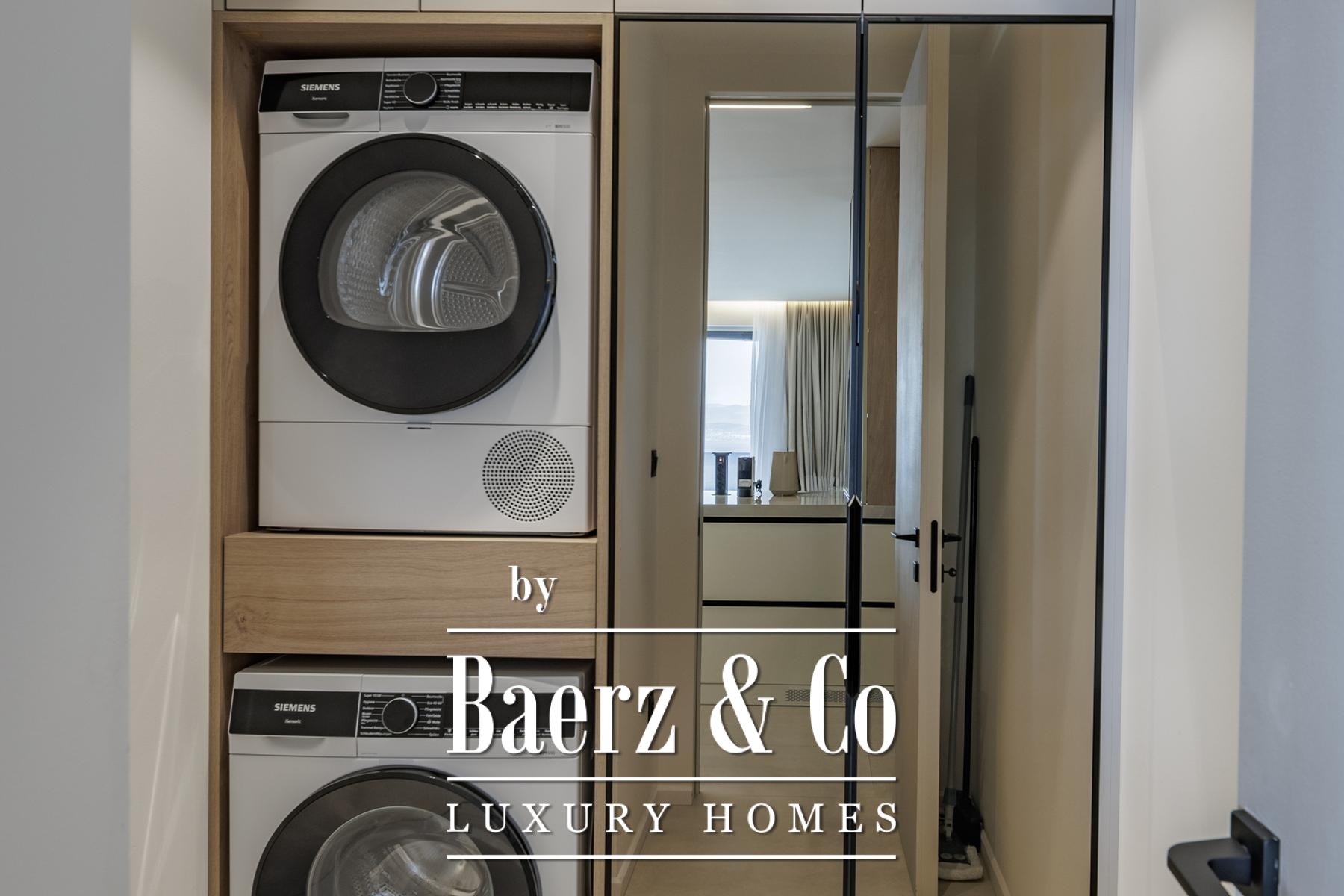 Modern materials and discreet detailing set the tone throughout, supported by a garage, two dedicated parking spaces, and additional storage to lend practical ease. The apartment is situated in a new building, providing contemporary infrastructure while inviting a sense of timelessness through curated furnishings and harmonious spaces.