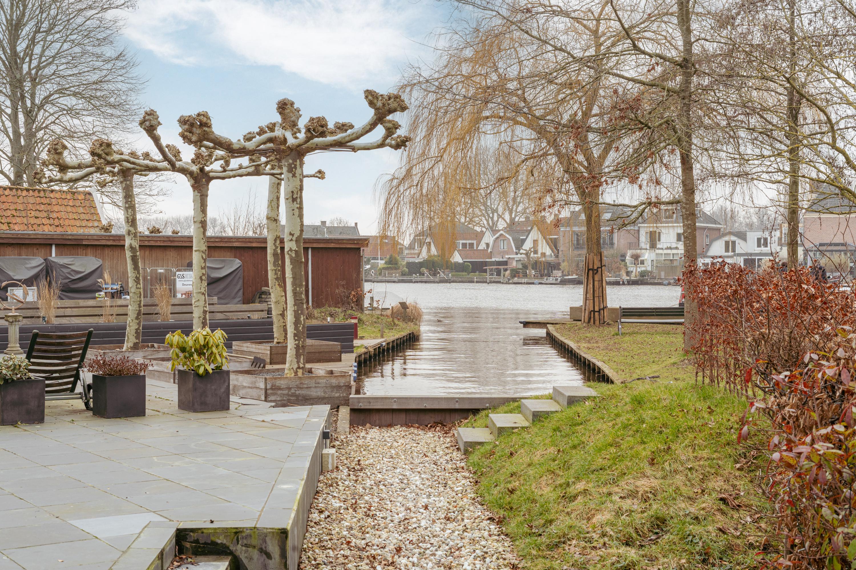 The terrace is finished with anthracite coloured tiles and a fantastic view over the river Amstel. A wonderful place to enjoy drinks with friends on summer evenings while overlooking the water; in winter, skating here is even a possibility. In the front garden, there is a separate storage unit of approximately 7 m², fitted with electricity. A rear access path runs alongside the house.