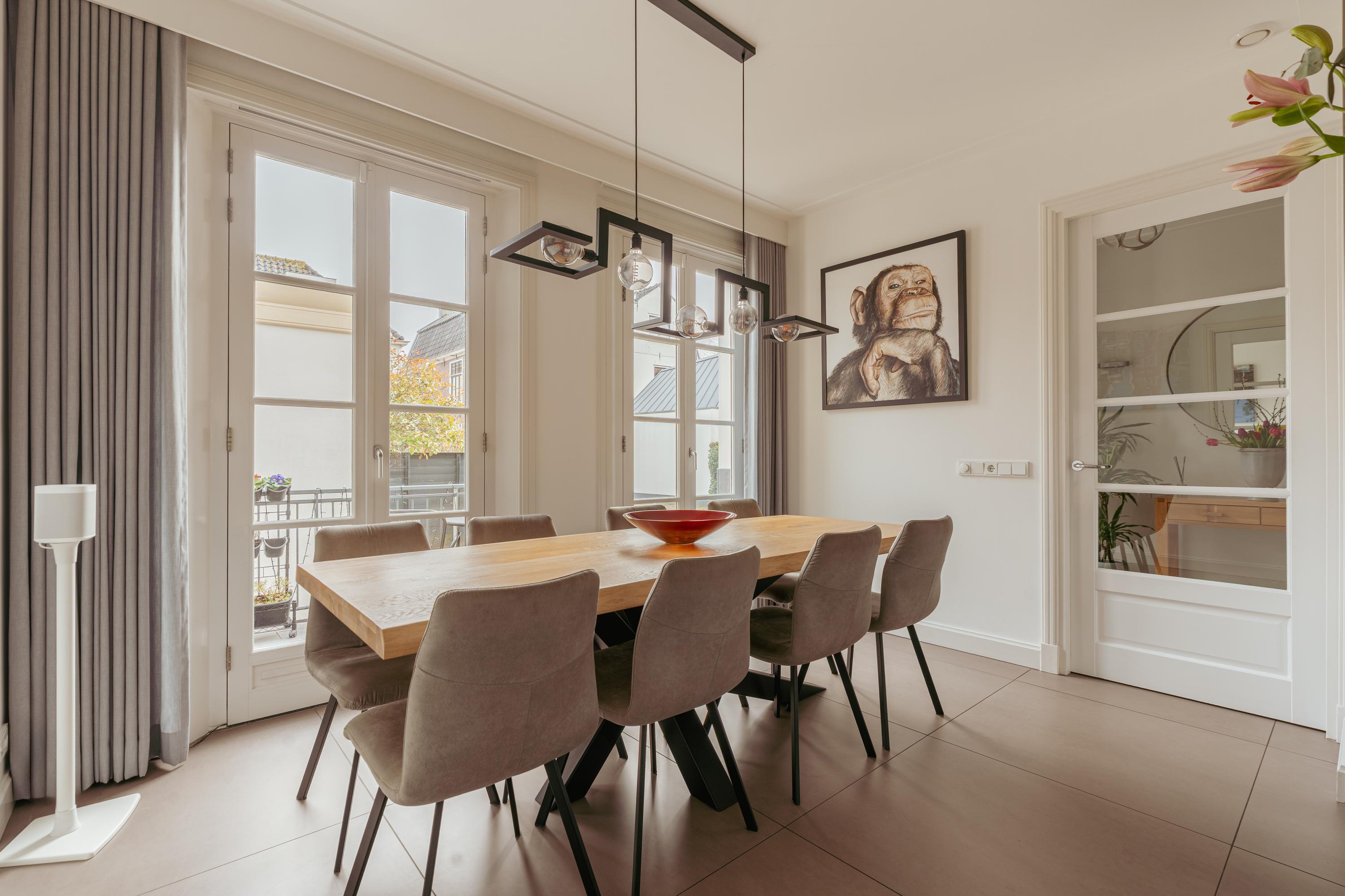 This stylish residential villa combines classical architecture with modern living comfort and forms part of a small-scale development of three connected residences. Due to its relatively recent construction year, the property is excellently insulated and equipped with, among other features, HR++ double glazing and cavity walls without wall ties, contributing to a high level of comfort and sound insulation. The carefully selected design, materials and colour palette create a calm and timeless appearance.