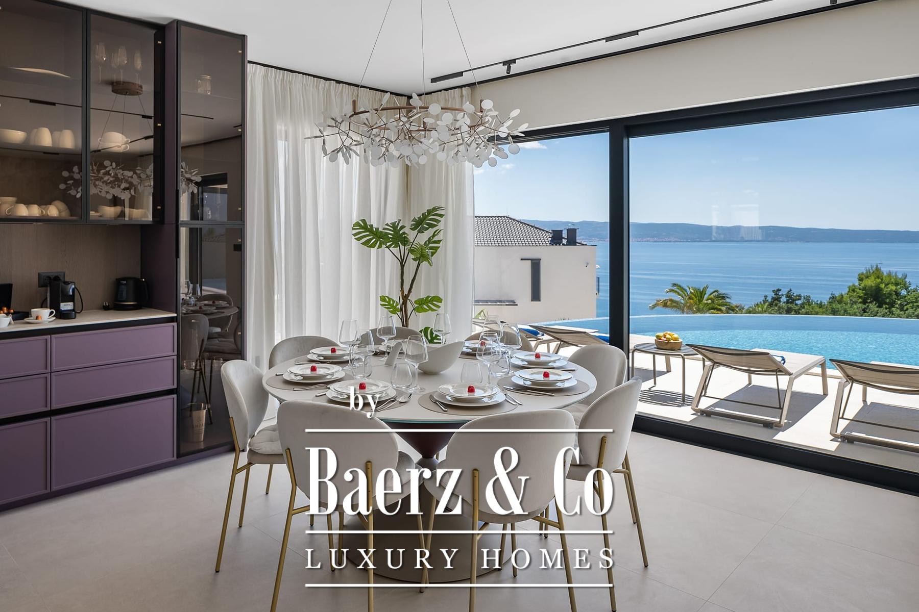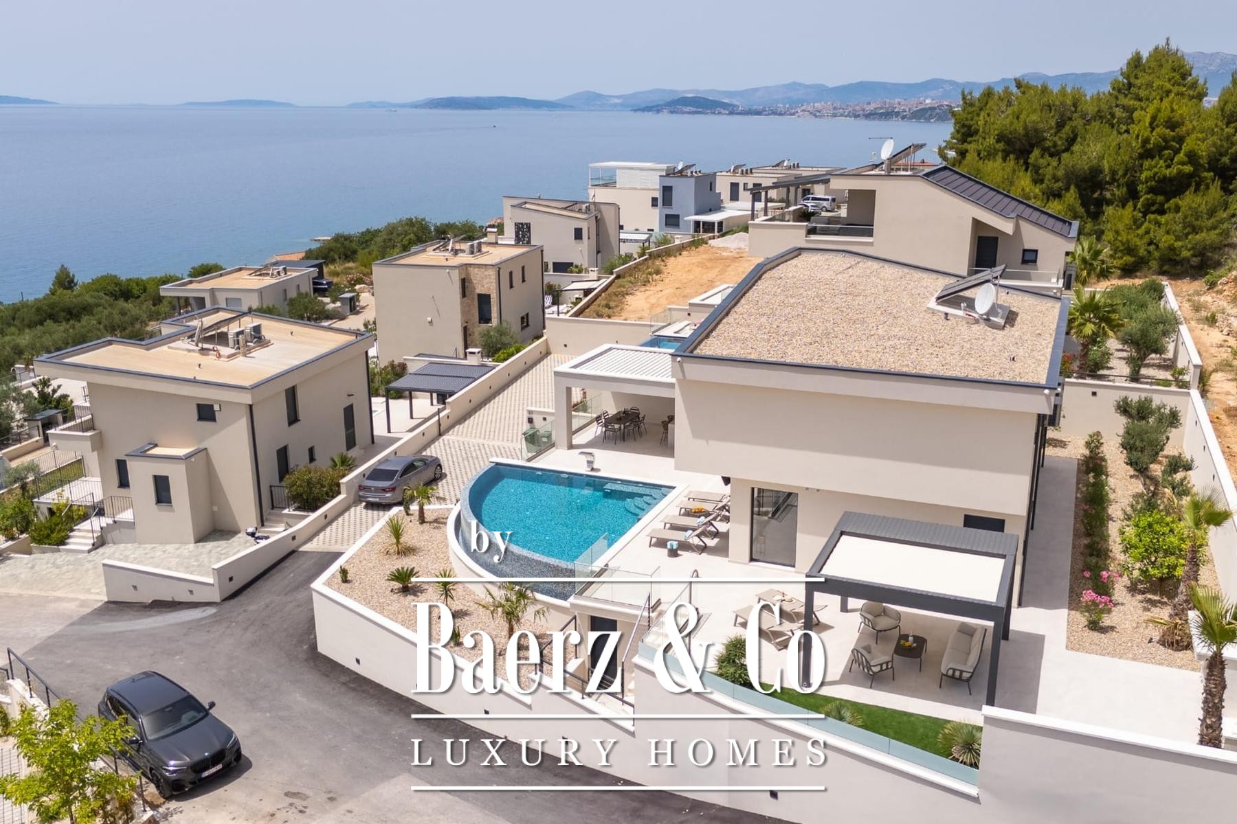 Luxury villa Podstrana presents a contemporary statement above the Adriatic, combining panoramic sea views with the quiet rhythms of hillside living. This villa, newly constructed and fully furnished, spans 328 m² across three levels, set discreetly within a 620 m² plot just 300 metres from the sea.