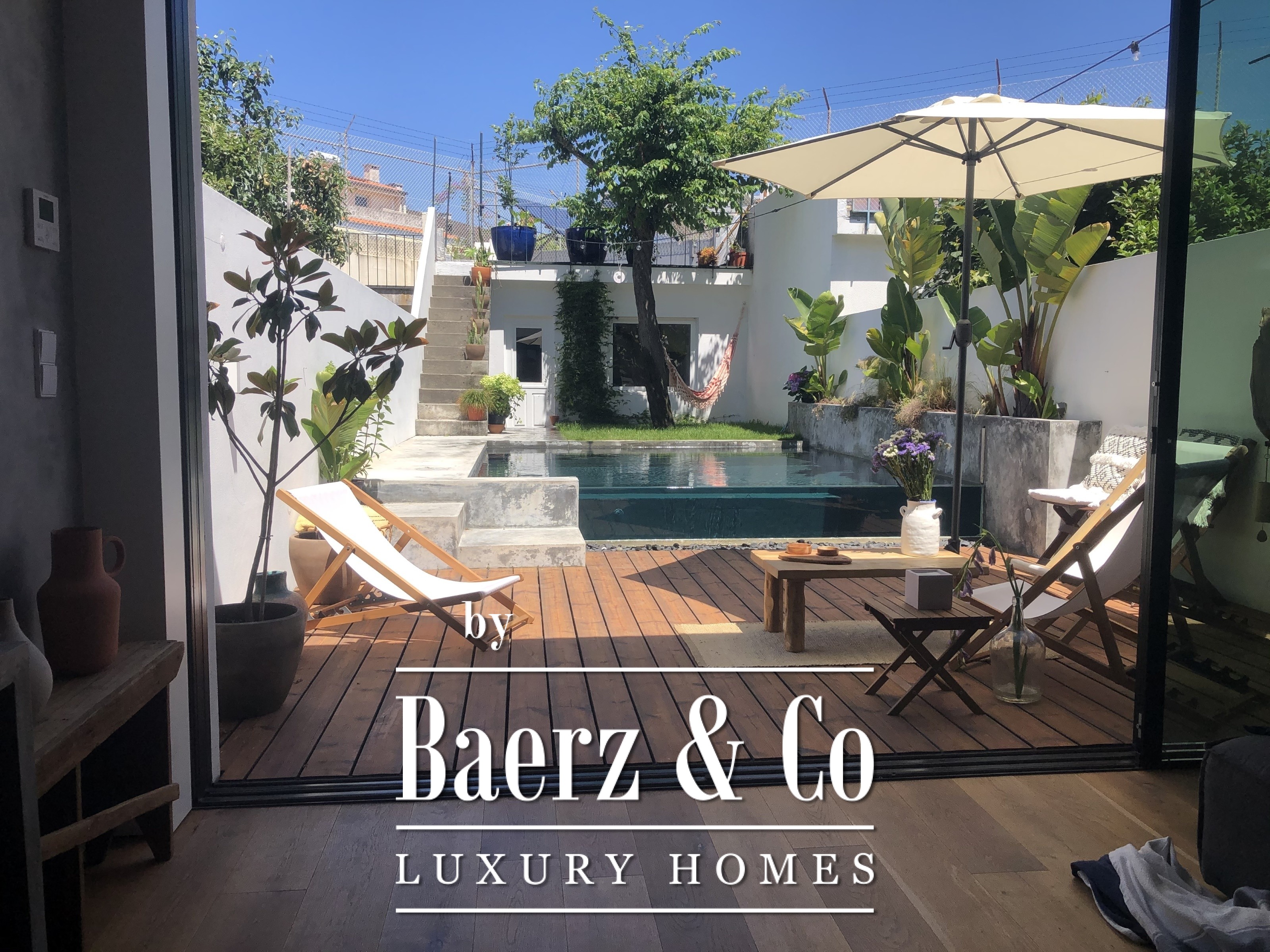 For Rent – Elegant 3-Bedroom Furnished Home in PortoThis elegant, fully furnished three-level home is located in a quiet and sought-after neighborhood of Porto. It perfectly combines comfort, style, and functionality. Tastefully appointed throughout, it offers a bright and refined living environment, ideal for a family or couple seeking tranquility close to the city’s main amenities.On the ground floor, a spacious open-plan layout welcomes you into a warm living room and sunlit dining area, seamlessly connected to a fully equipped modern kitchen. Large glass doors open onto a stunning private garden; a lush green oasis with blooming jasmine, banana plants, a plum tree, a barbecue area, a swimming pool and a pool house with its own bathroom. It's the perfect space for relaxation or enjoying outdoor meals with family