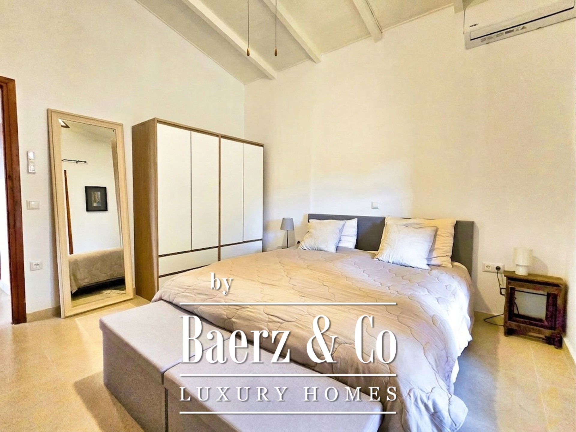 Completely renovated in 2025, the property benefits from new electrical and plumbing installations, a new roof, as well as updated kitchen and bathrooms. The home is distributed over two levels. The ground floor features an independent apartment with an open space and bathroom, extending to a boiler and storage area, along with a substantial water tank. Upstairs, the first floor spans 86.45 m² and includes a bright living and dining area seamlessly connected to the kitchen, two bedrooms, and a bathroom. The exposed wooden ceiling brings warmth throughout, while the living room opens directly onto a generous terrace, revealing unobstructed views across the Argolic Gulf.