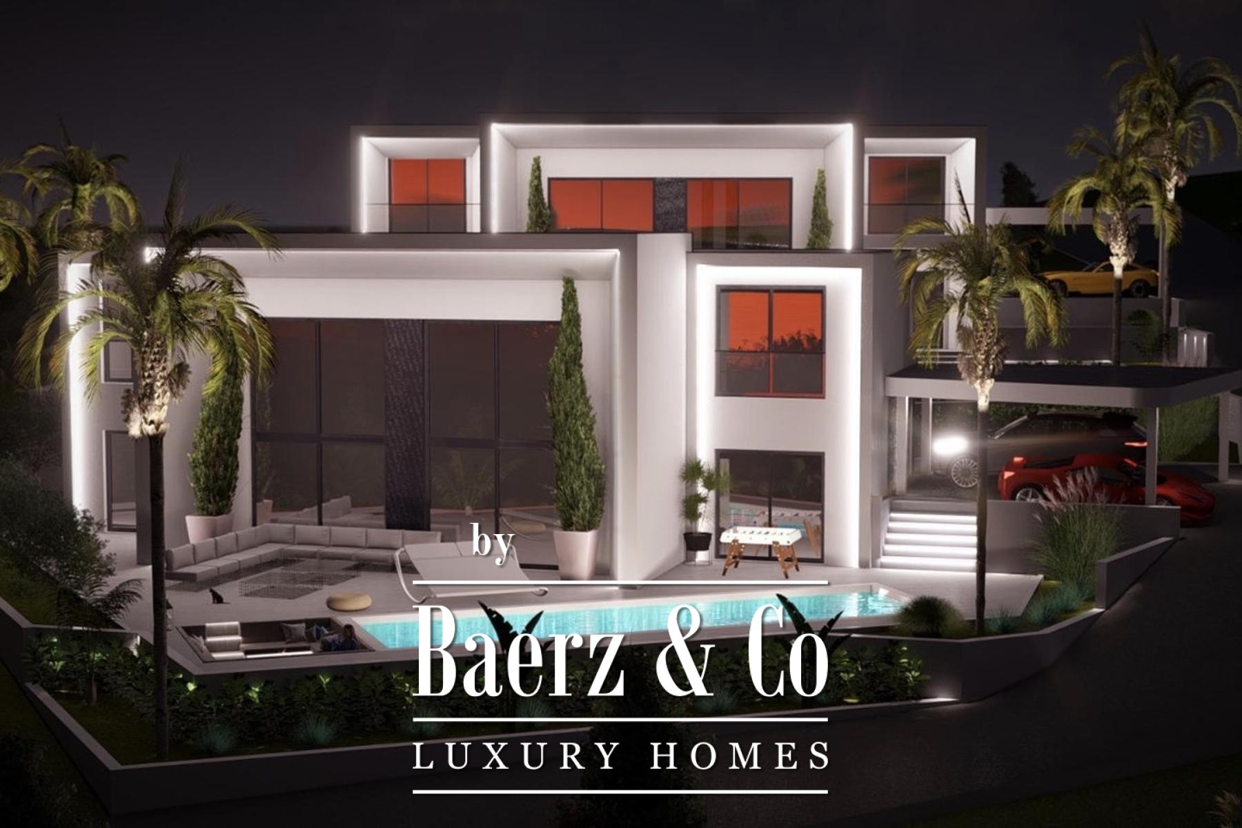 The villa’s exterior articulates outdoor living at its finest. Veiled by Mediterranean vegetation, the cascading garden frames a heated hydromassage pool of 38 square meters, a sun deck, and a lounge area anchored by a fire pit and barbecue. Covered parking for three cars, a summer kitchen, and discreet smart home systems further elevate daily comfort.