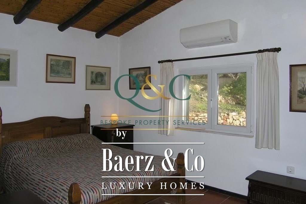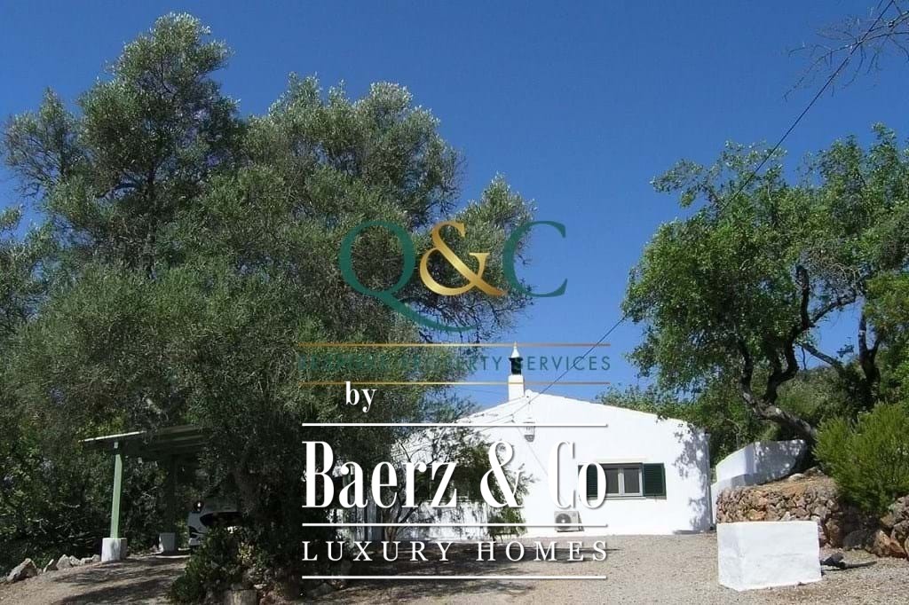 Outdoors, mature Holm oak, olive, and carob trees frame landscaped stone terraces, complemented by bougainvillea, oleanders, lantanas, and lemon trees. The 8m x 5m swimming pool, recently refurbished, is enhanced with a thermal cover for efficiency. A private drive leads to a carport with ample parking, with further potential on a lower terrace. The property benefits from borehole water, countryside and mountain views, and proximity to the Viceroy Ombria Algarve golf course, the coast, and Faro Airport, offering a peaceful yet connected lifestyle.