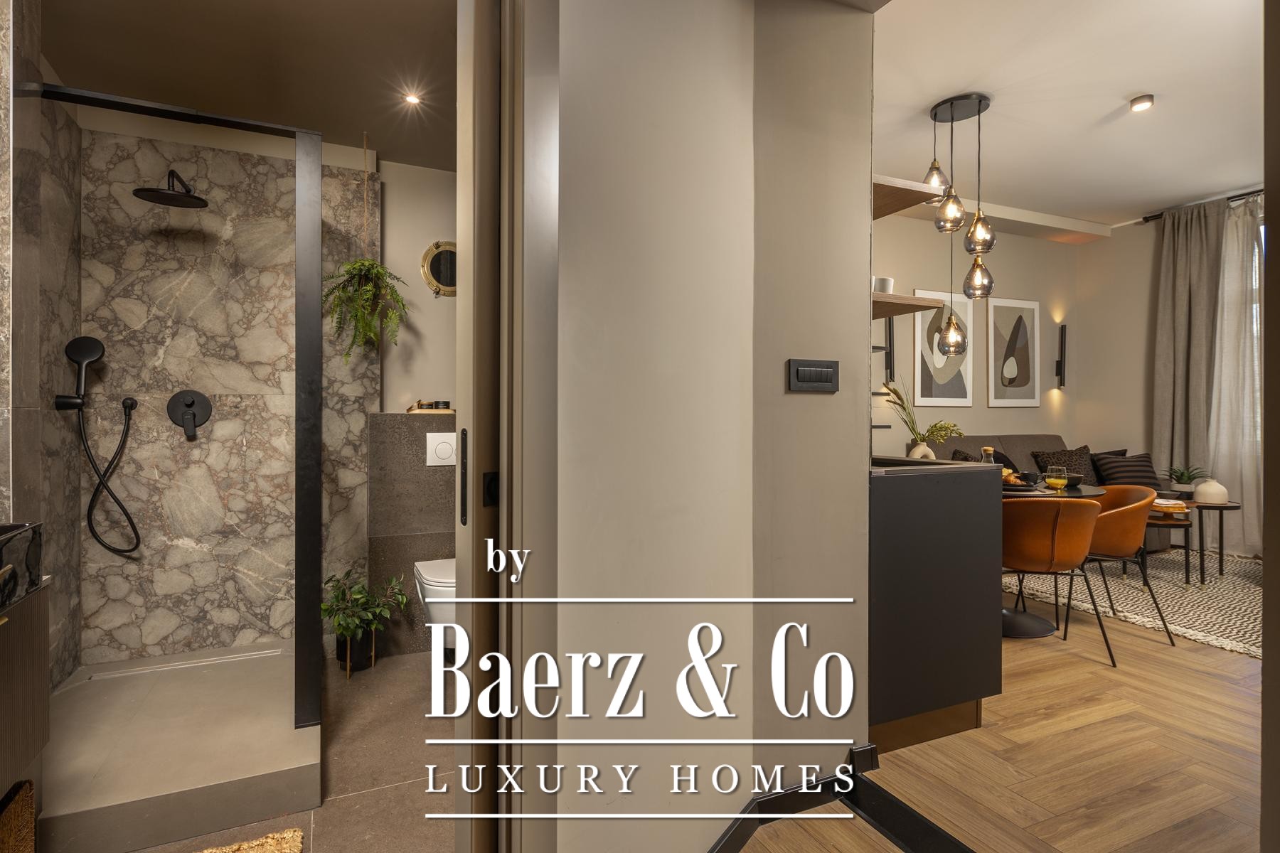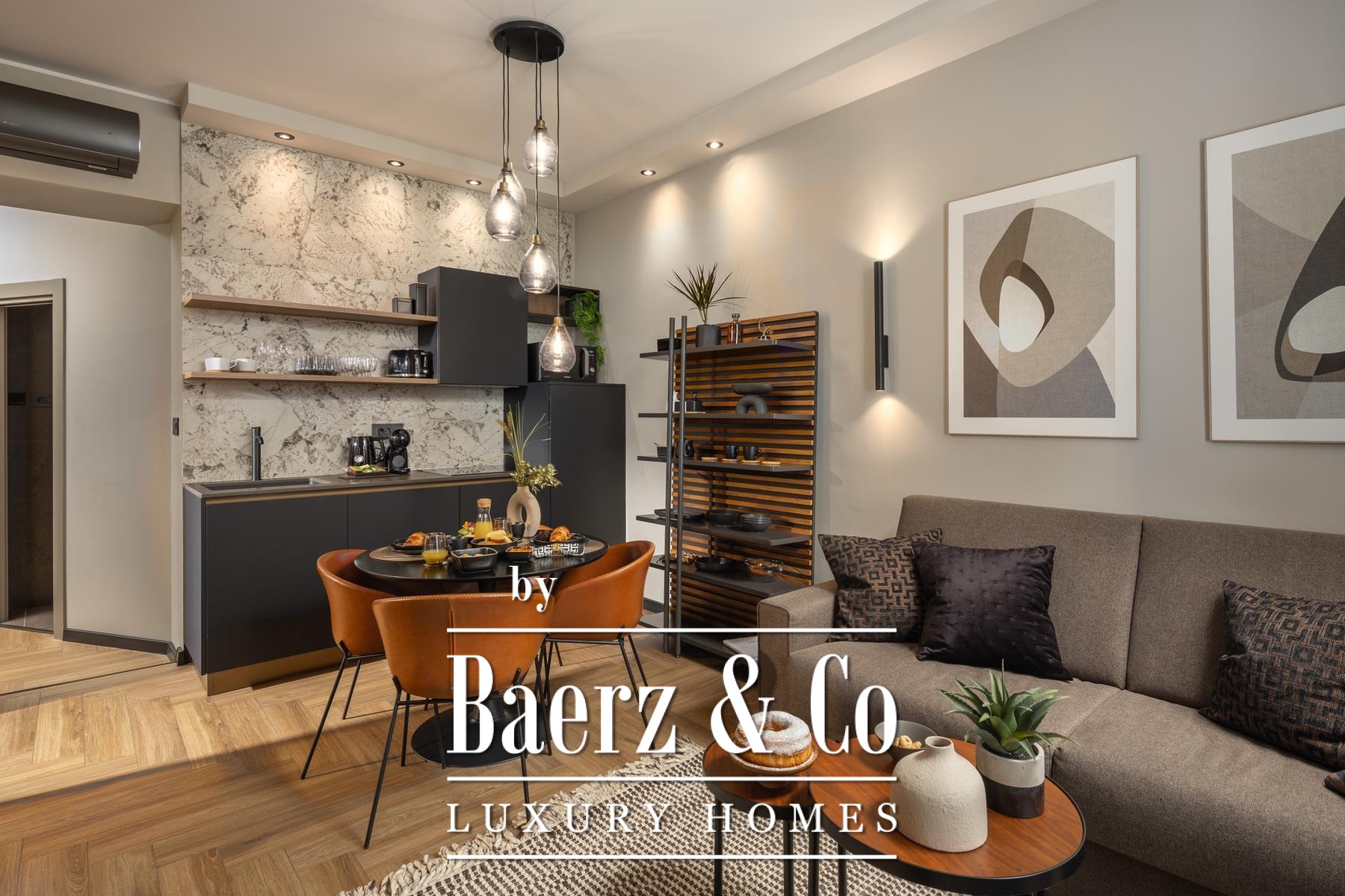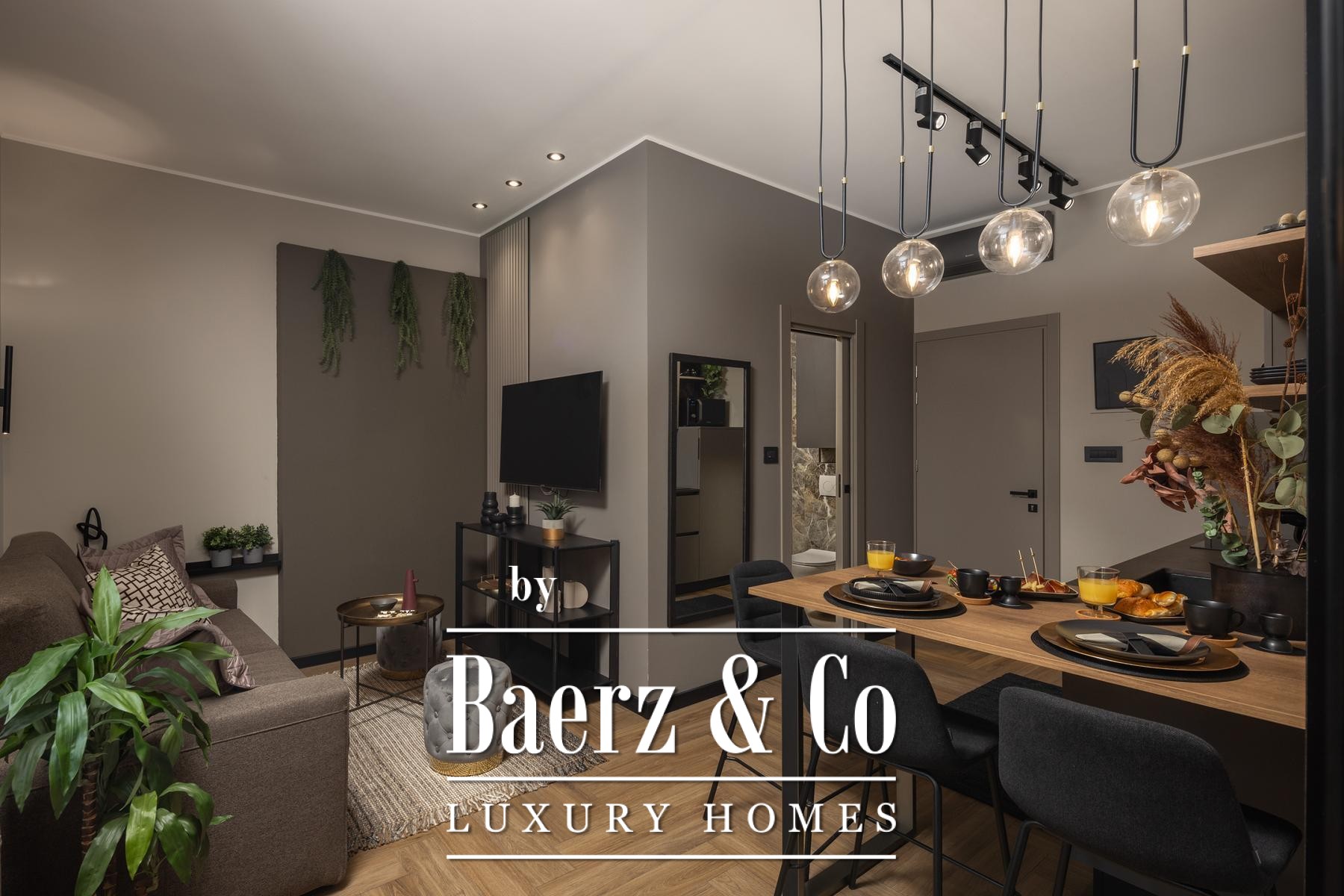 Each apartment provides a living room with kitchen and dining area, a bedroom, and a designer bathroom equipped with walk-in showers, black fixtures, and decorative stone-effect panels. The property’s position allows for exceptional connectivity, with city center amenities and transport within a short walk, adding strength to its appeal for investors seeking a luxury apartment for sale in Rijeka. The purchase includes the entire package of four units, all furniture, and equipment, supported by a secure and proven rental operation.