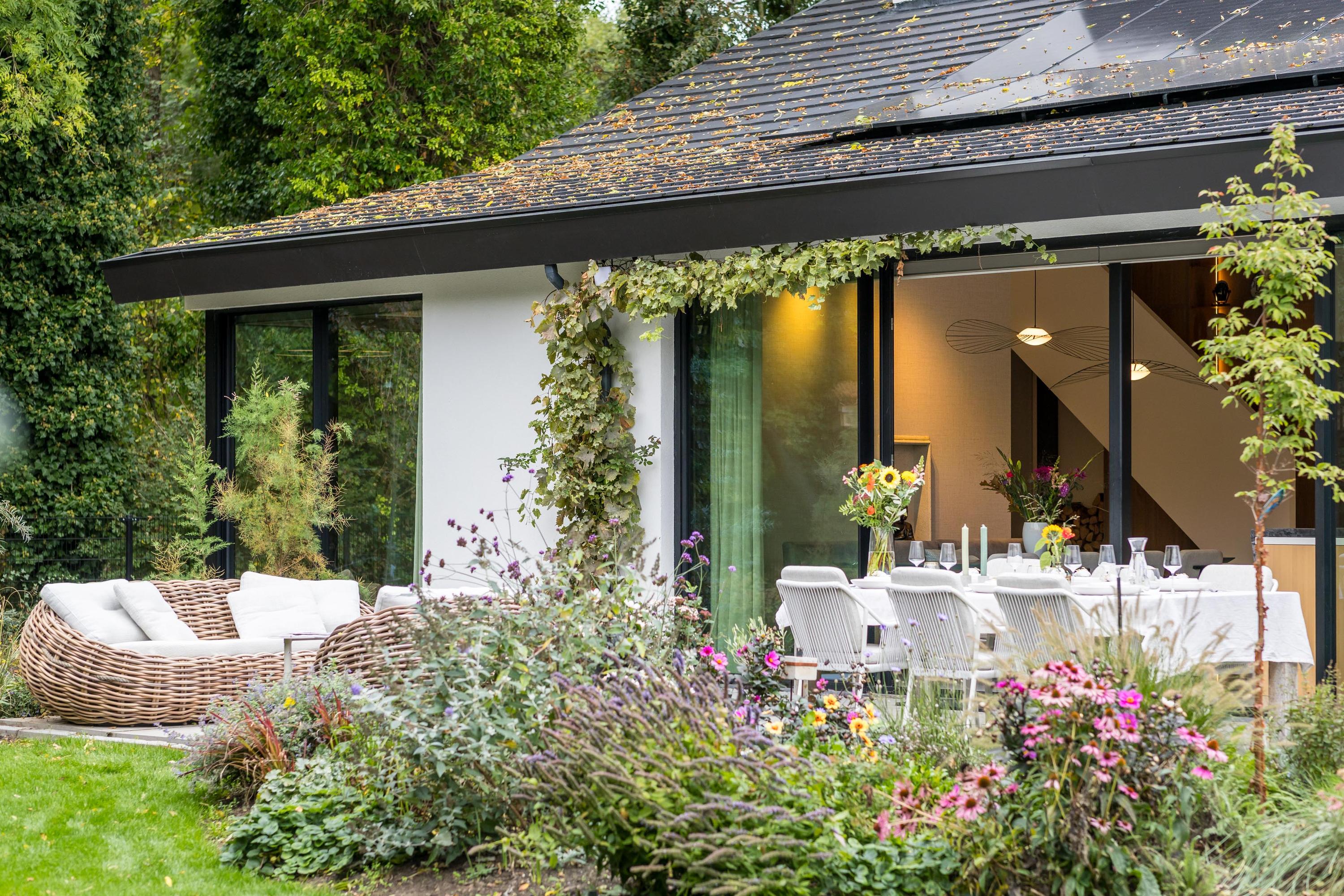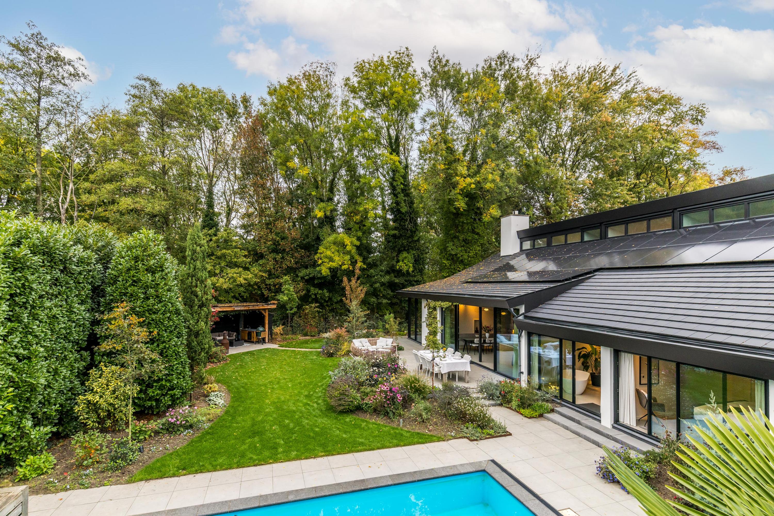 Sustainability is integrated through A++ insulation, a heat pump from 2024, 33 solar panels, and a charging station, keeping energy usage remarkably low. Living here means direct access to forest paths, rivers, and lakes, yet shops, schools—including international options—and transport links to Amsterdam and Utrecht are moments away. This luxury villa for sale in Rotterdam represents considered living where architecture, nature, and urban access meet.