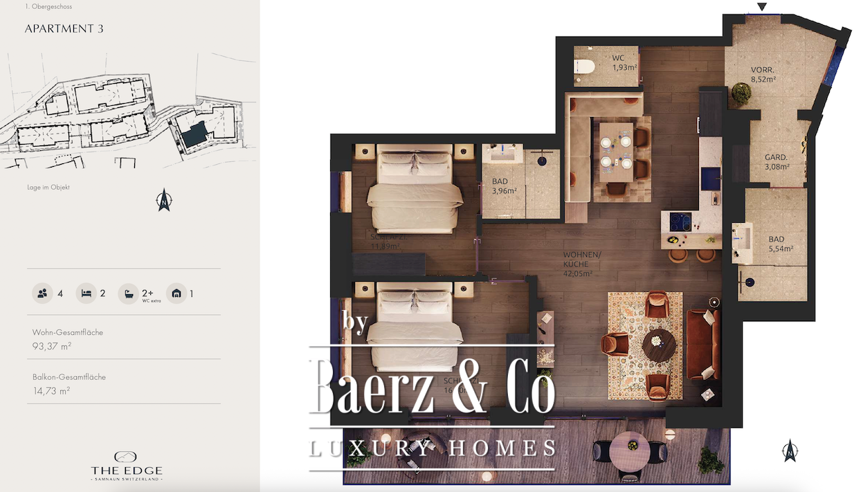 Life in Samnaun is marked by both tranquility and adventure. The village’s unique tax-free status allows for distinctive shopping experiences, while the broader area is renowned for skiing, hiking, and mountain biking surrounded by the raw beauty of the Swiss Alps. The Edge 1734’s apartment offering is an invitation to understated mountain luxury.