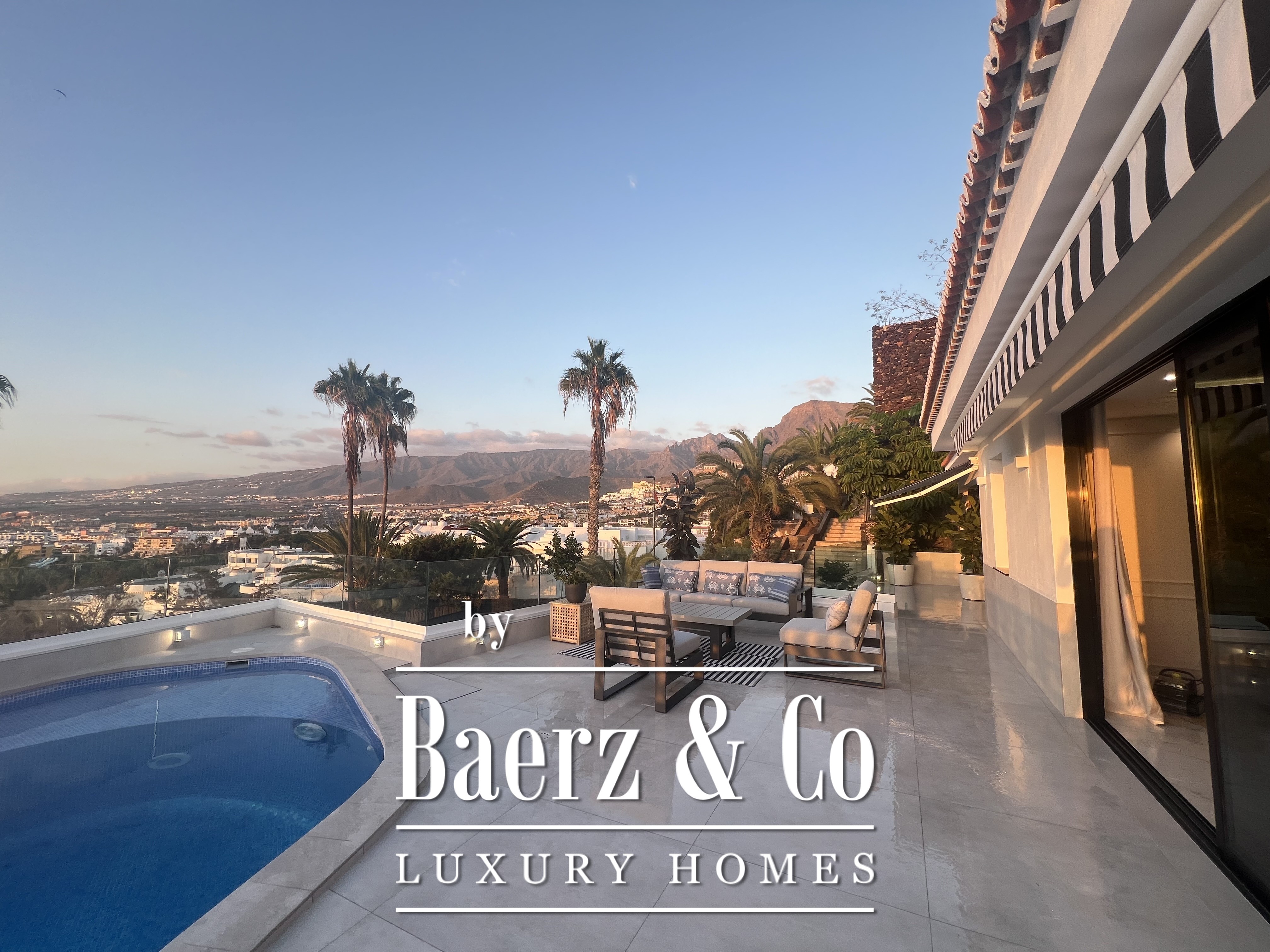 Villa San Eugenio anchors itself quietly within southern Tenerife, offering a calm interpretation of island living with ocean and coastline views. This villa, fully renovated and offered at €2,700,000, delivers a measured balance of openness and discretion across 255 m² of interior space, all on a generous 504 m² plot. The focus keyword, villa San Eugenio, identifies a residence where daily rhythms unfold across lush terraces and fluid living areas, with three main bedrooms positioned on a single level for comfort and continuity.