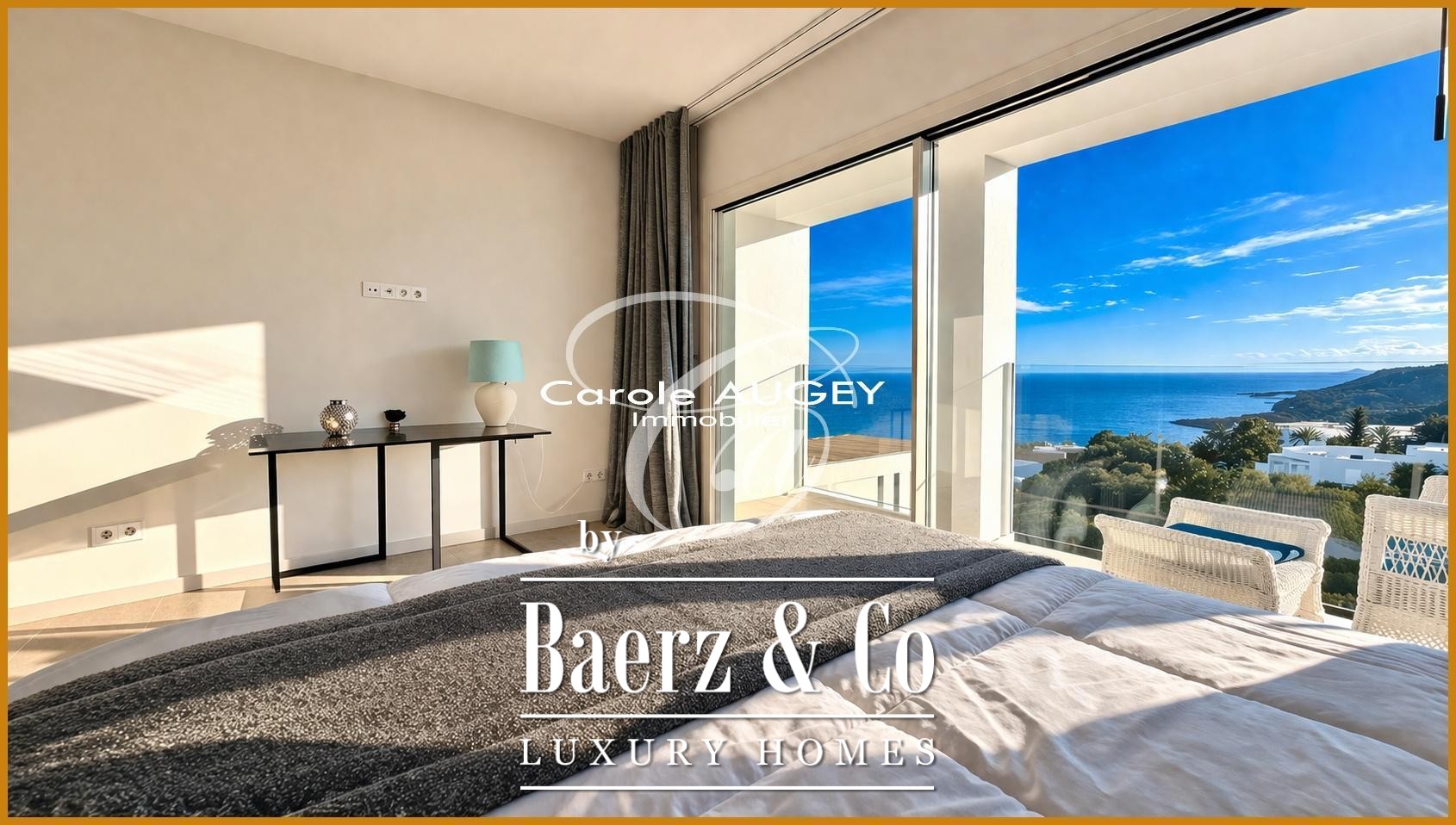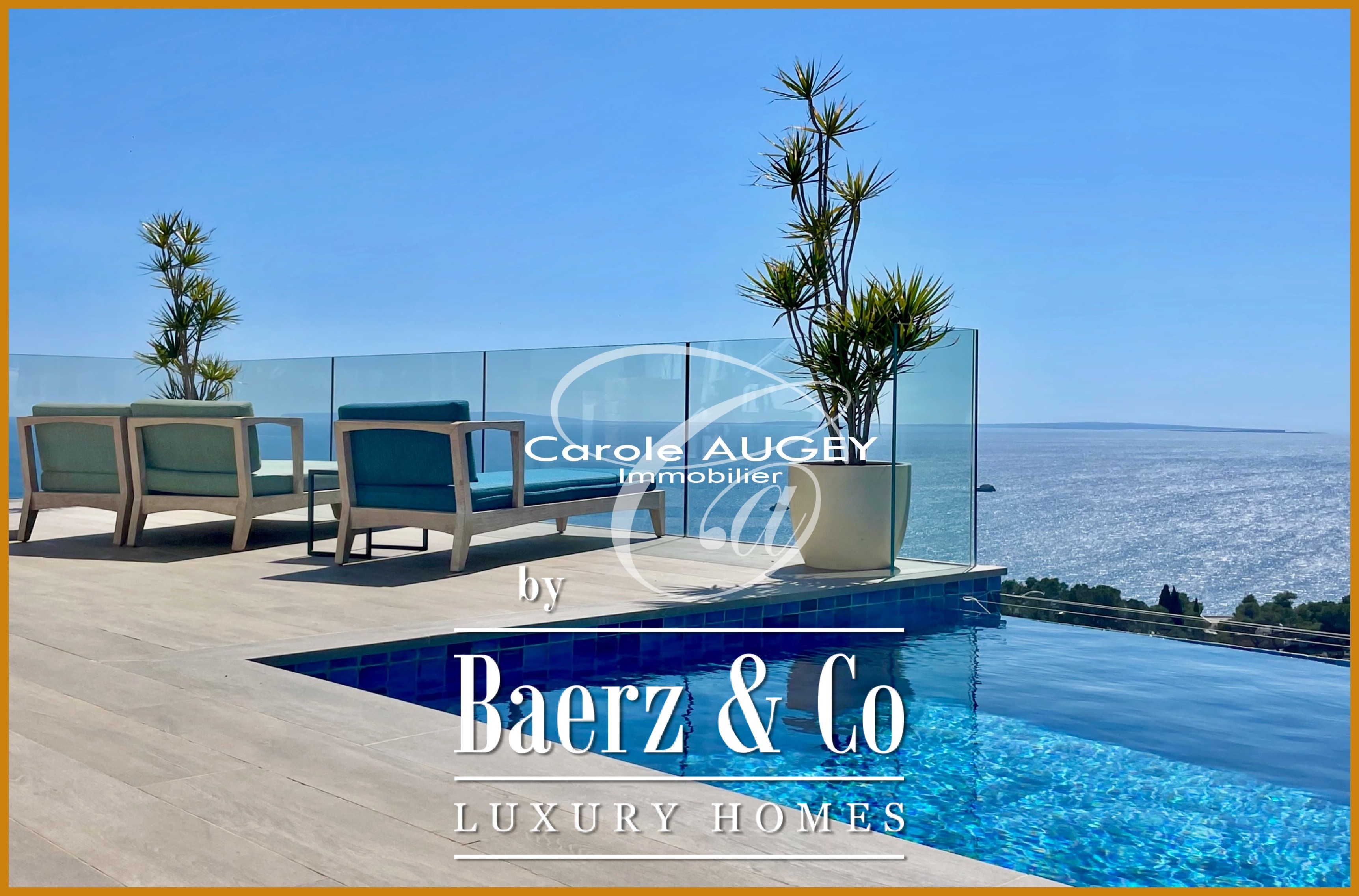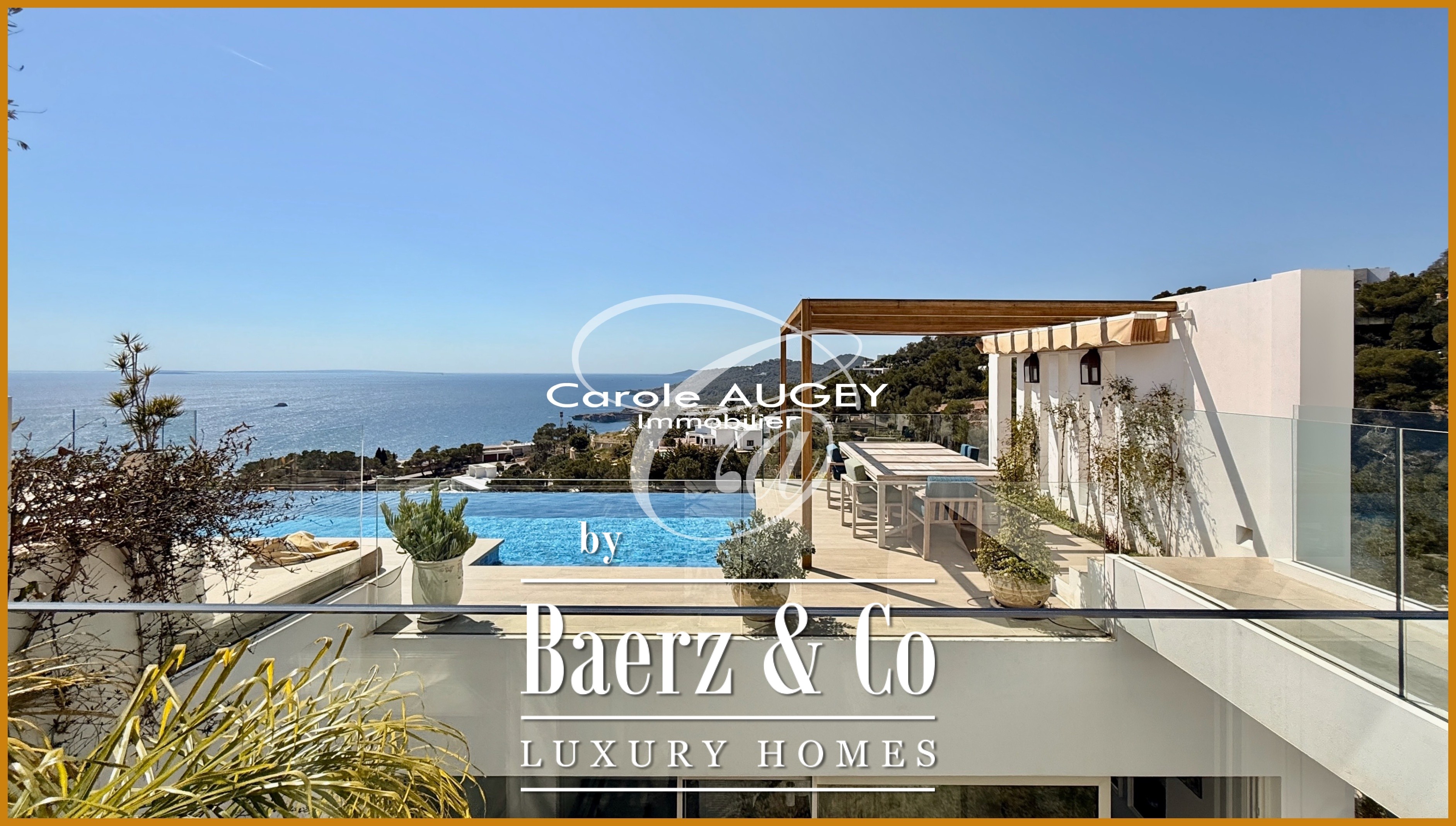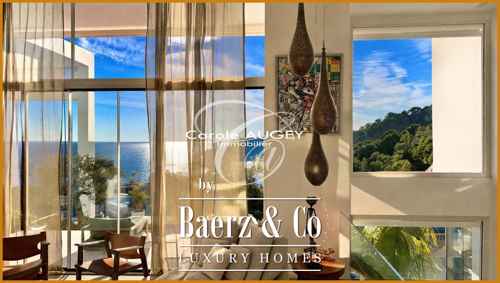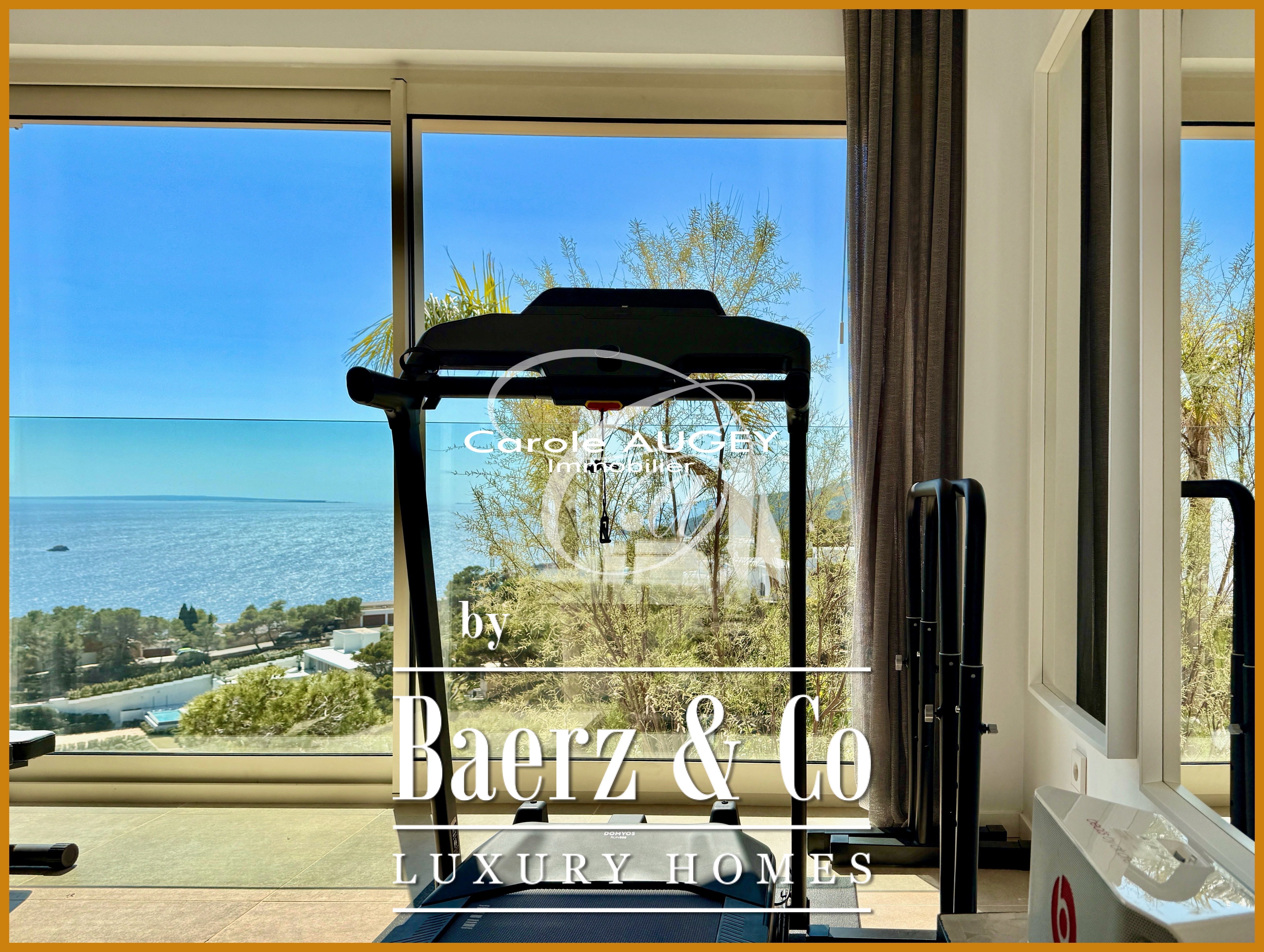 Outdoors, an infinity pool, panoramic terraces, al fresco dining, and a sculptural, architect-designed garden invite reflection and relaxation. The property offers two independent accesses, one via elevator, a sea-view gym, and reversible air conditioning. This fully furnished, turnkey villa, defined by high-quality finishes and remarkable views, is an intensely elegant experience where the sea is a vital presence every day.