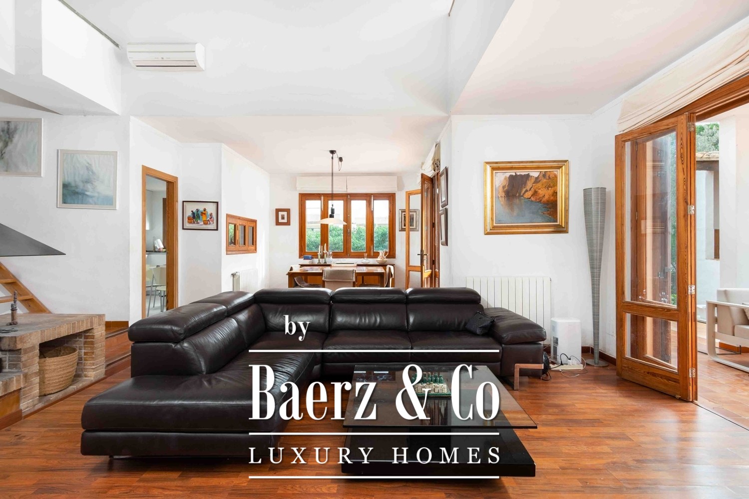 This Mediterranean villa Santa Ponça stands just minutes from the marina, set on a generous 1,224 m² plot. The constructed area reaches 330 m² with approximately 229 m² of living space arranged over two calm, purposeful floors. Across the ground level, a spacious living room centres on an elegant wood-burning fireplace, while a modern kitchen with dining area and separate entrance complements daily rhythms. Four bedrooms, including an en suite, and two well-finished bathrooms offer privacy and functionality.