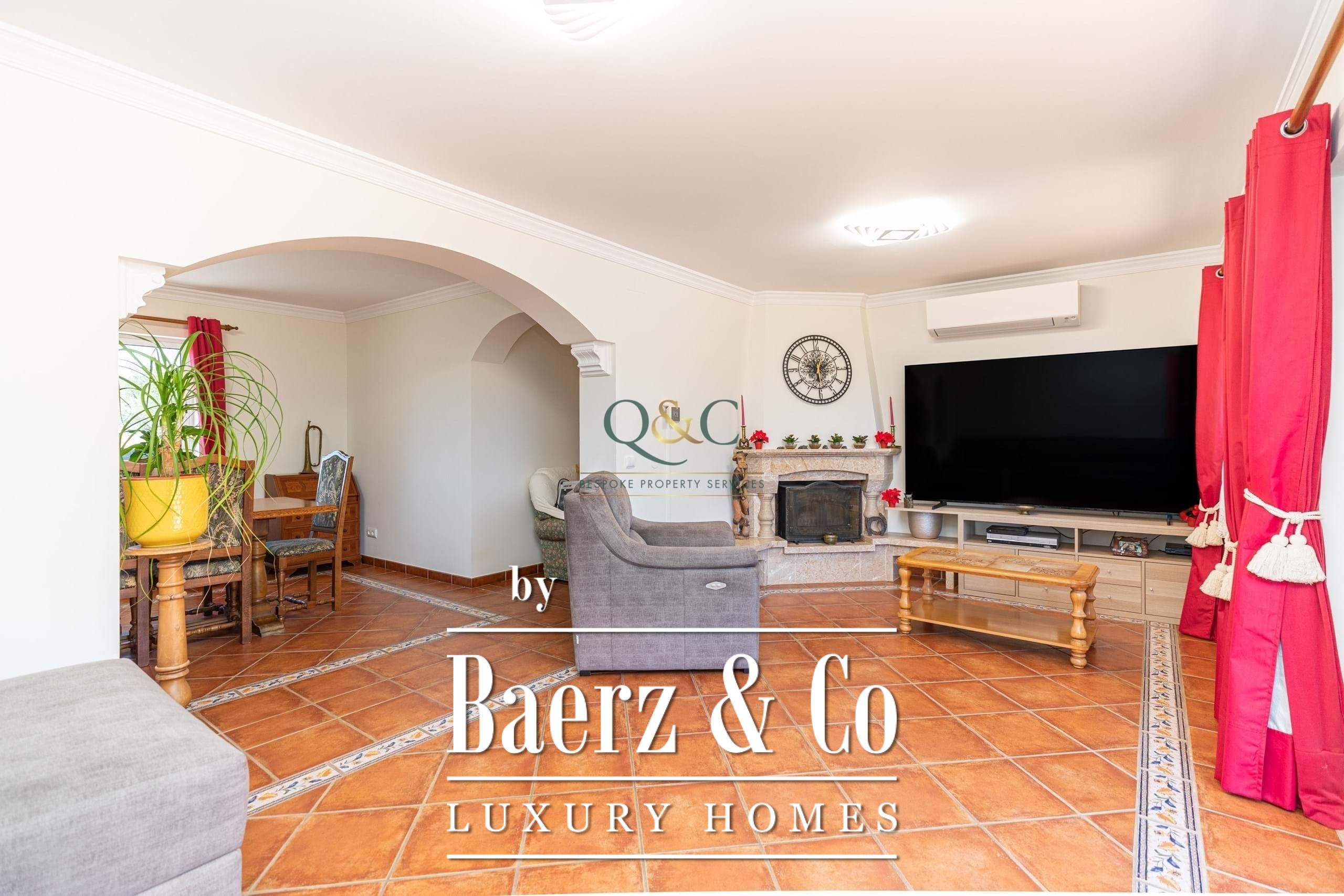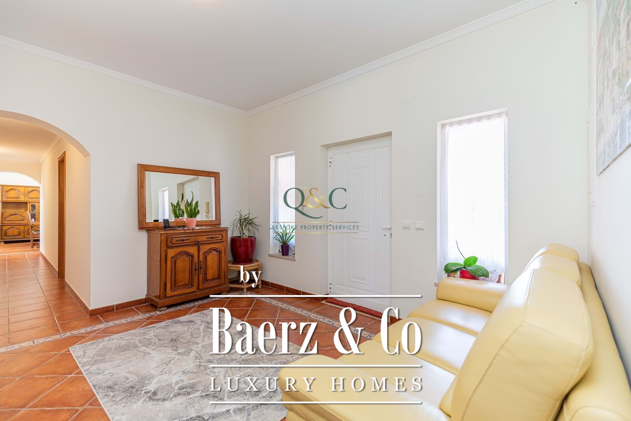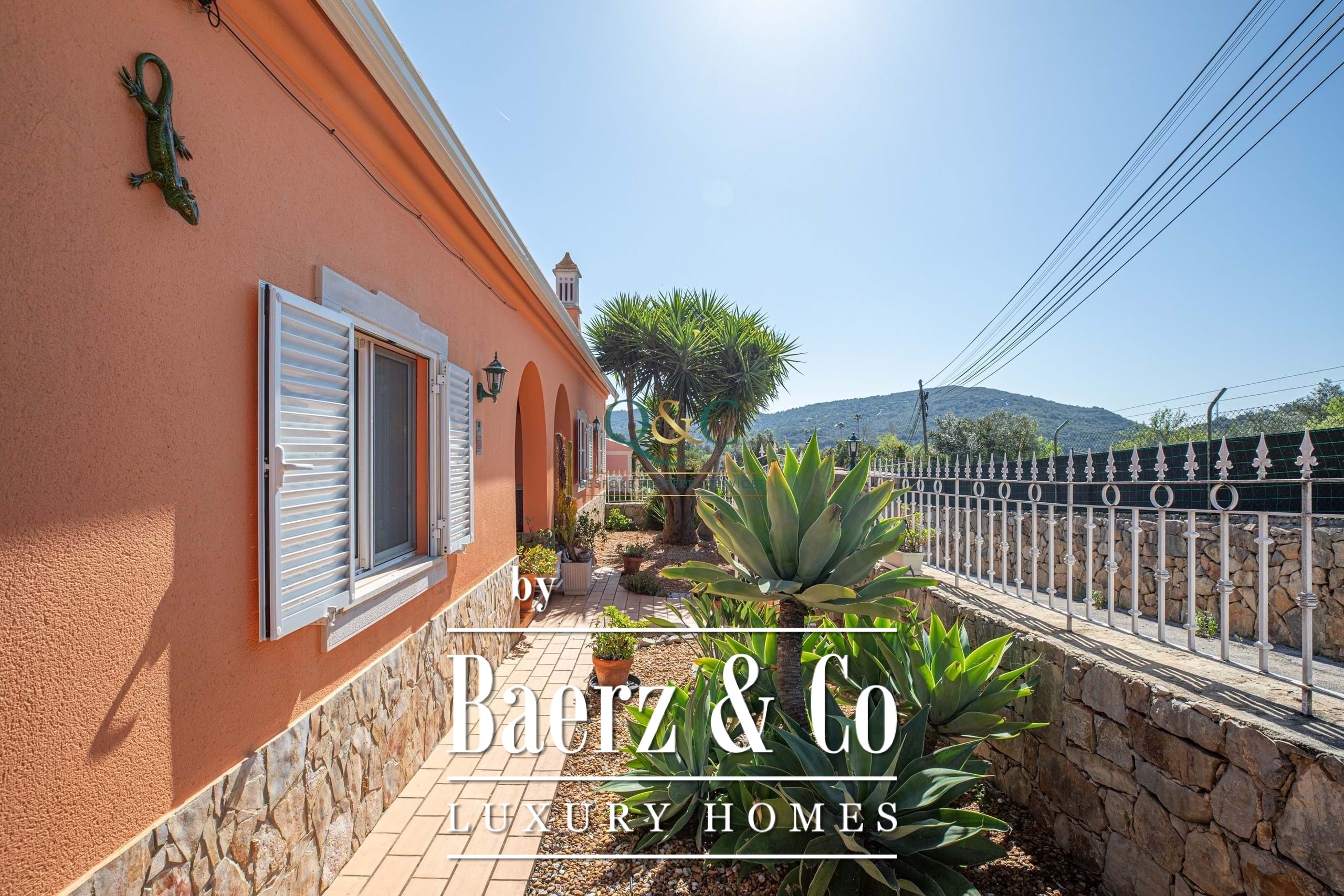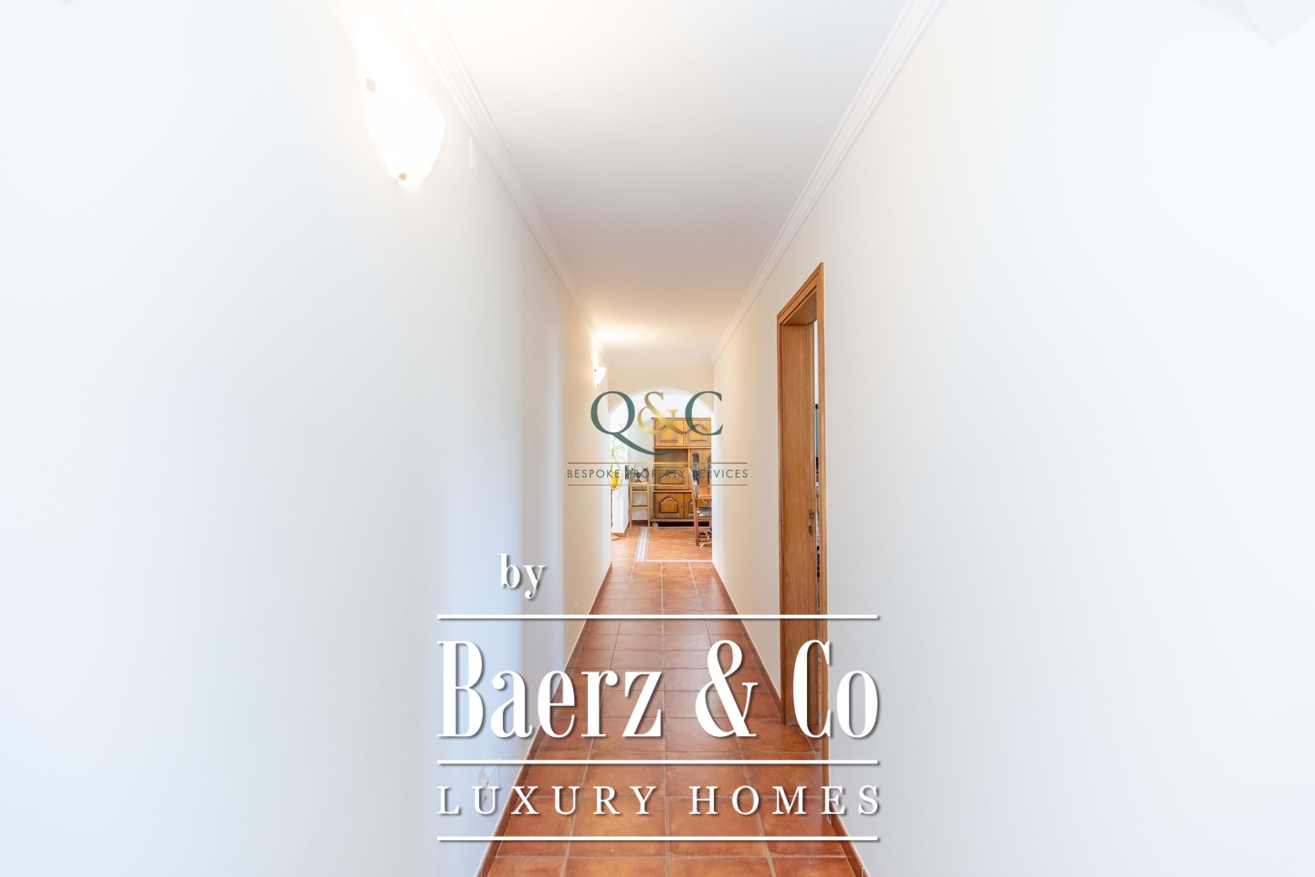 Villa São Brás de Alportel invites calm, set at the end of a quiet cul-de-sac and defined by a considered single-storey layout of 158 m². The entrance gives way to ample parking, an automatic gate, and a garage, leading up to a landscaped plot of 1,018 m² bordered by stone walls and mature gardens. Inside, the focus keyword villa São Brás de Alportel is immediately apparent in its generous entrance hall, three bedrooms, and three bathrooms, each detail designed for enduring comfort.