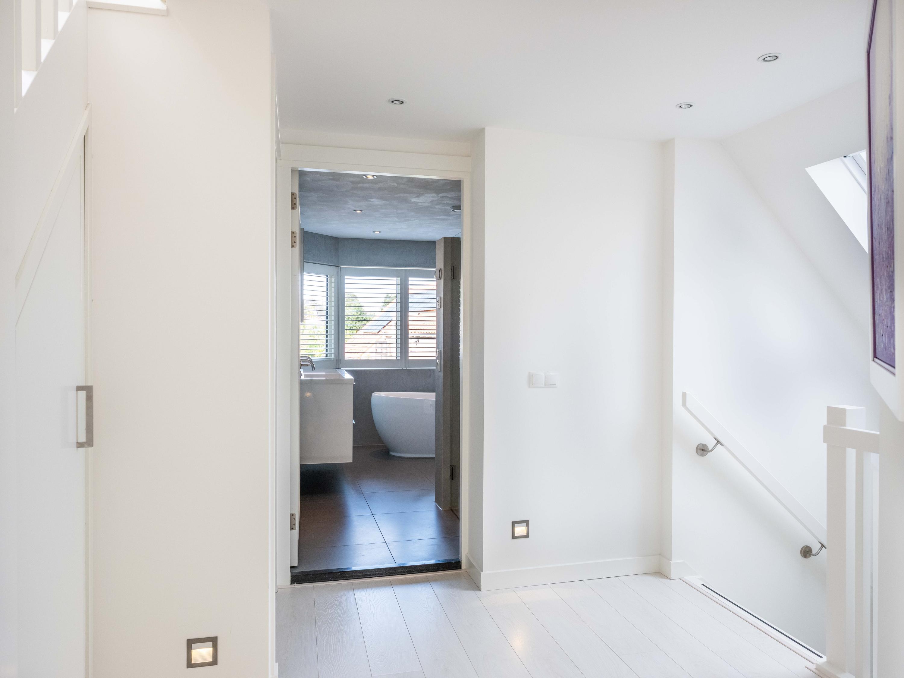 Upon entering, you will immediately notice the spacious hall, with meter cupboard, bathroom and stairs to the upper floor. There is a practical storage space under the stairs. The bathroom is spacious and equipped with a shower, toilet, washbasin and radiator.
