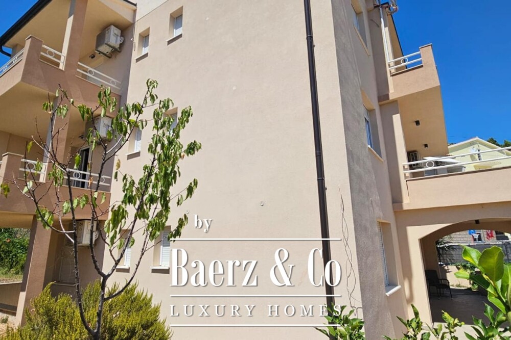 This townhouse Seget stands as a refined statement of Croatian seaside living, offering 439 m² of beautifully renovated interiors. The property is divided into three private, fully furnished three-bedroom apartments, each with its own distinct view of the Adriatic from expansive terraces oriented south and west. Each apartment, ranging from 82 to 85 m² of interior space, pairs open-plan living with private ensuite bedrooms and direct access to outdoor terraces that make the most of the light and sea breezes.