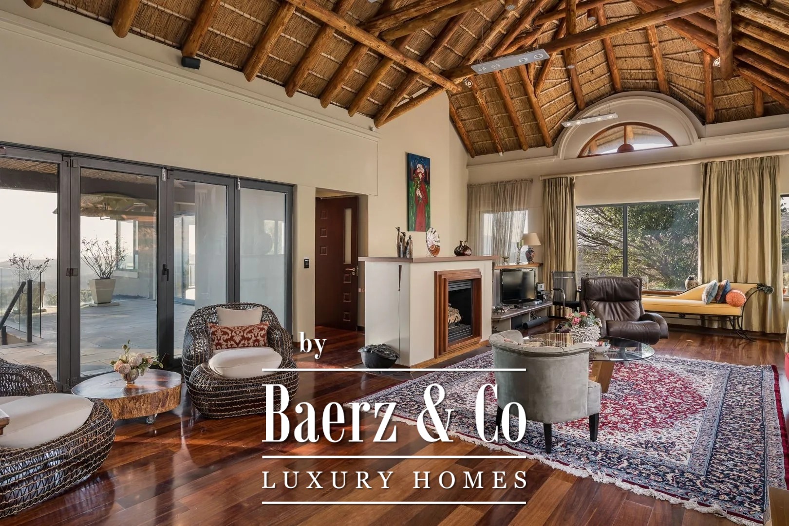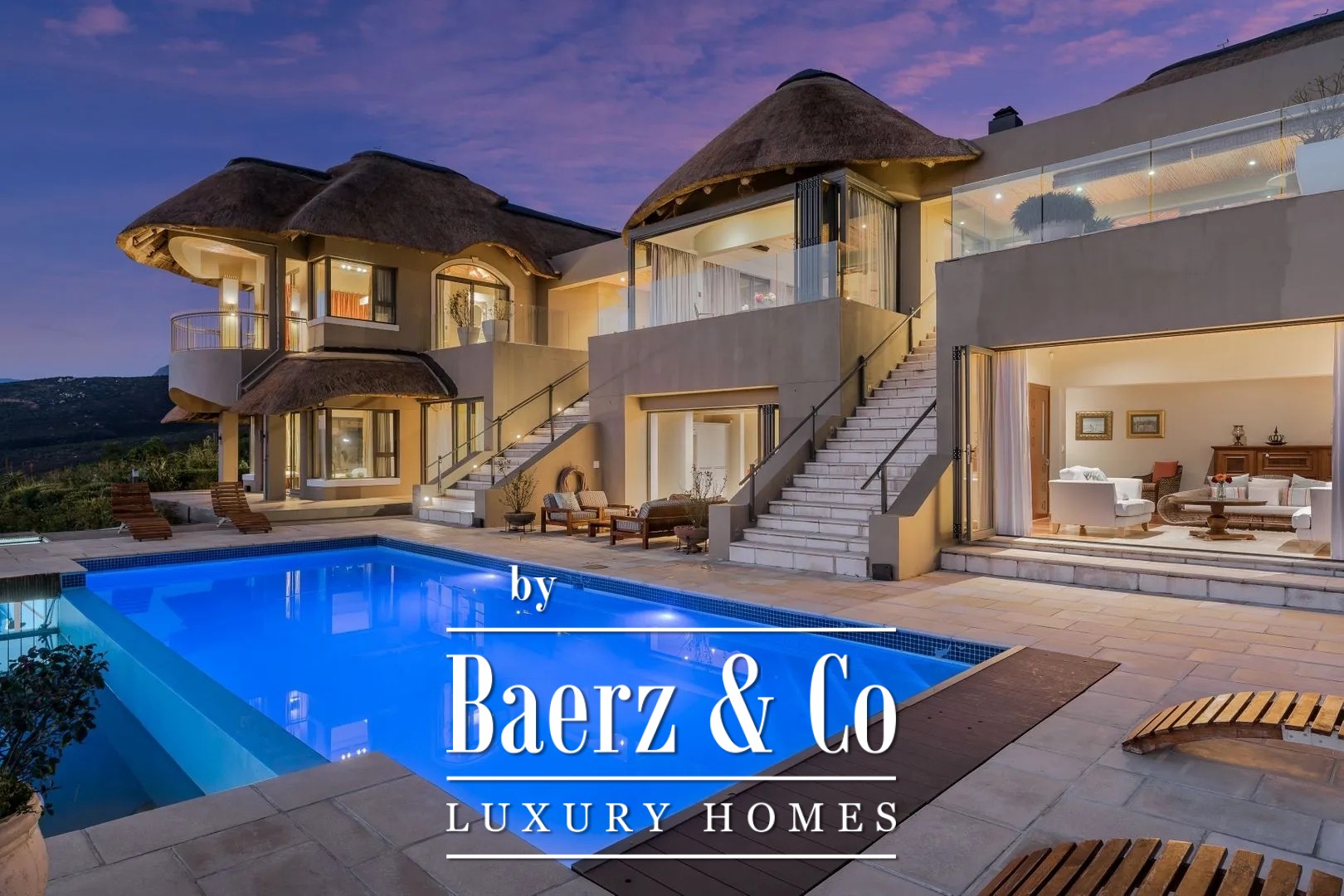 Estate Somerset West presents a rare convergence of scale, architectural presence, and environmental consciousness, set on approximately 25,000 m² of secluded fynbos. This estate is both a sanctuary and an accomplishment, with 1,500 m² of refined space designed for those who value both privacy and lasting connection to place. The property’s sweeping mountain and sea views, including False Bay and Tafelberg, form a living panorama visible from every vantage point.