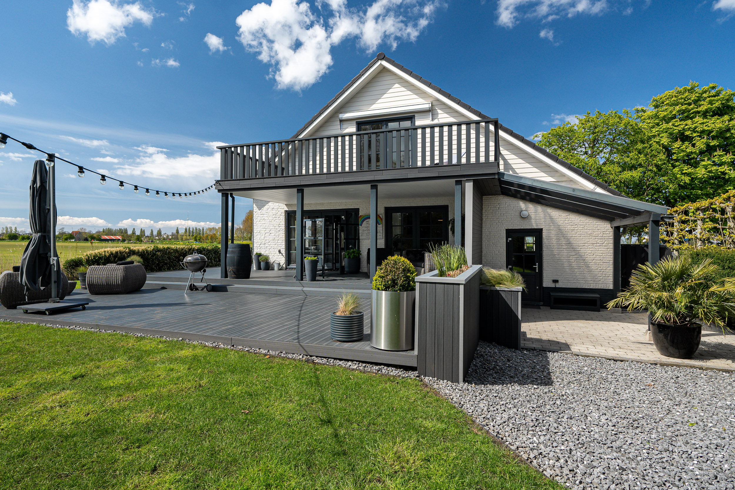 In a prime location near the IJsselmeer, adjacent to a marina with direct access to all waterways in Friesland, this villa was completely renovated in 2004 and is situated on a spacious, fenced plot with full privacy and stunning Frisian panoramas. The tranquility, greenery, water, ever-changing skies, and sense of freedom are the defining features of this home. This well-insulated villa of 245m² is designed for lifelong living, featuring a spacious living area, four bedrooms, two bathrooms, a luxurious kitchen with utility room, and a beautiful veranda with scenic views. The double garage with an upper floor offers an abundance of space and possibilities. The fully insulated home office, studio, or guesthouse with breathtaking views of nature serves as a true source of inspiration. The architecturally designed garden, maintained with a robotic lawn mower, is easy to care for and playfully arranged with various fruit trees, hedges, and reed-lined waterways. The stylishly paved driveway and entrance gate highlight the transition to the lush green garden that remains vibrant year-round.