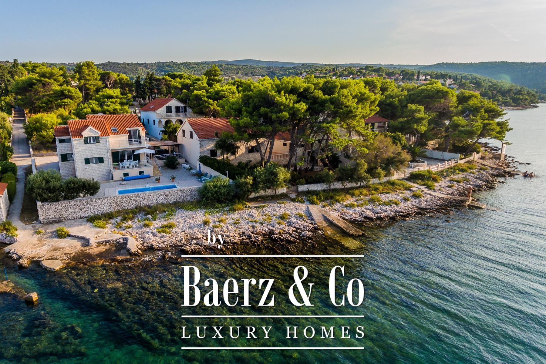 Villa Supetar with pool first row to the sea is set in the tranquil village of Splitska on Brač, delivering a rare intersection of privacy, immediate Adriatic access, and restrained architectural clarity. This villa occupies a 605 m² plot, with a net living area of 220 m² distributed over three spacious floors.