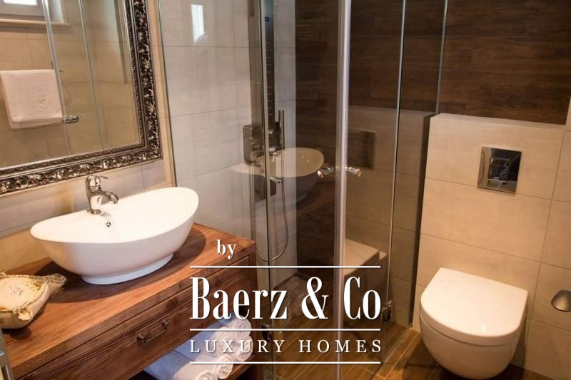 Th villa consists of a living room with a fire place, dining room, wine cellar, 3 bedrooms, 2 bathrooms and a toilet.