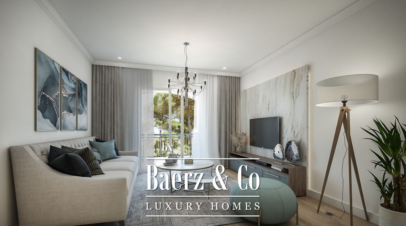 The apartment measures 70 m² and features a living room with integrated kitchen and dining area, two bedrooms, two bathrooms, and a terrace. A private yard of 17 m² further extends the living experience outdoors. Completion is anticipated for December 2027, ensuring a fresh, contemporary environment for residents. The residence is designed for both effortless personal living and high-return rental opportunities, benefiting from the resort's leisure, wellness, and marina amenities.