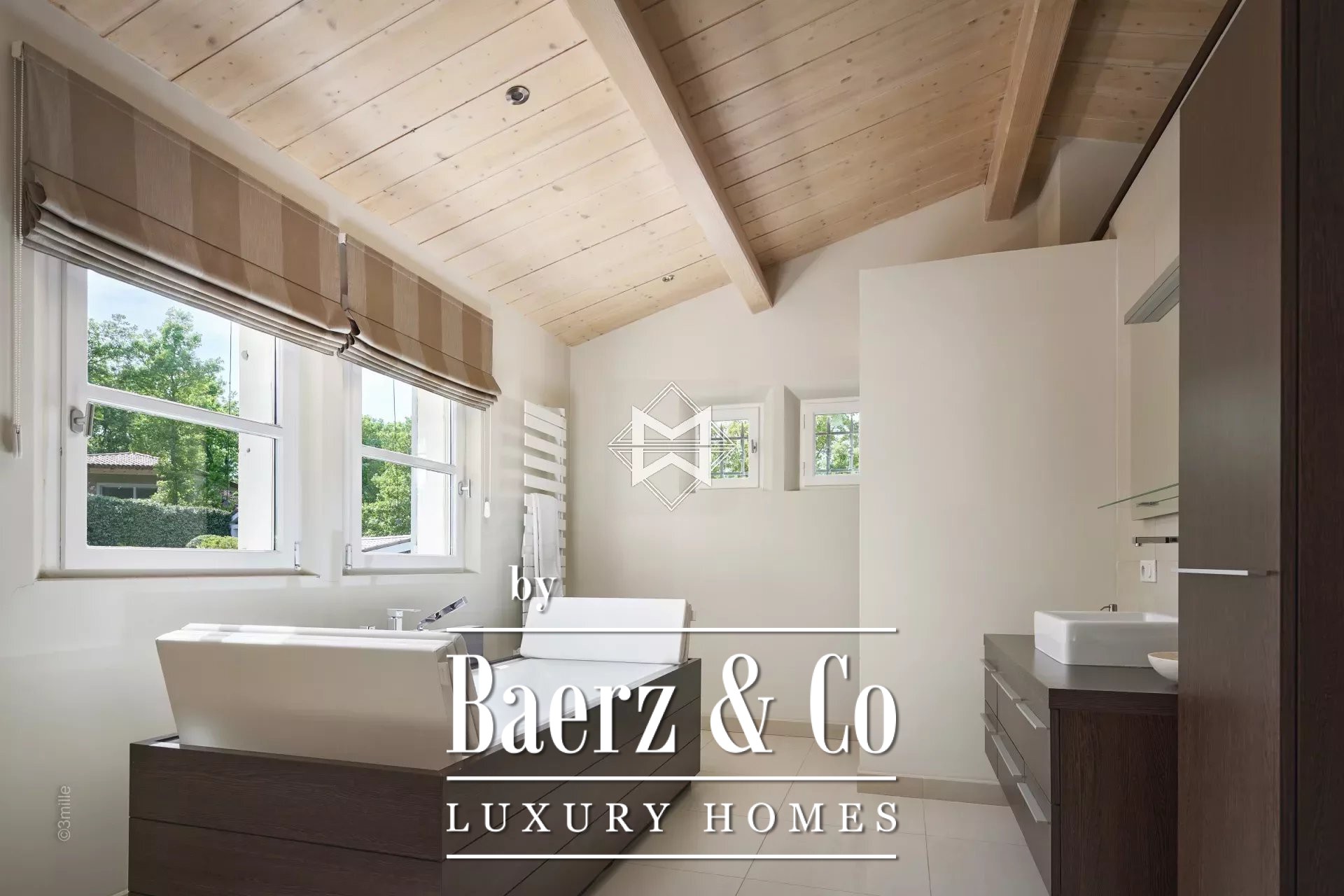 A heated infinity pool anchors the landscaped 2,756 m² plot, attended by a comfortable pool house and a pétanque court that invites unhurried afternoons. A 50 m² garage, multiple parking spaces, and refined amenities such as air-conditioning, fireplace, and a central vacuum system support effortless living. Views are composed of deep greenery, imparting a palpable sense of calm.