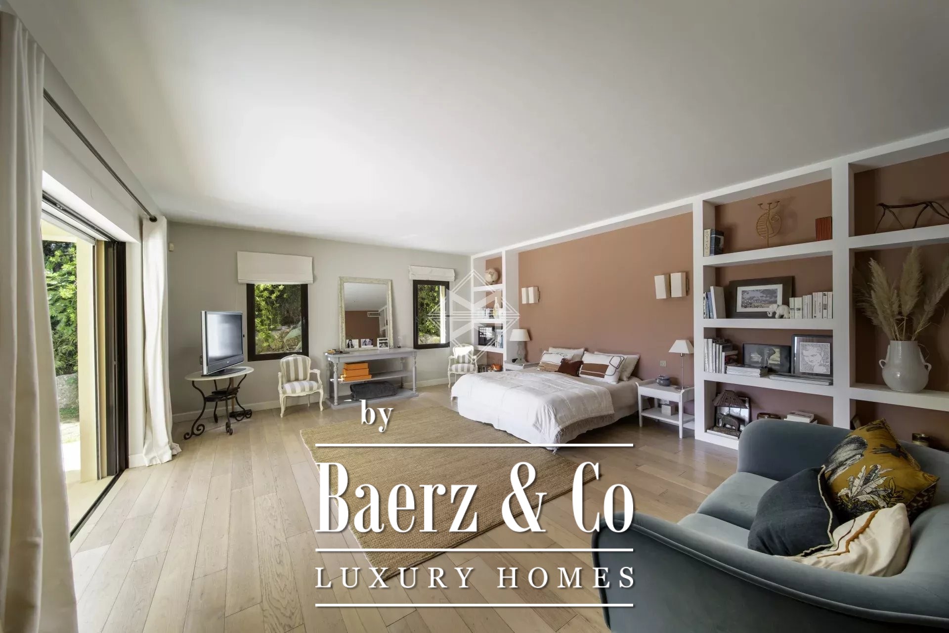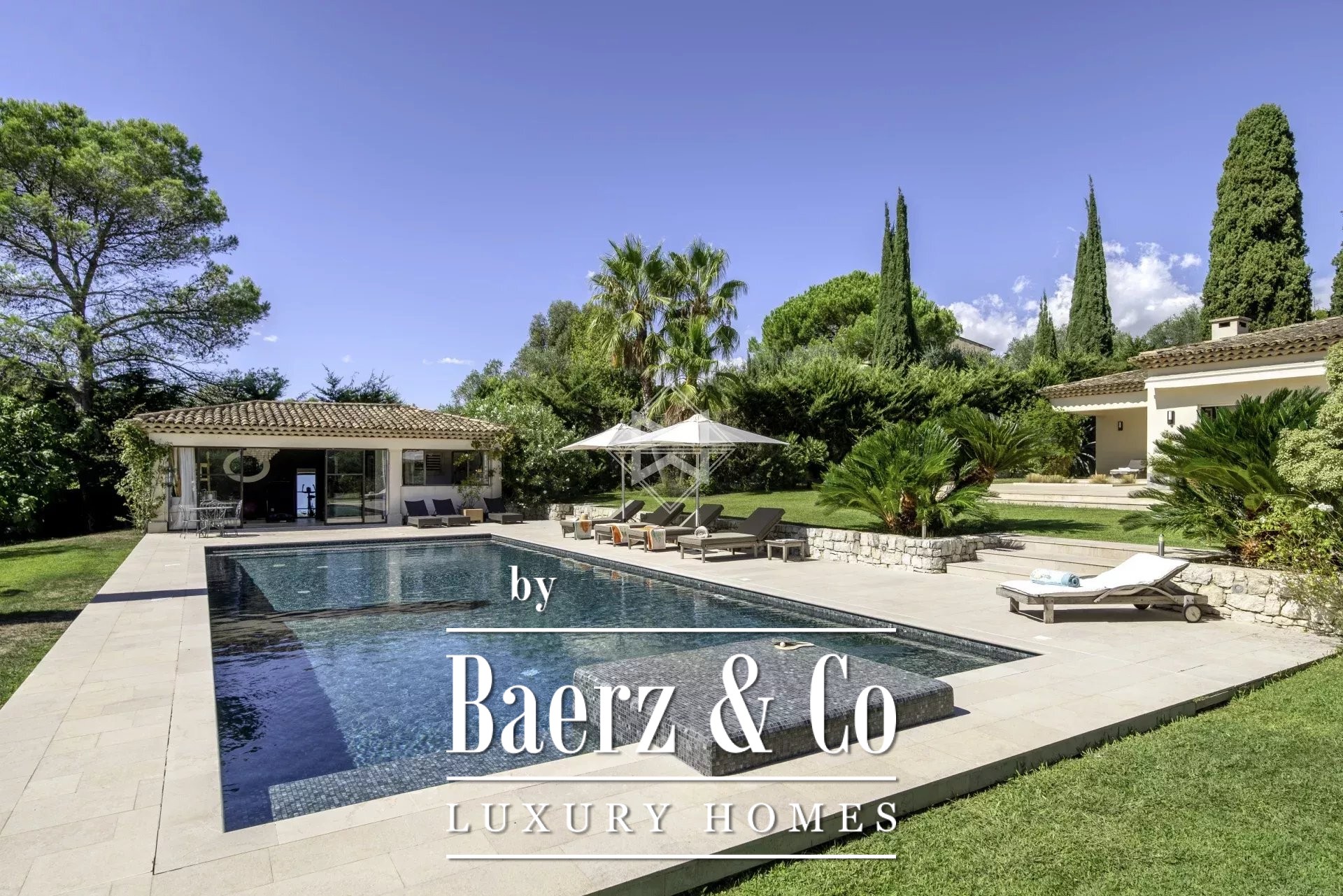 A 45 m² pool house currently serves as a fitness studio beside the swimming pool, inviting both relaxation and entertaining. Additional amenities include a wine cellar, air-conditioning, central vacuum system, alarm, double glazing, a caretaker house, and internet connectivity. A double garage, carport for two vehicles, and further parking complete the offering. This property speaks quietly of quality, space, and discretion—qualities prized by discerning buyers seeking a luxury villa for sale in Valbonne.