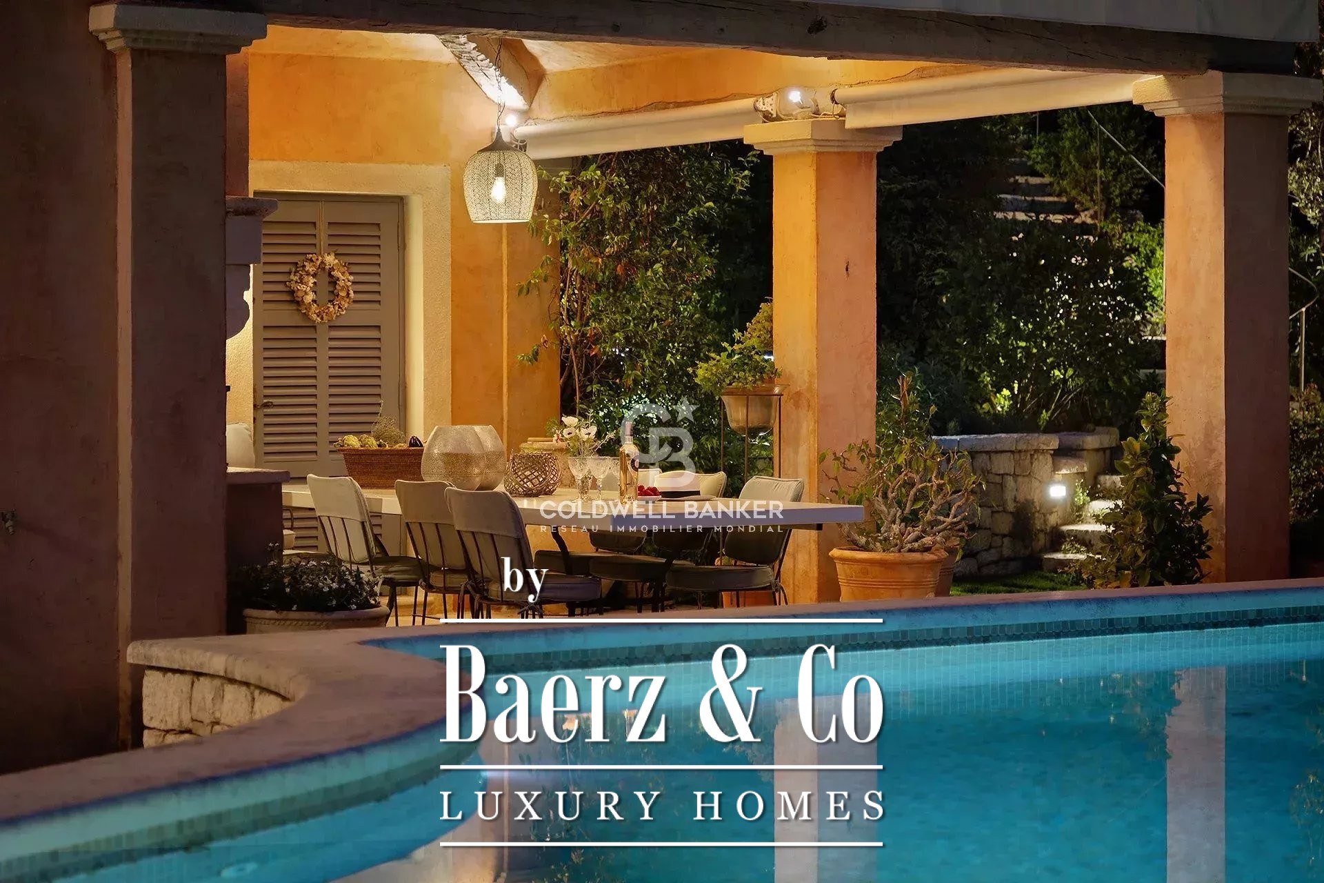 A covered outdoor terrace encourages year-round enjoyment of the grounds, where the swimming pool sits harmoniously amidst mature greenery. Air-conditioning, double glazing, modern security, and automated comforts offer ease and discretion. Every detail considers both aesthetic value and daily practicality.