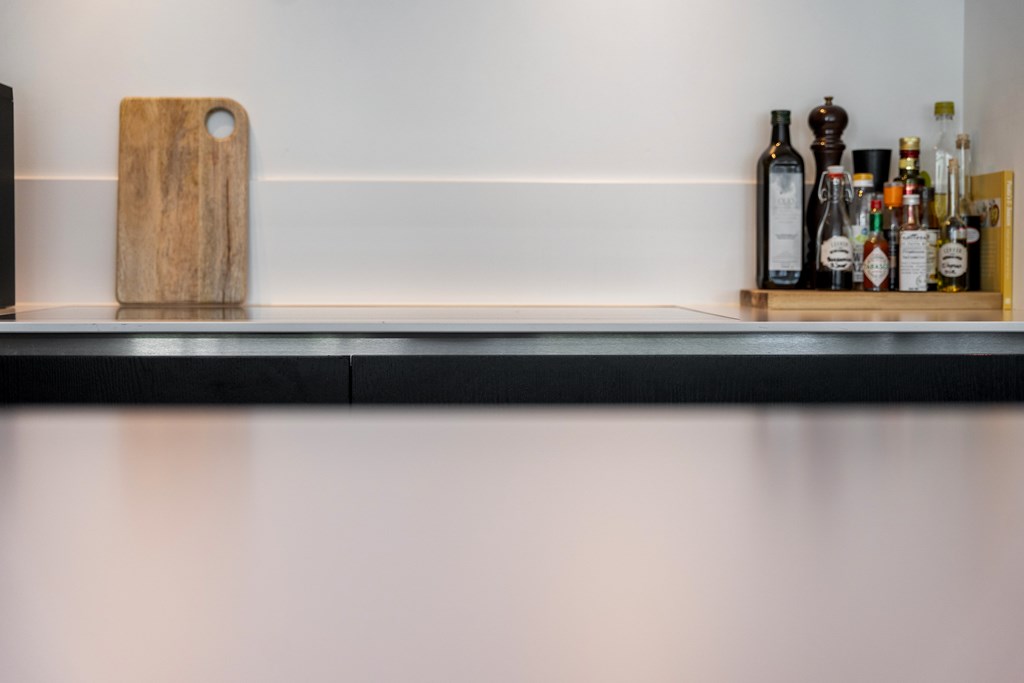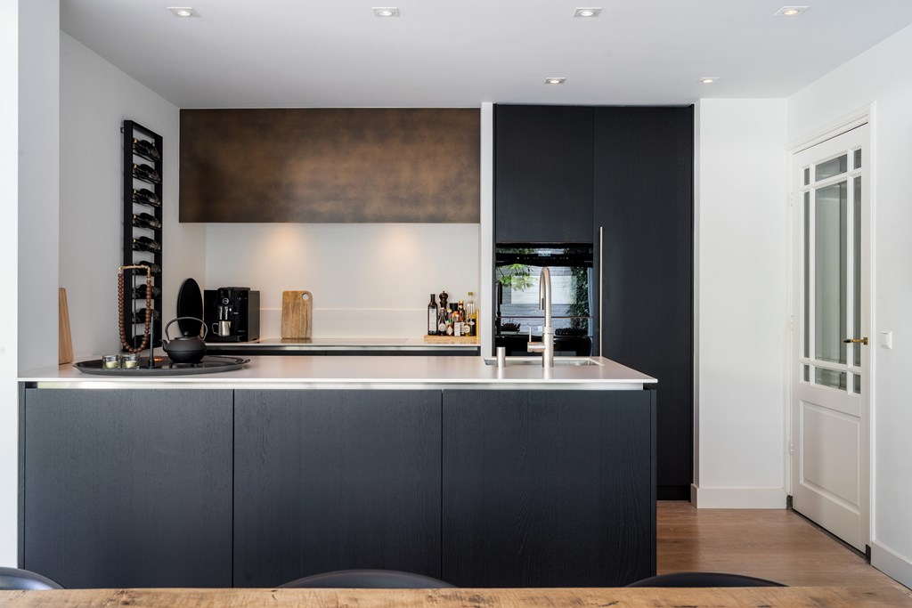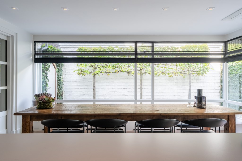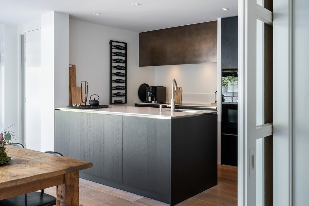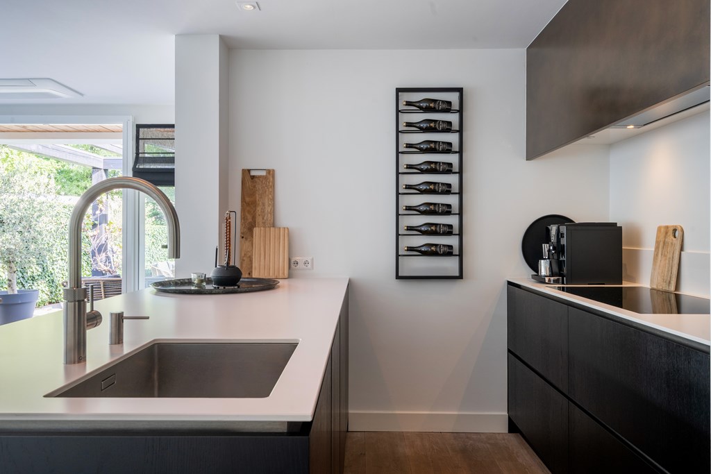 At the rear is the generous dining area, equipped with air conditioning and direct access to the modern kitchen. The kitchen is fitted with high-quality built-in appliances, including a Miele steam oven and second oven, an induction cooktop, a Quooker tap, and a spacious Liebherr refrigerator.