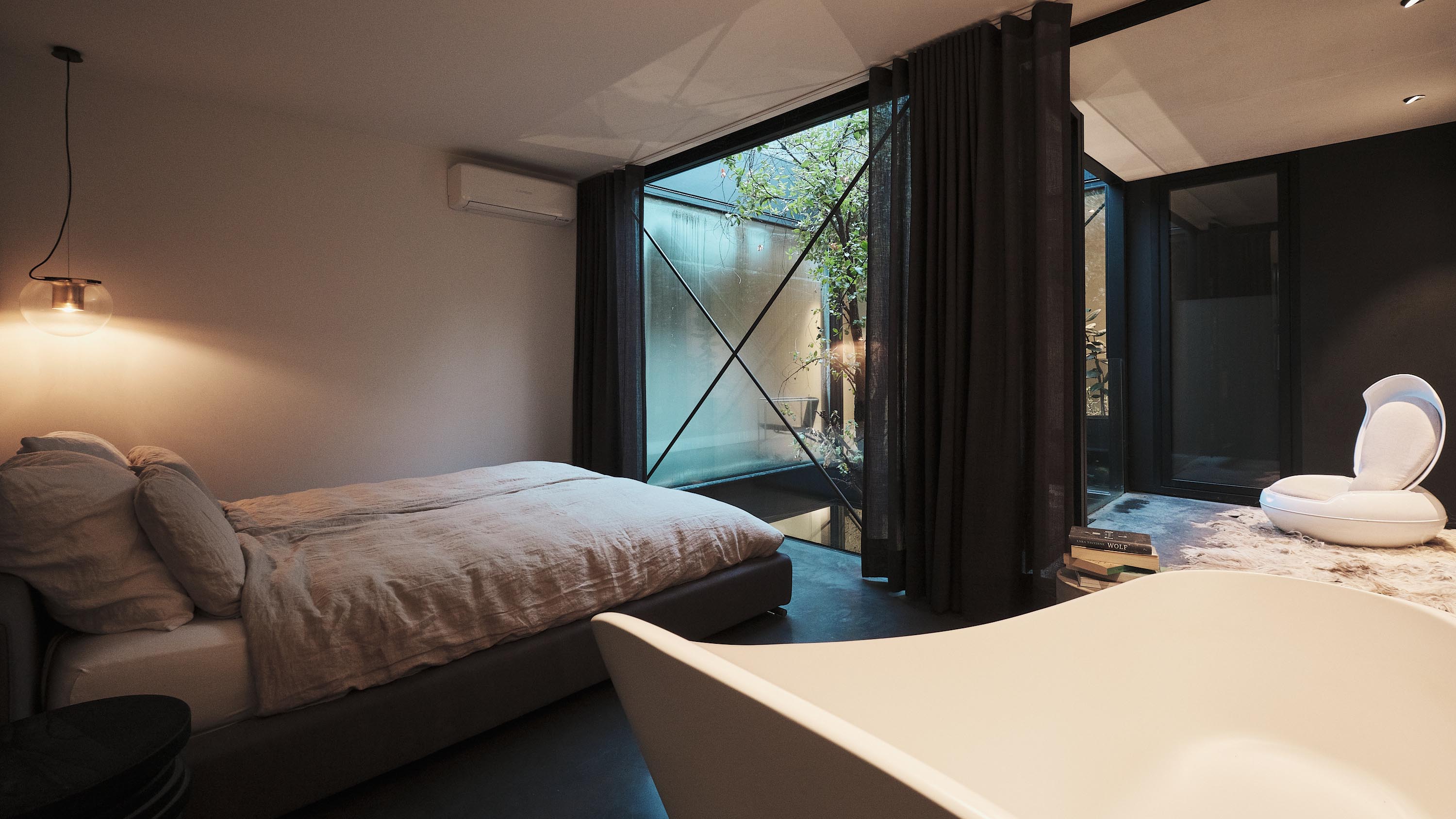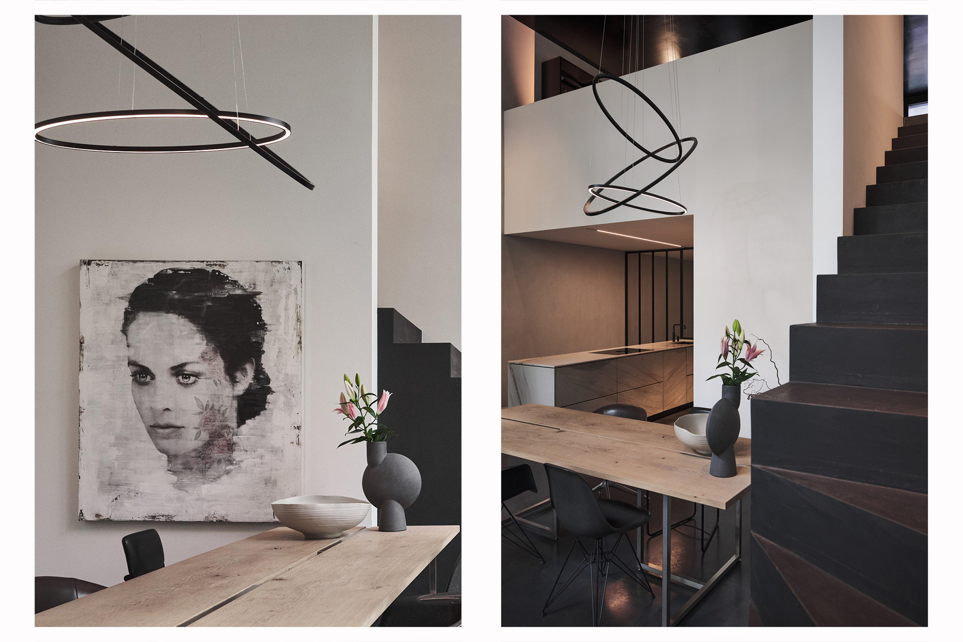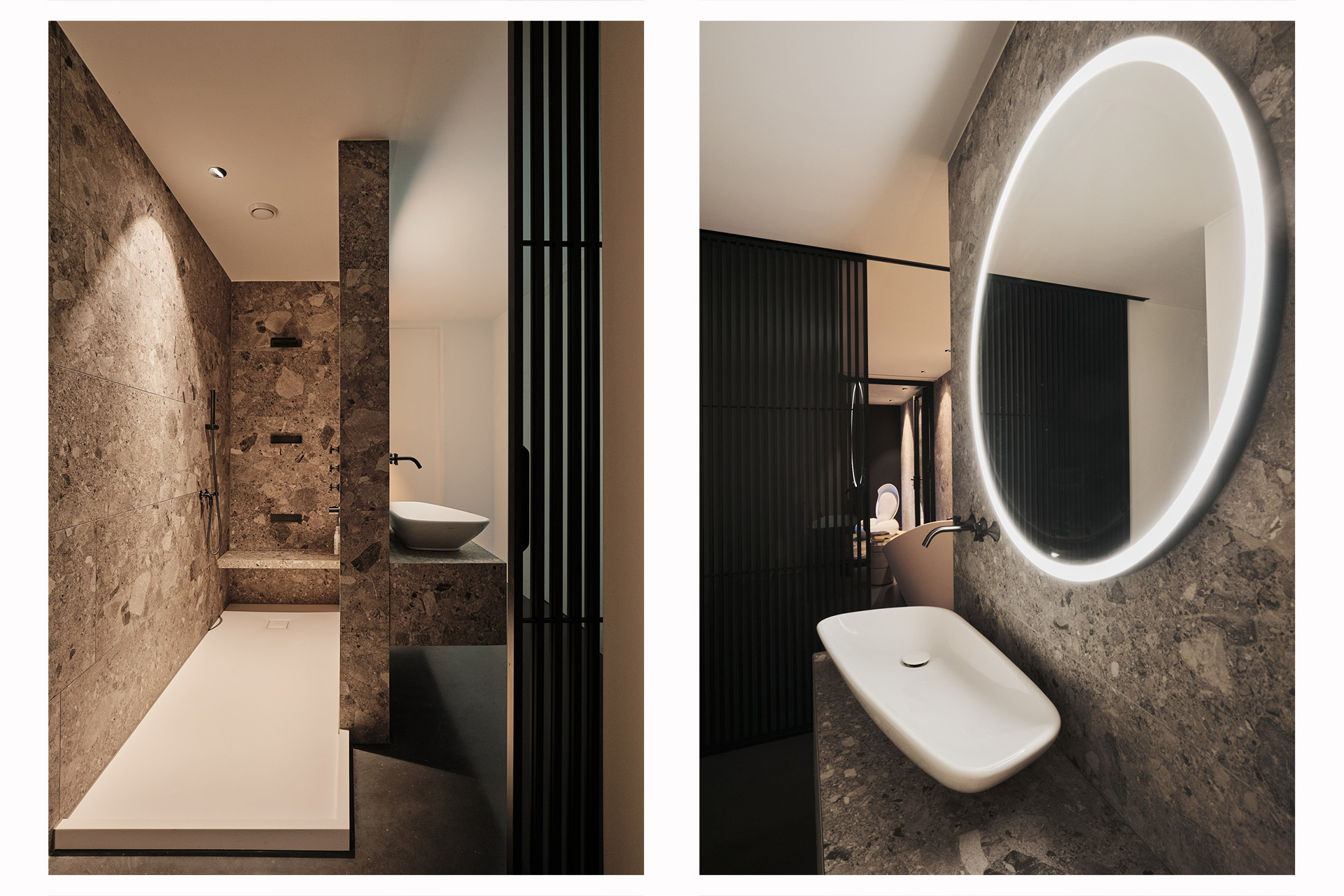 What makes this project particularly special is that the residence and presentation space share the same design mentality, yet were consciously designed as two independent entities. They function completely separately, each with its own character, rhythm, and purpose.