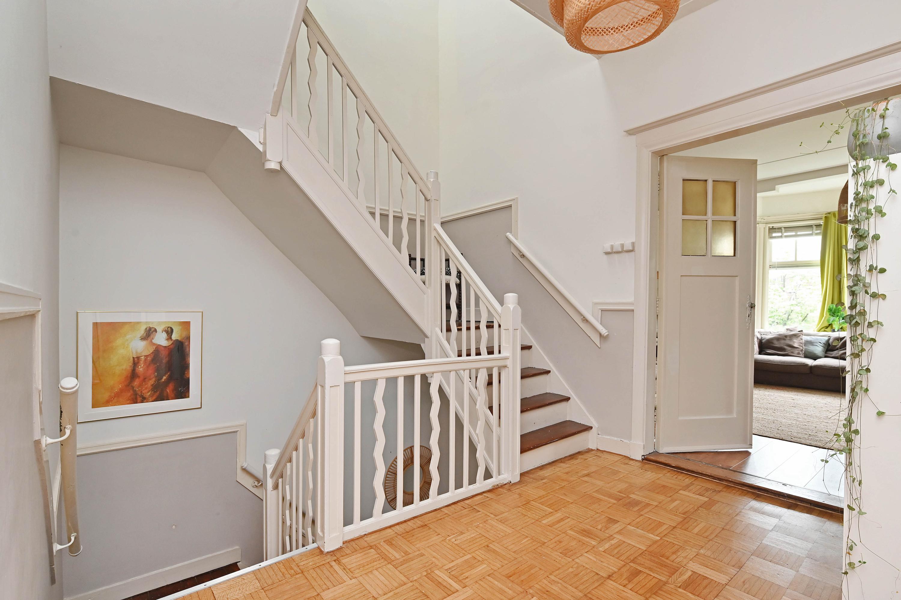 Spacious (ca. 285m2) end-of-terrace house with 7 bedrooms, 2 bathrooms, garden on 3 sides, and a driveway set on a wide, tree-lined street in historic Voorburg.