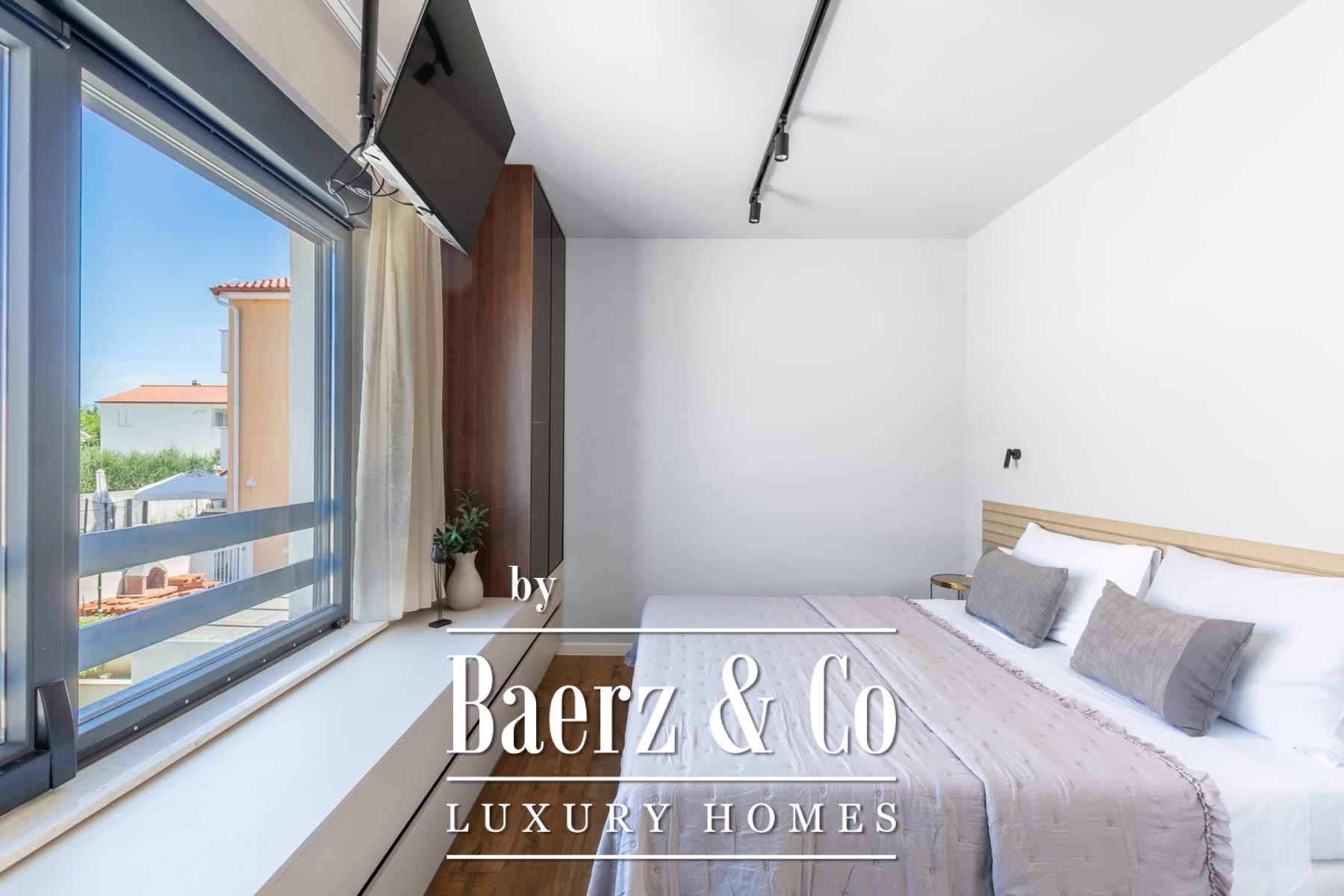 We present to you this beautiful and fully equipped villa with a swimming pool in a small town near Zadar, Vrsi, which is only 150 meters from the sea, the well-maintained local beach and all other necessary amenities key to a quality life or vacation.The villa has a total net area of 160m2, while its gross area is 261m2. It consists of a ground floor, first floor and a spacious roof terrace with a jacuzzi and a summer kitchen.On the ground floor of 92.40m2 there is a comfortable kitchen with a dining room, a living room, a bathroom, a hallway and a staircase leading to the 1st floor.The first floor of 96.5m2 consists of three bedrooms with en suite bathrooms, one of which is a master bedroom, and a hallway and a balcony of 13.9m2.The beautiful roof terrace of 72.80m2 is equipped with a jacuzzi and a summer kitchen, and offers a sea view that will enchant you.In