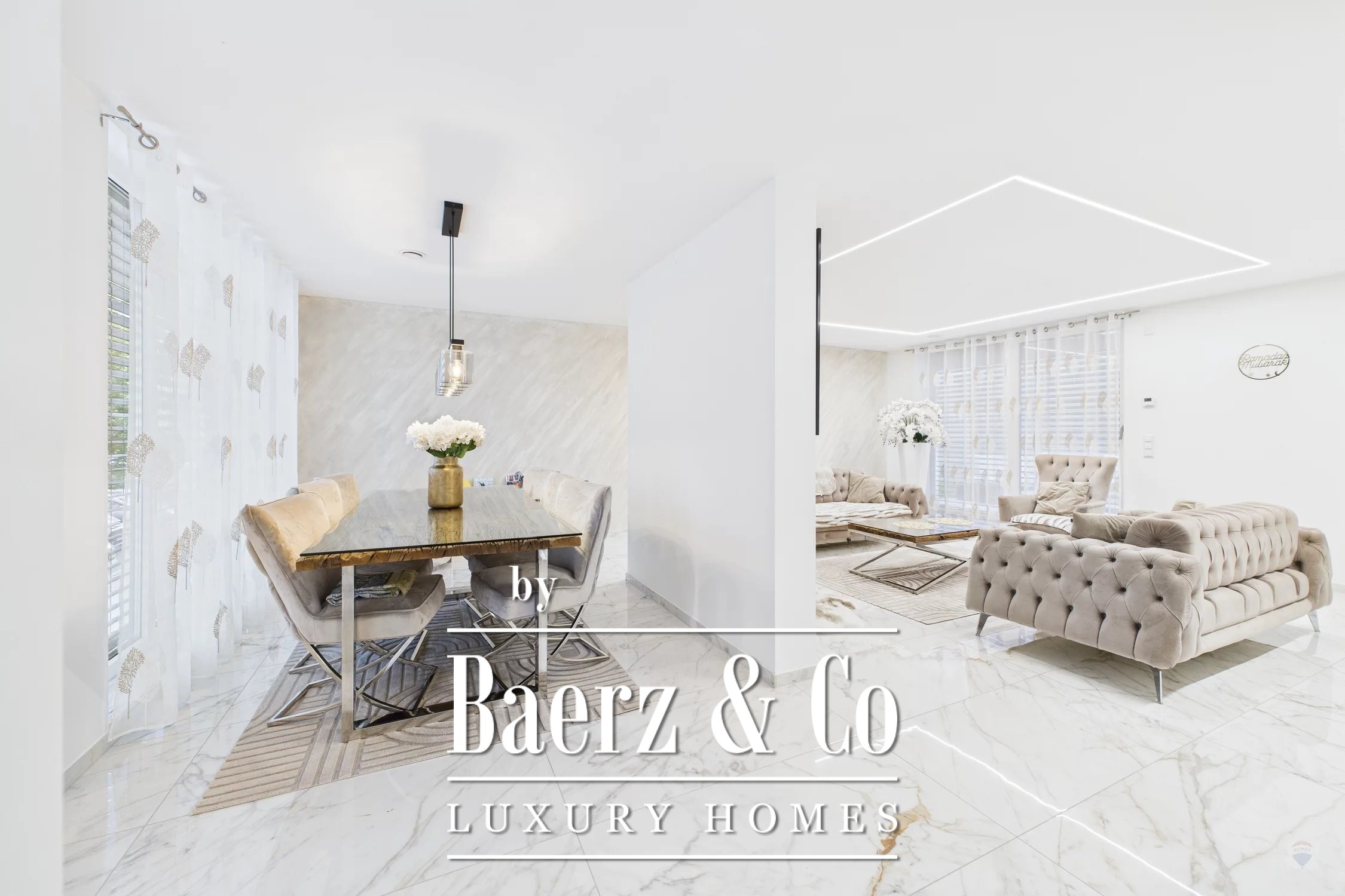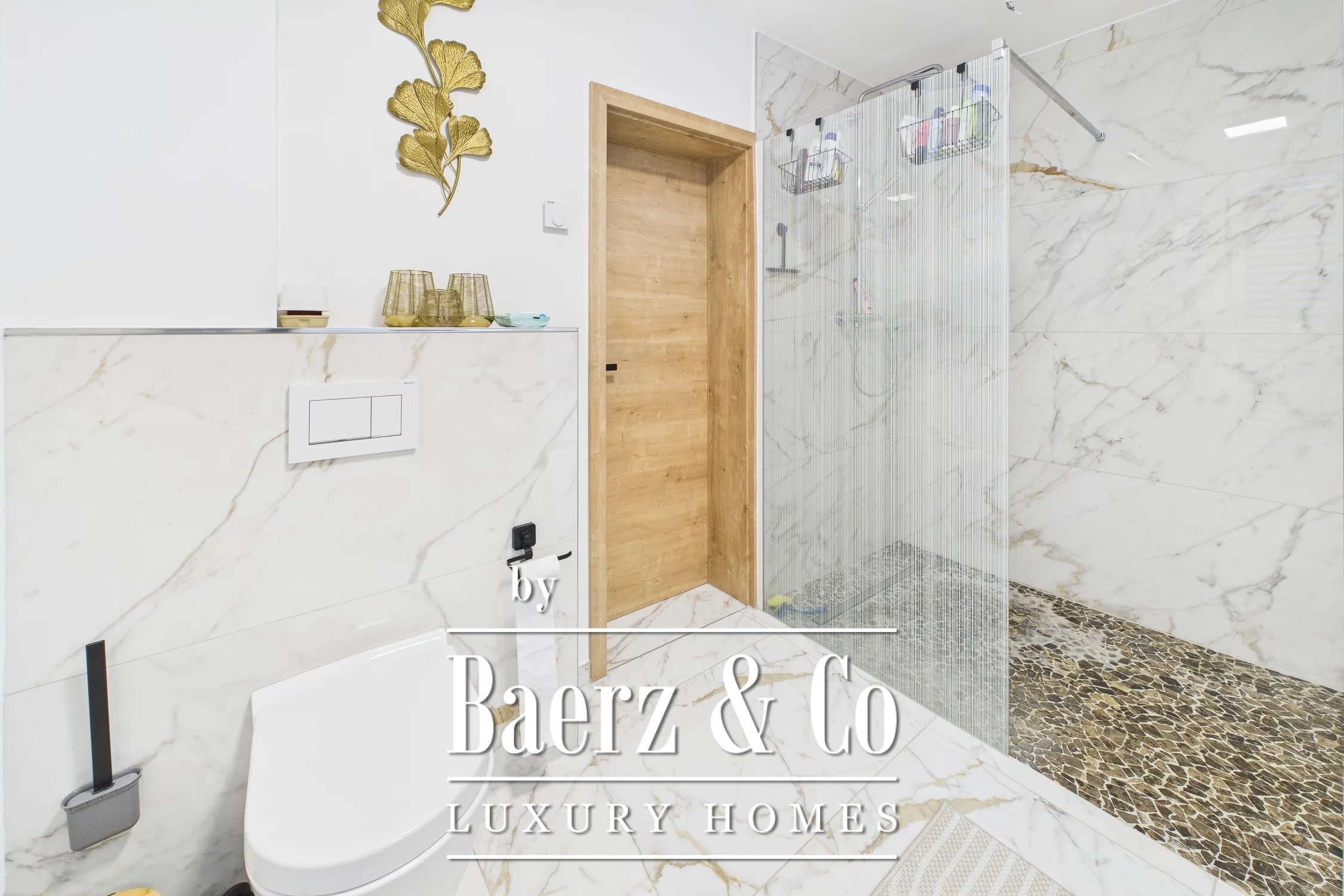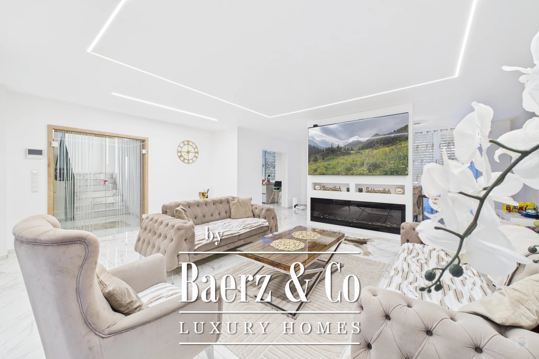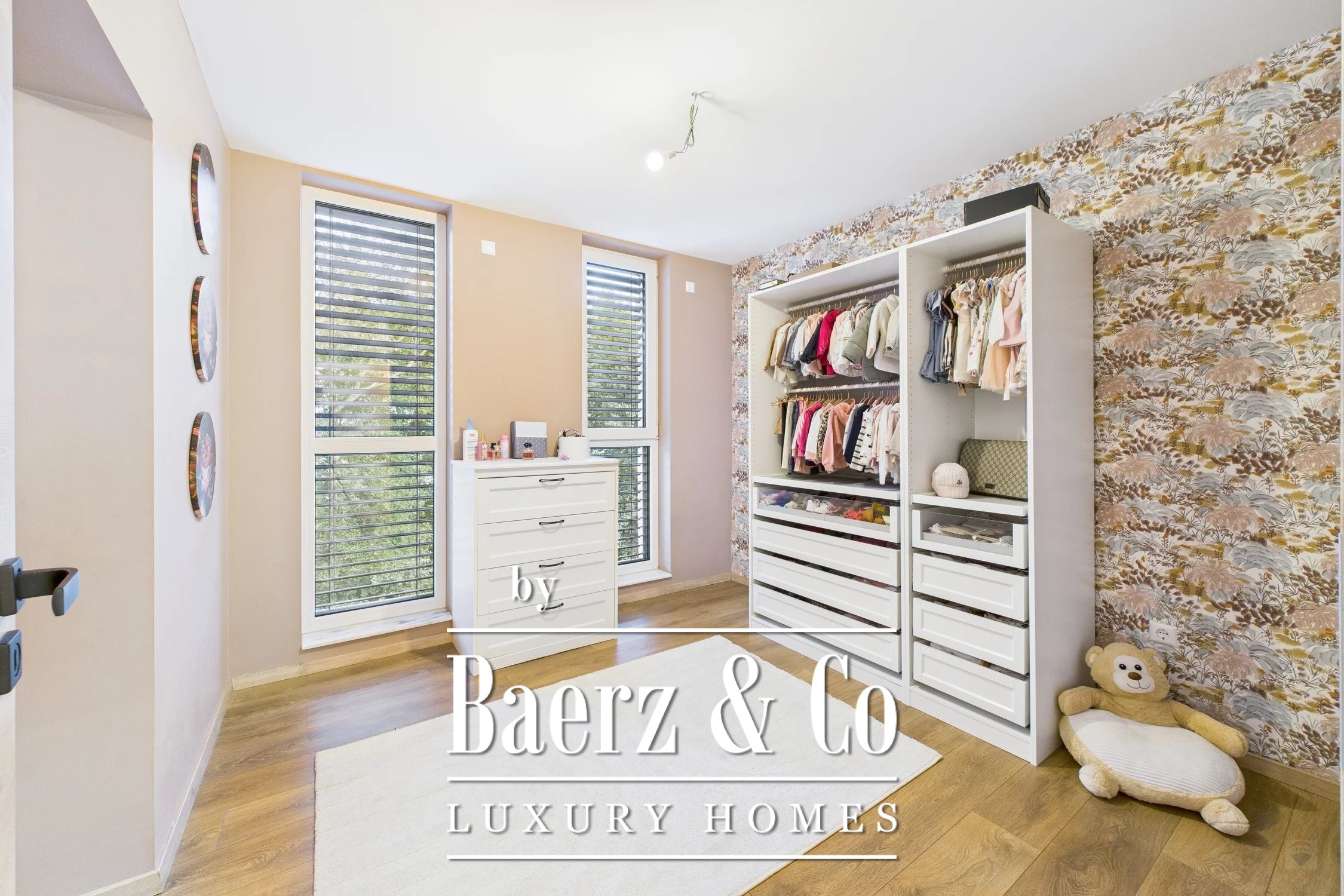 To complete this exceptional property, you'll benefit from a large two-car garage with automatic door, two outdoor parking spaces, as well as modern amenities such as underfloor heating, a double-flow ventilation system, triple glazing with slatted blinds and fiber optics.