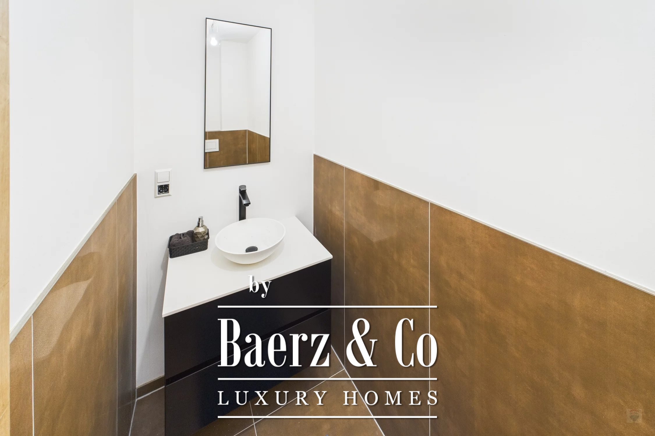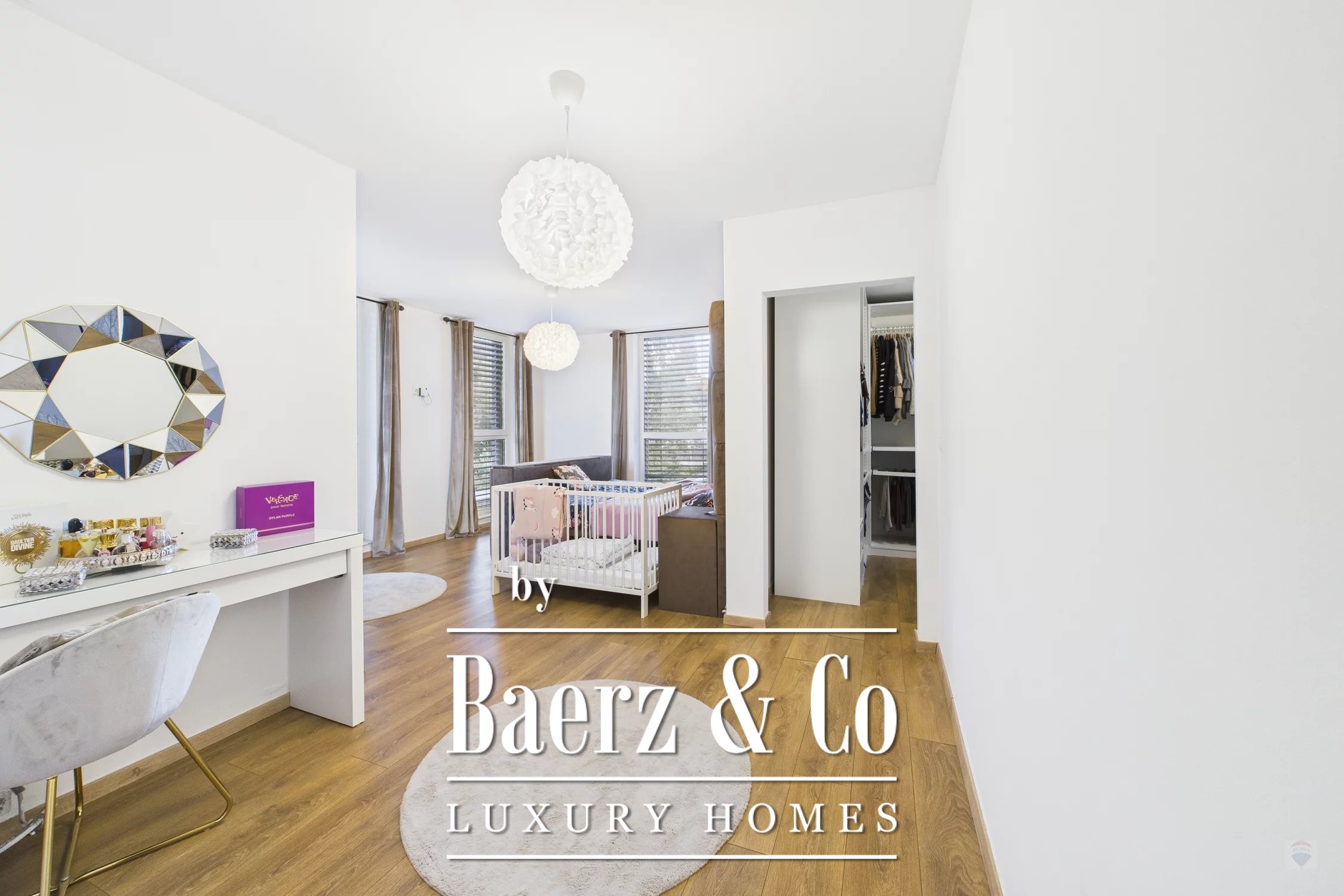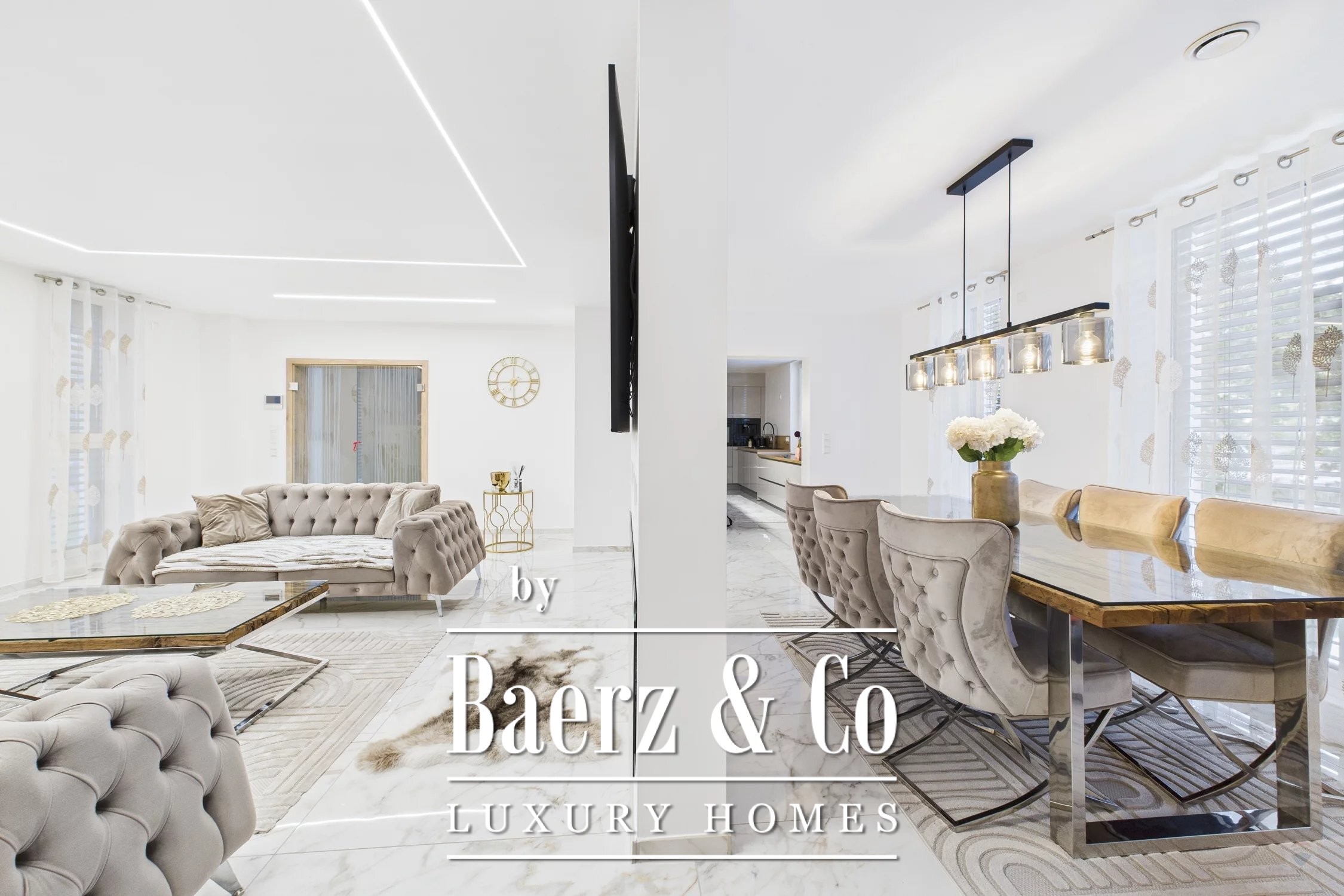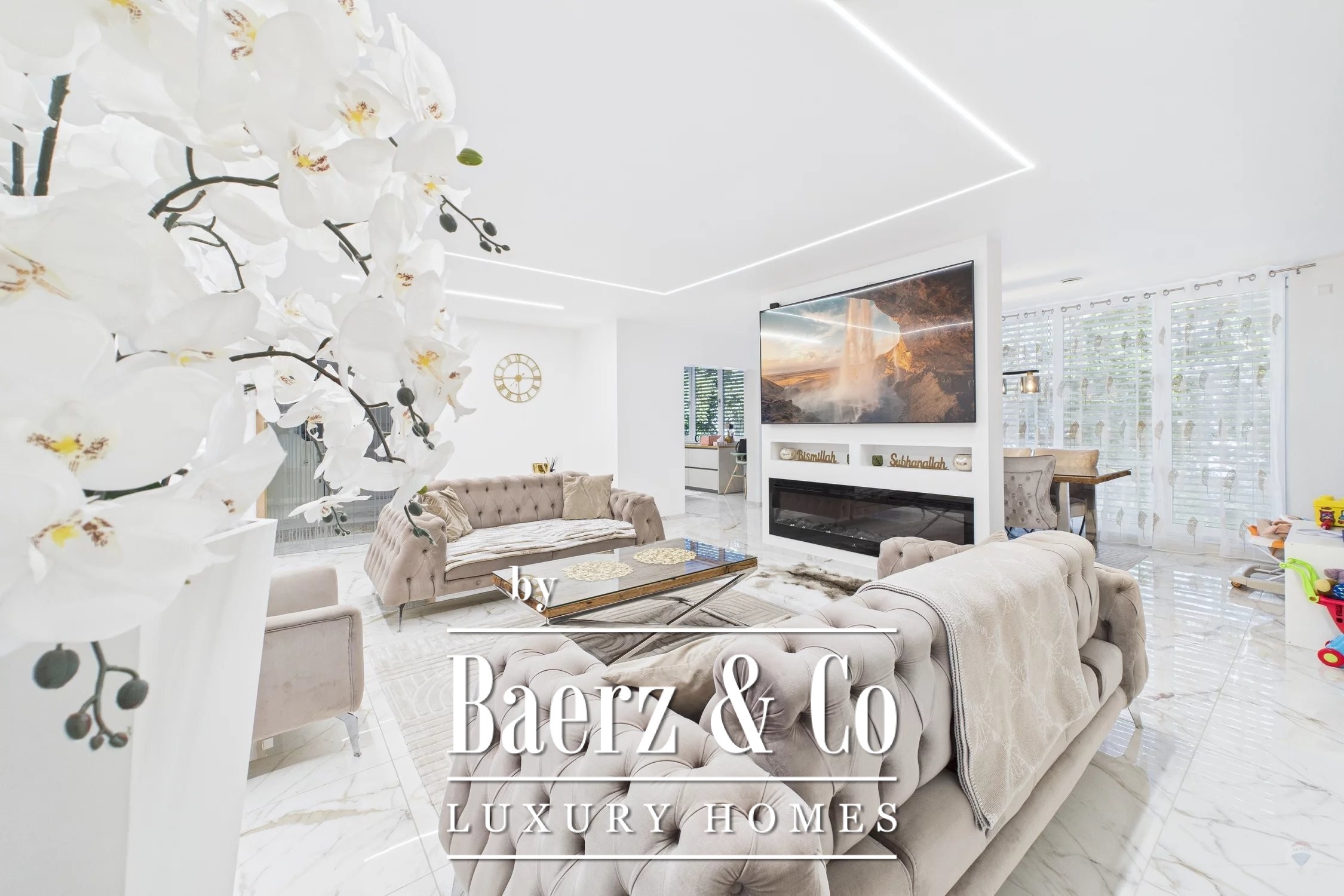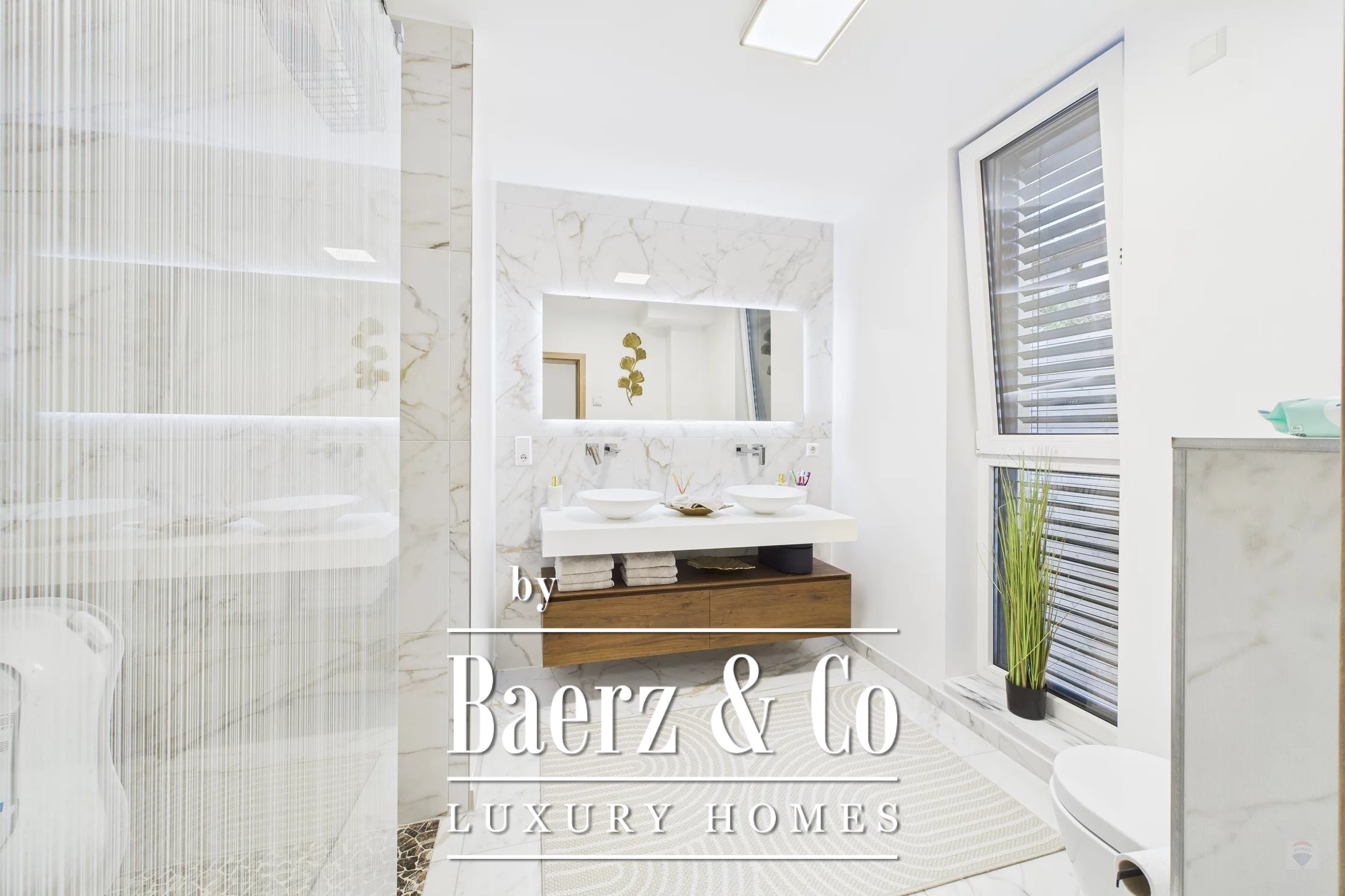 To complete this exceptional property, you'll benefit from a large two-car garage with automatic door, two outdoor parking spaces, as well as modern amenities such as underfloor heating, a double-flow ventilation system, triple glazing with slatted blinds and fiber optics.
