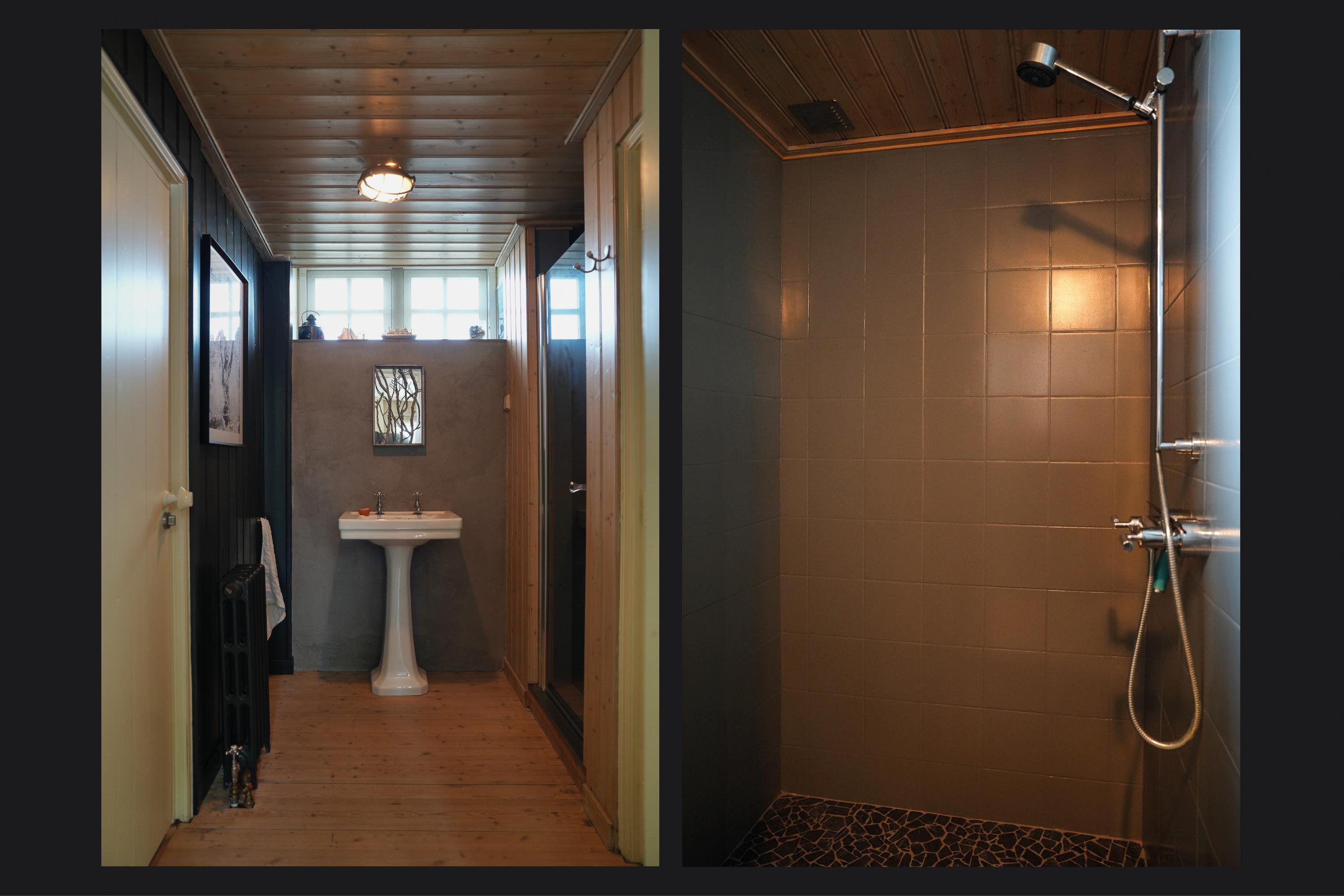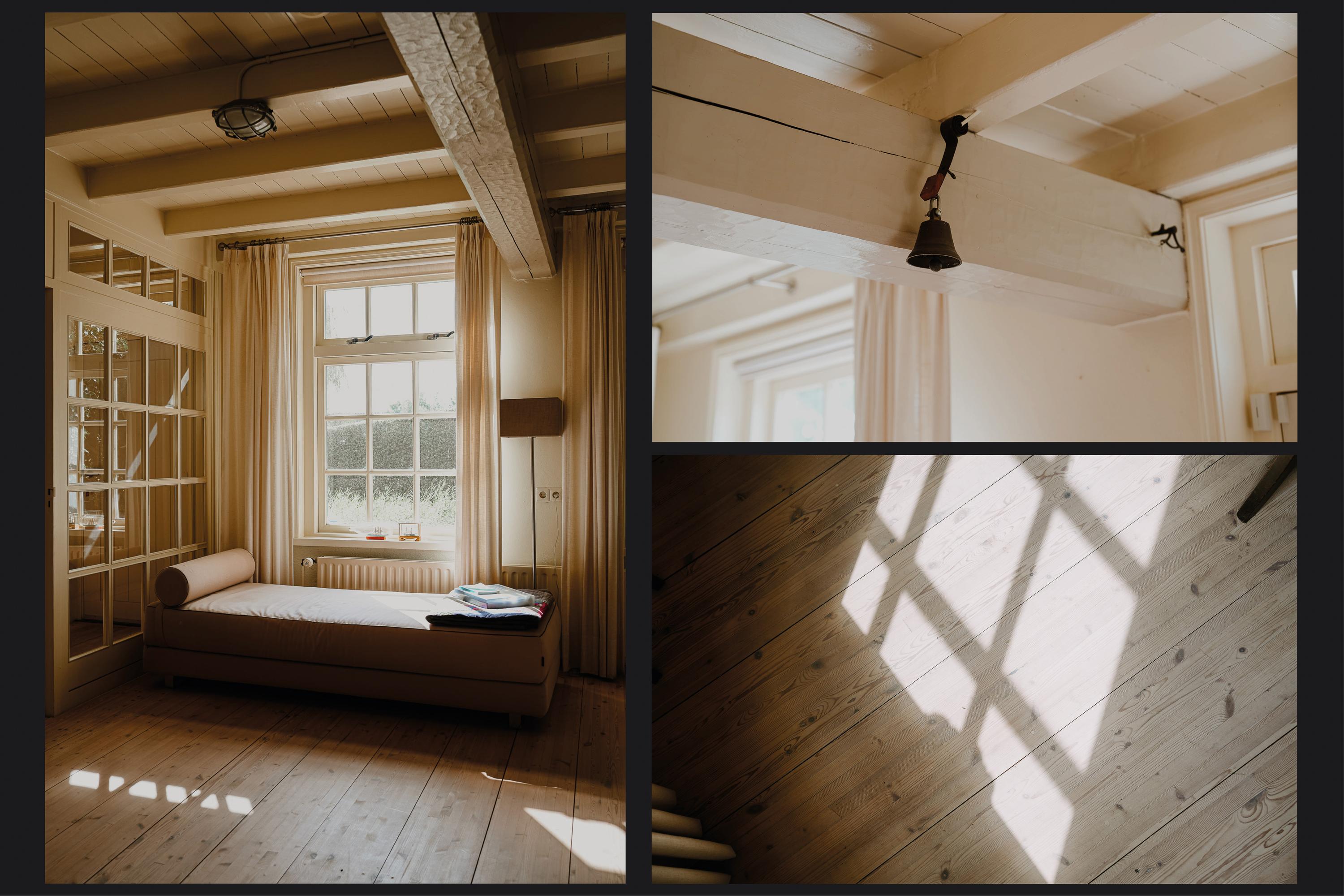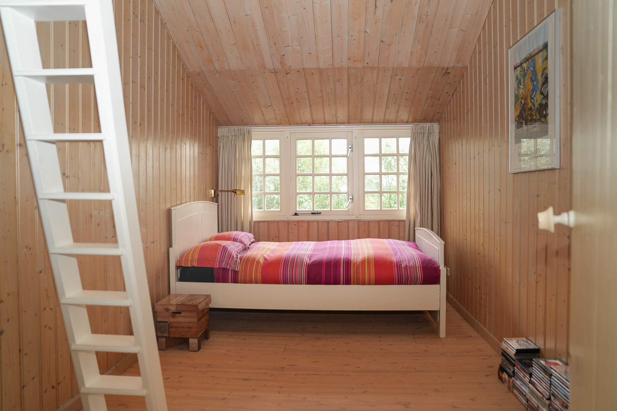 One currently serves as a study; the other makes an ideal guest room thanks to the adjoining shower and toilet. In the study, a hatch leads to a cellar.