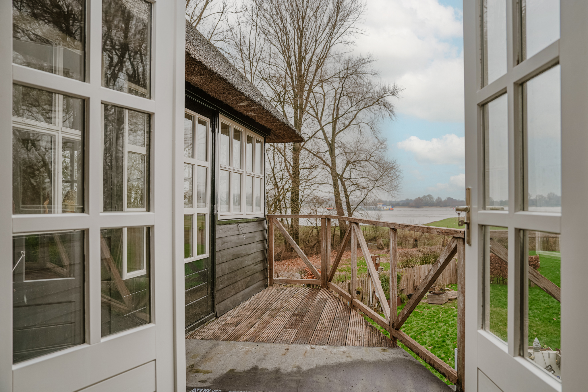 This property is known locally as “The Old Smithy,” as it was the village blacksmith’s house until 1964. From the dike, the house resembles a classic dike house commonly found along the River Waal. However, the rear boasts the appearance of a luxury villa, thanks to the clapboard extension, thatched roof, and French doors.