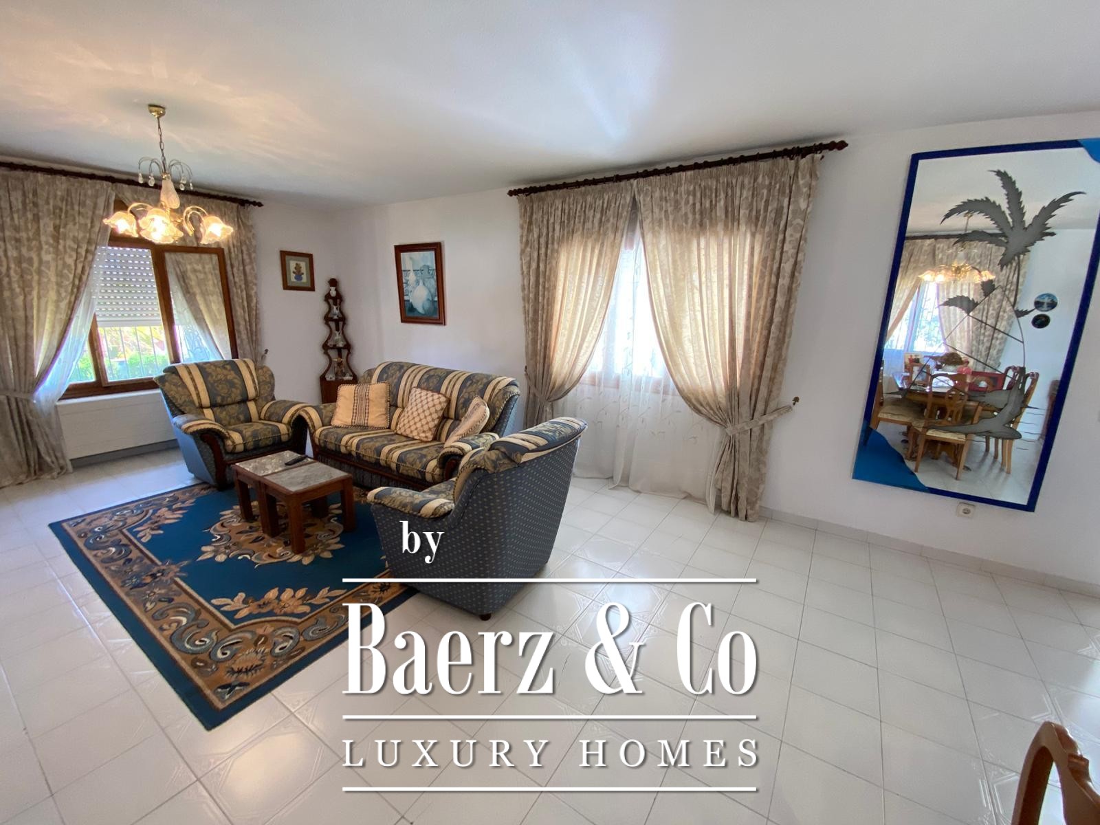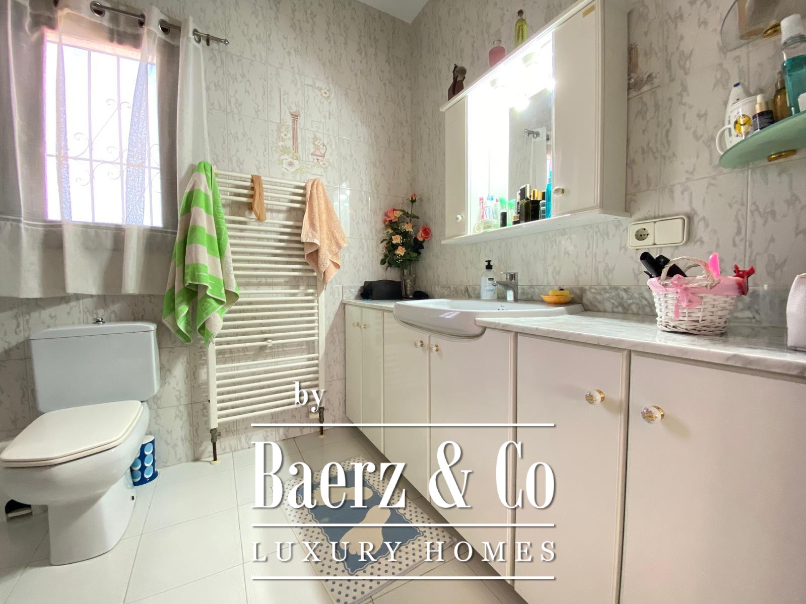 El elegante salón-comedor, equipado con chimenea, conecta con una cocina independiente. Las tres habitaciones están diseñadas para el máximo confort, destacando la suite principal con baño privado en suite, además de dos baños adicionales. Grandes ventanales de suelo a techo inundan cada estancia de luz mediterránea, mientras que la calefacción central, el aire acondicionado y las ventanas con doble acristalamiento aseguran habitabilidad todo el año.