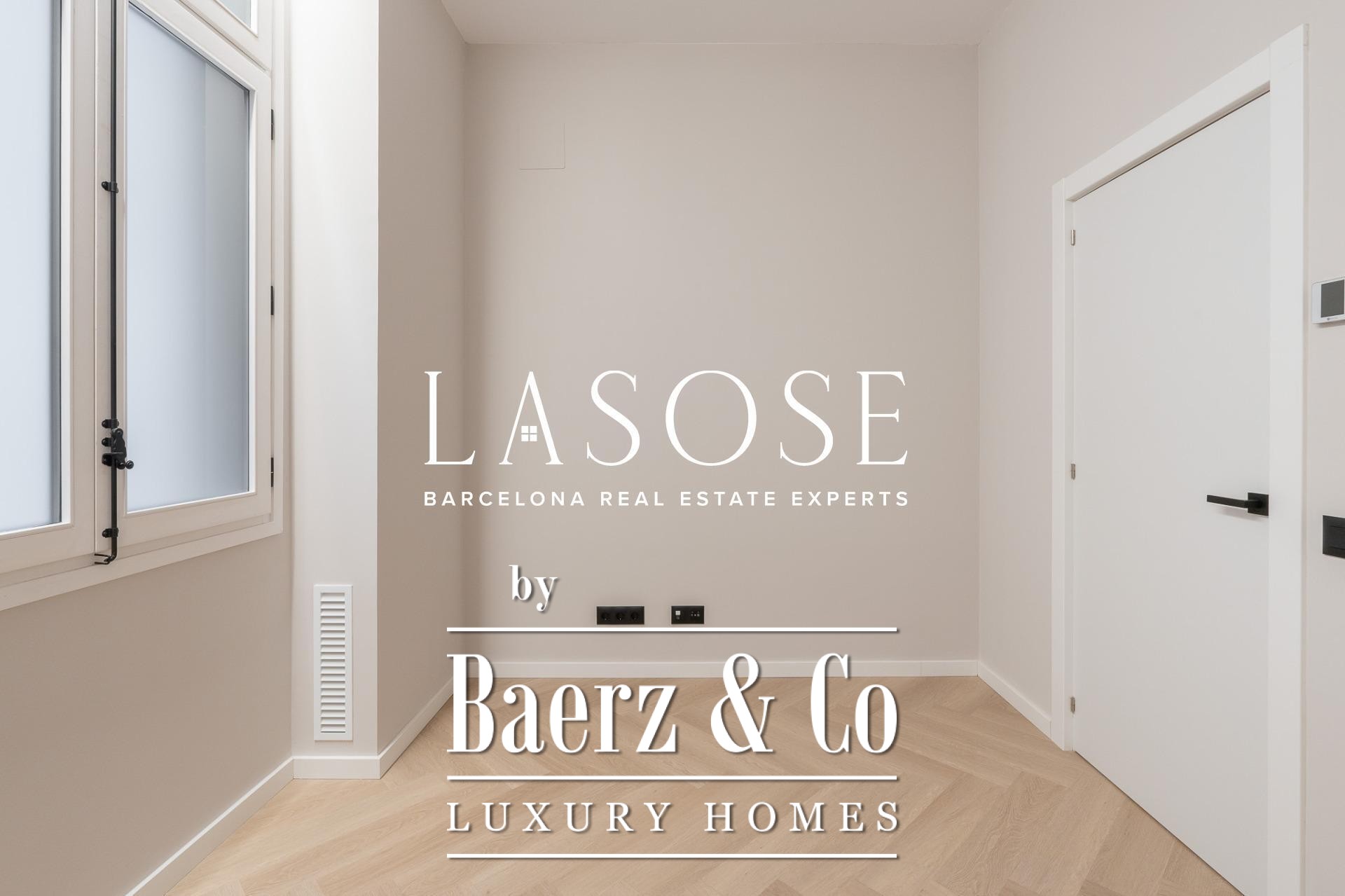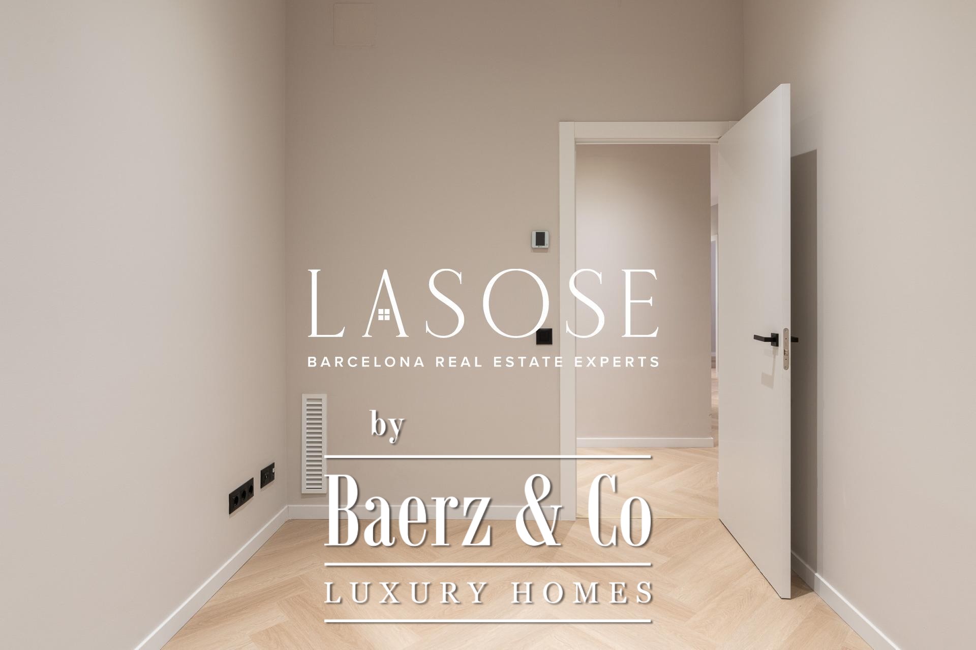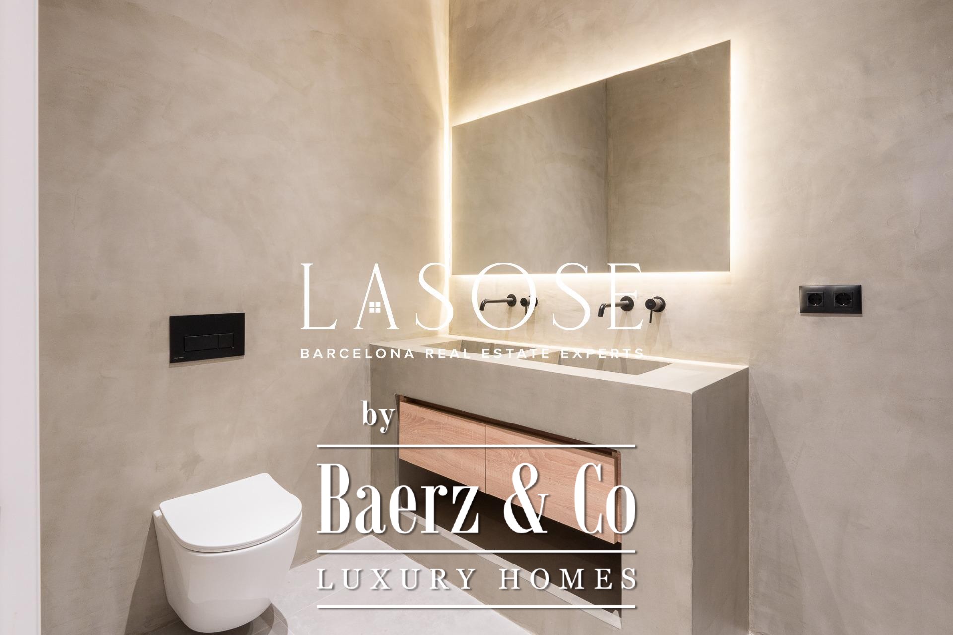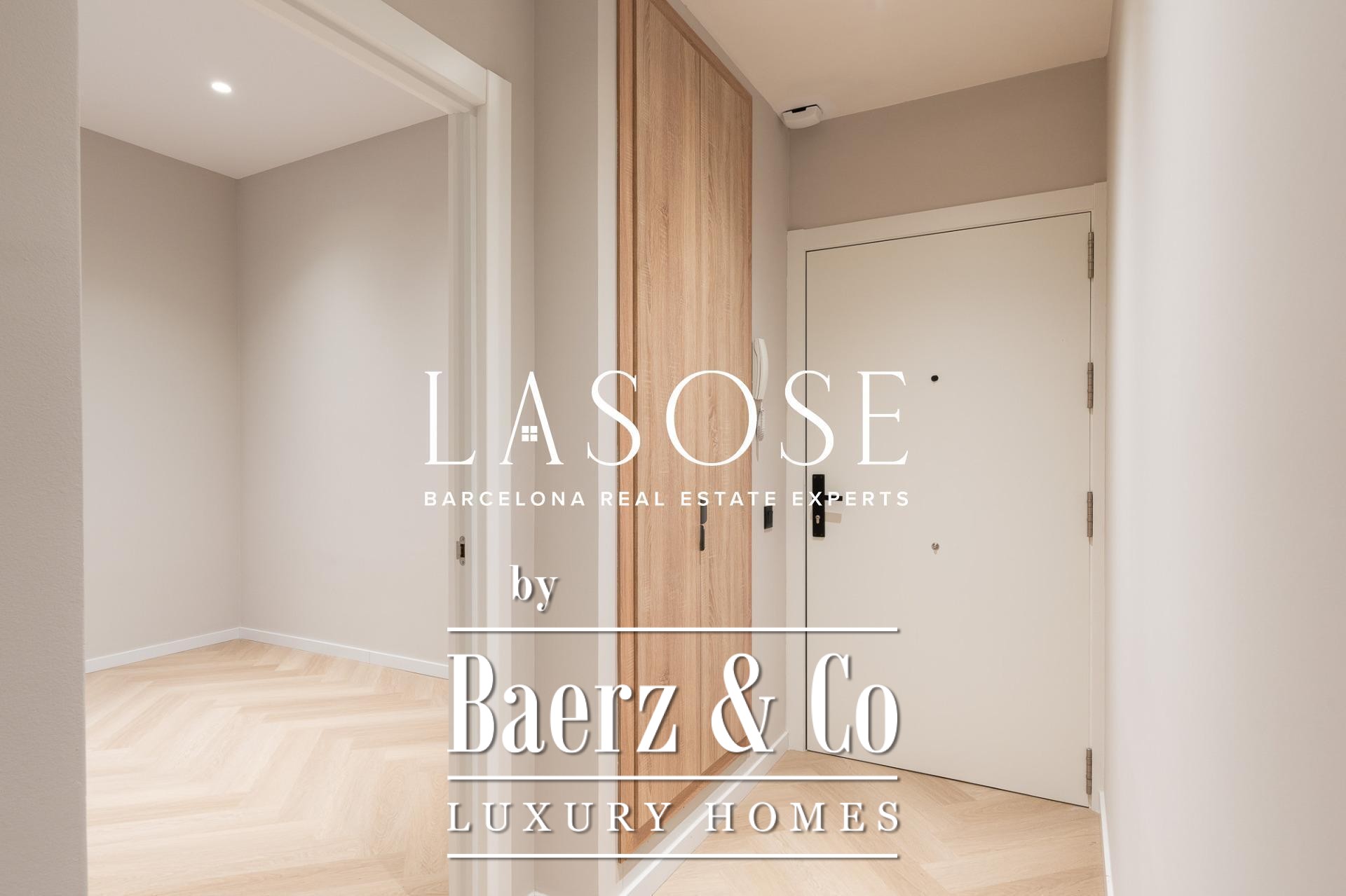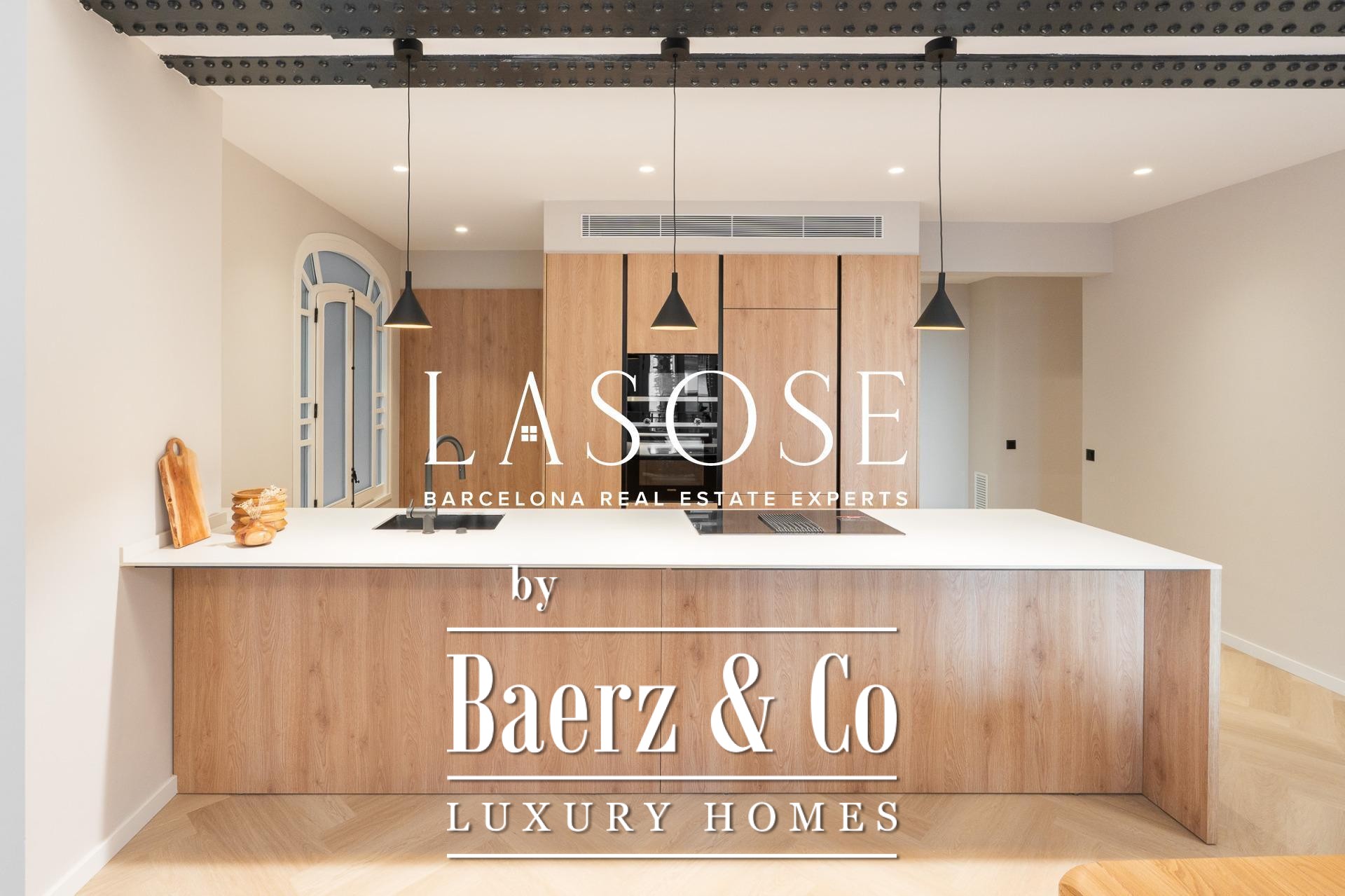 Tres dormitorios, incluyendo una suite principal con baño privado y vestidor independiente, se complementan con armarios empotrados y carpintería a medida. El confort se garantiza mediante climatización aerotérmica y ventanas de madera con doble acristalamiento. Los residentes disfrutan de las comodidades de ascensor, servicio de conserjería, videoportero y puerta acorazada de seguridad. La versión de larga cola de apartamento de lujo en venta en Barcelona es ideal para quienes valoran la discreción y el diseño.