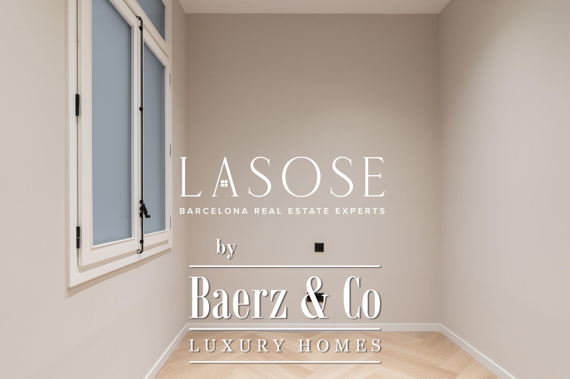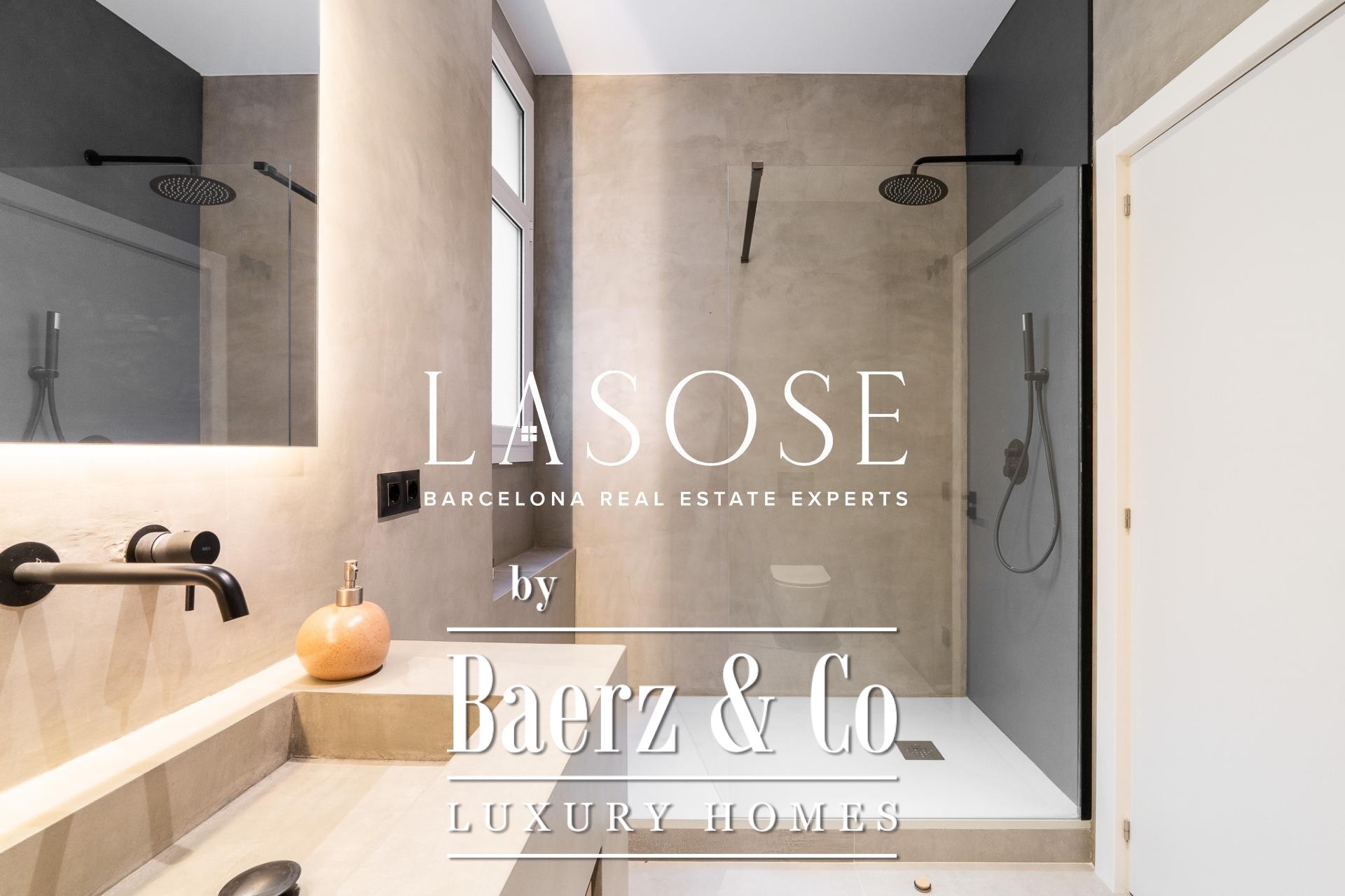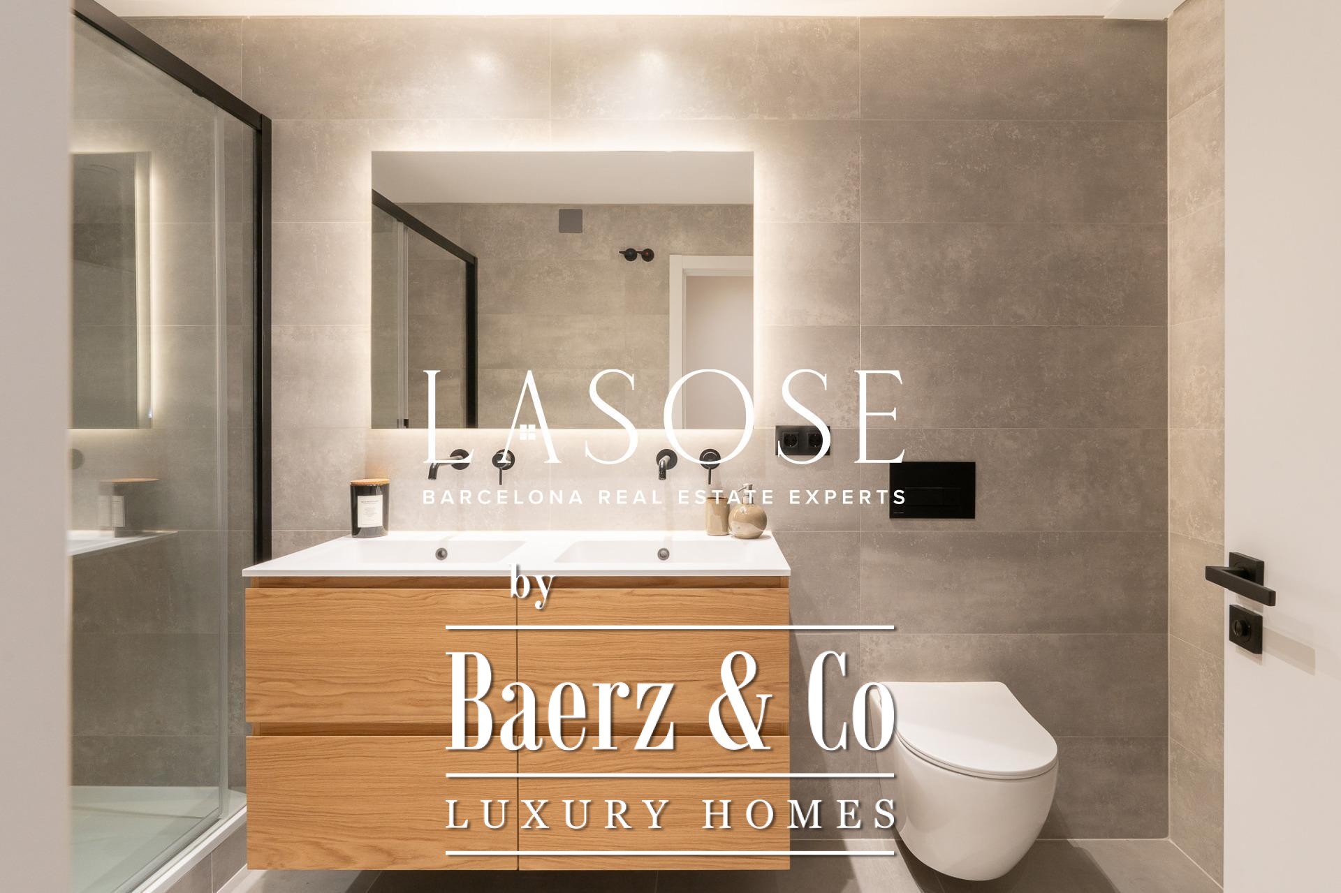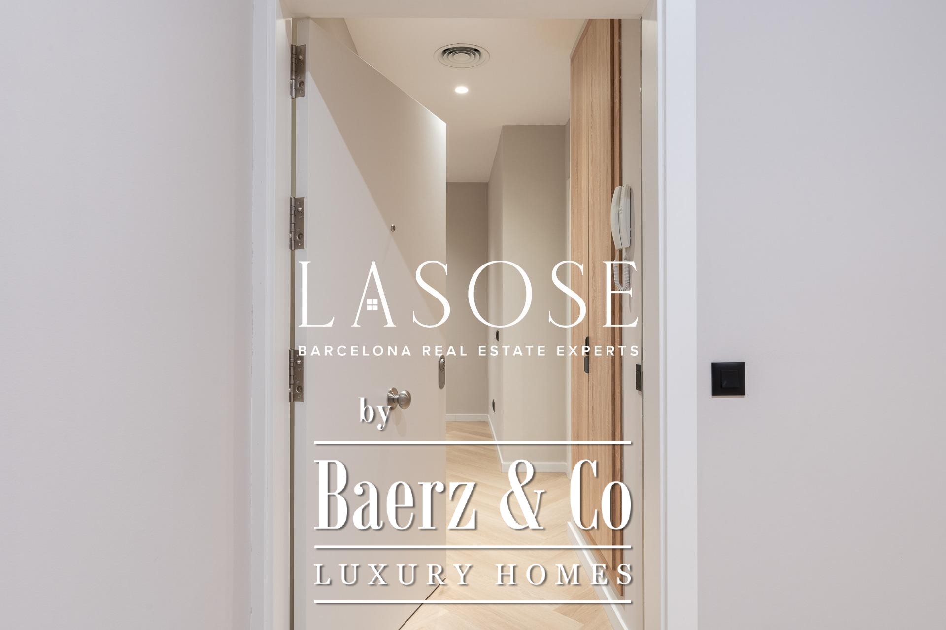 Tres dormitorios, incluyendo una suite principal con baño privado y vestidor independiente, se complementan con armarios empotrados y carpintería a medida. El confort se garantiza mediante climatización aerotérmica y ventanas de madera con doble acristalamiento. Los residentes disfrutan de las comodidades de ascensor, servicio de conserjería, videoportero y puerta acorazada de seguridad. La versión de larga cola de apartamento de lujo en venta en Barcelona es ideal para quienes valoran la discreción y el diseño.