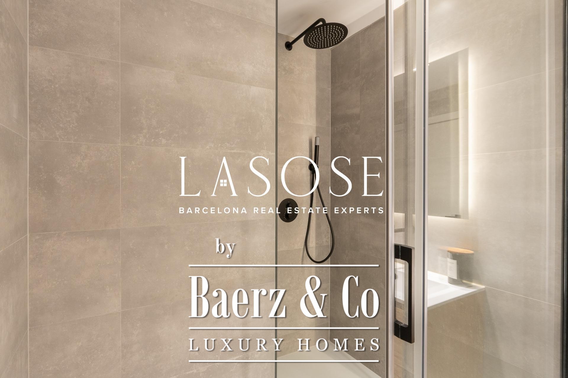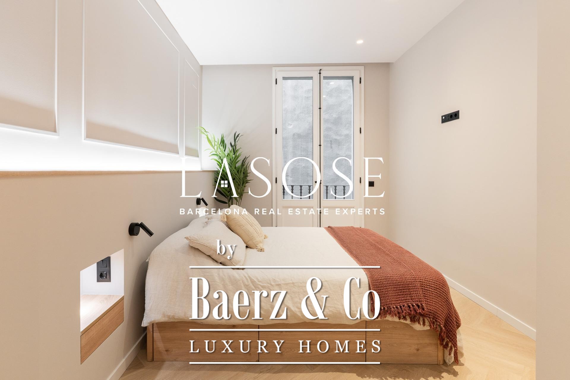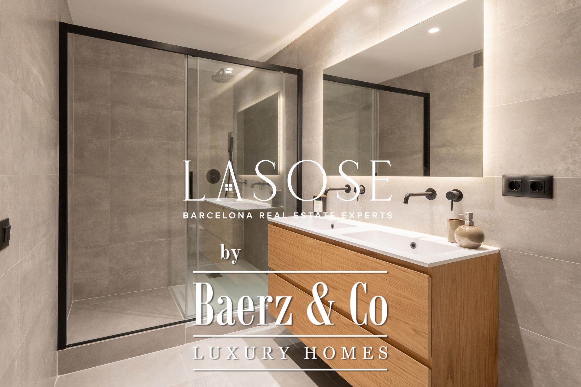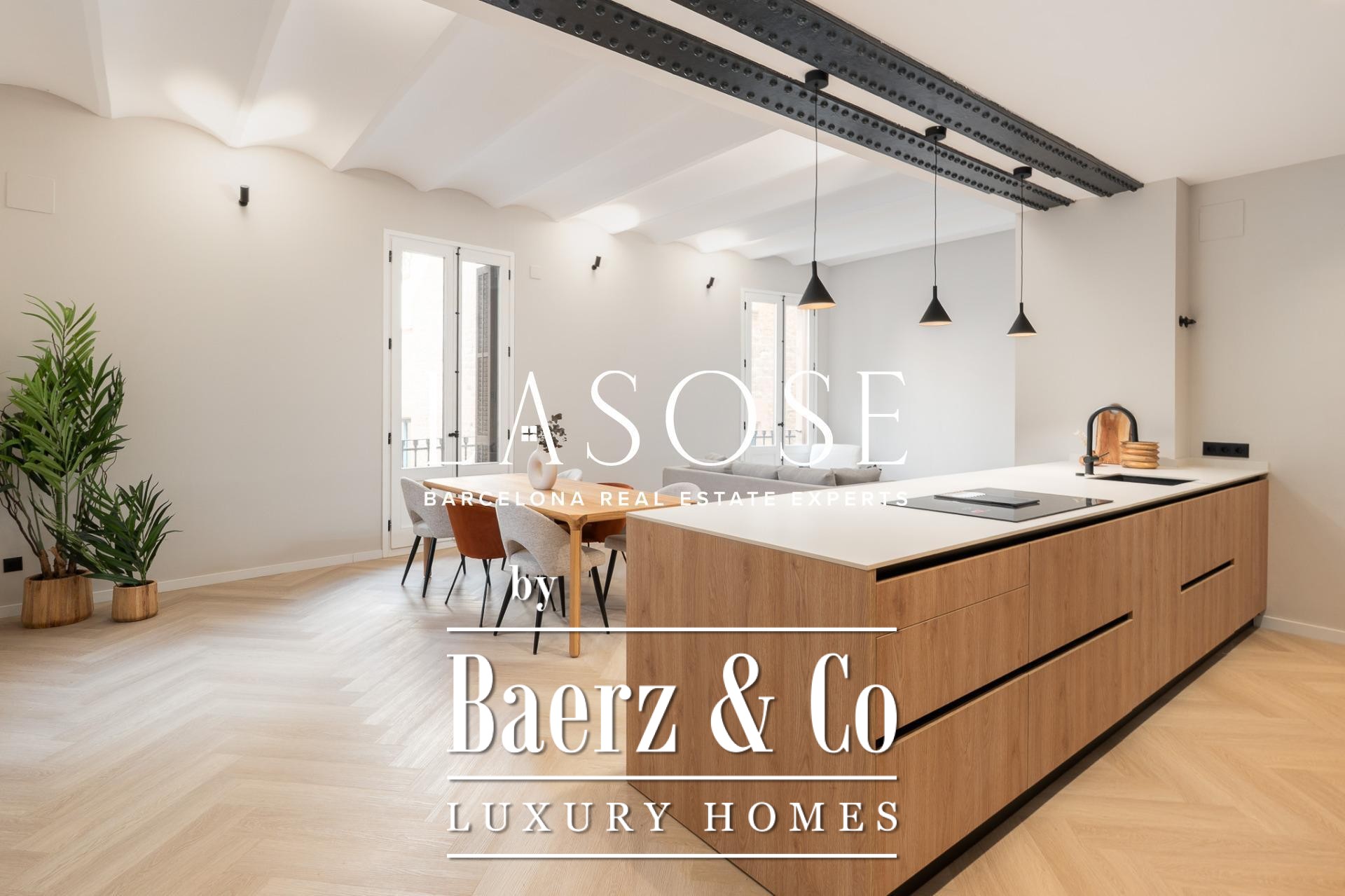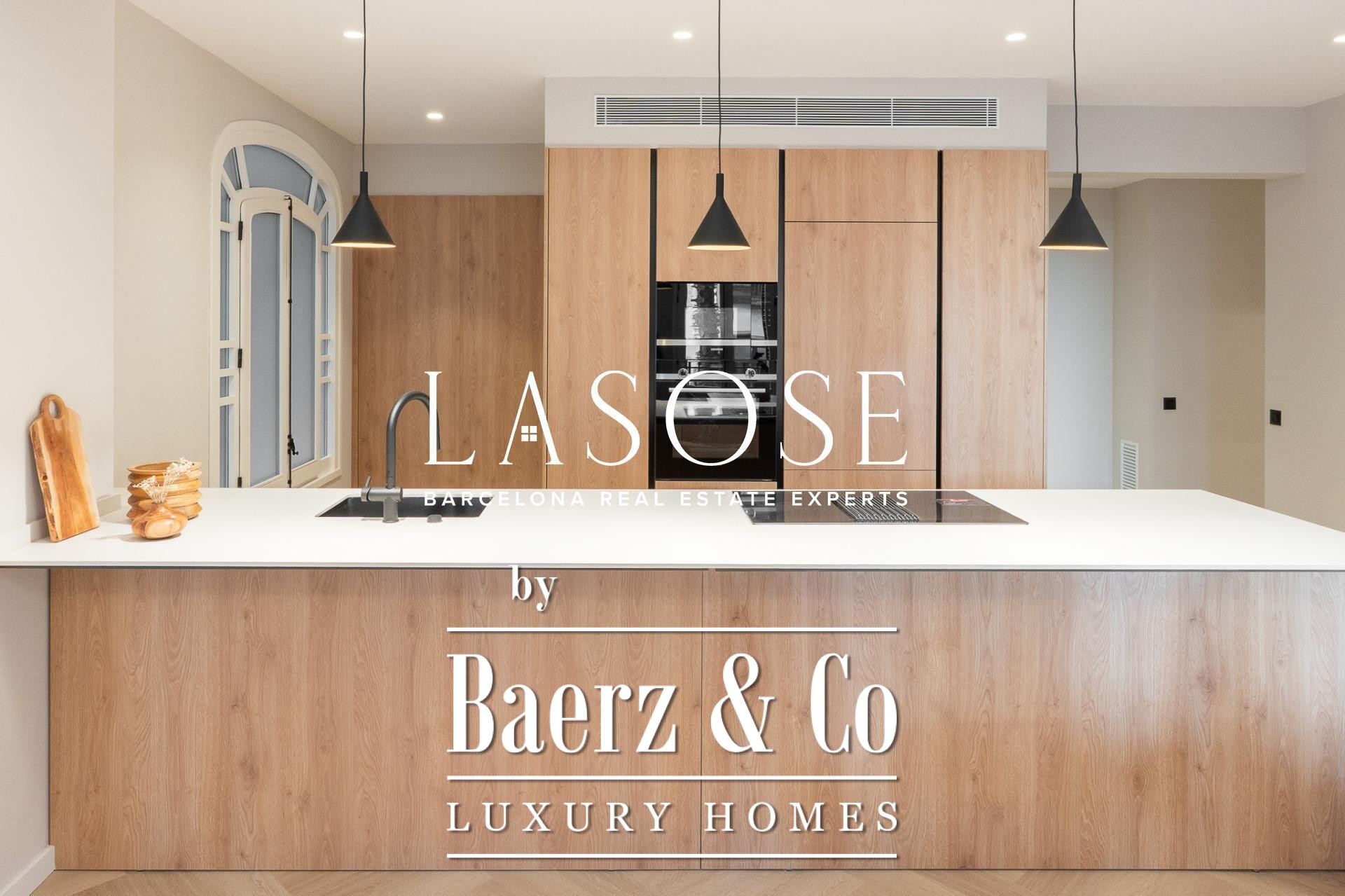 Tres dormitorios, incluyendo una suite principal con baño privado y vestidor independiente, se complementan con armarios empotrados y carpintería a medida. El confort se garantiza mediante climatización aerotérmica y ventanas de madera con doble acristalamiento. Los residentes disfrutan de las comodidades de ascensor, servicio de conserjería, videoportero y puerta acorazada de seguridad. La versión de larga cola de apartamento de lujo en venta en Barcelona es ideal para quienes valoran la discreción y el diseño.