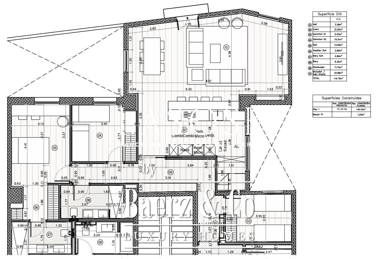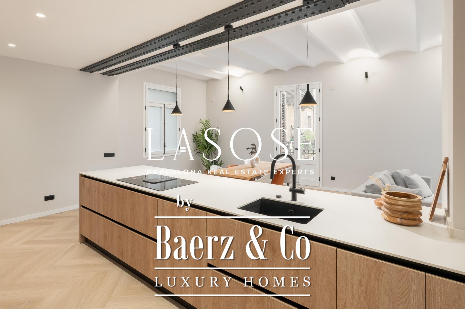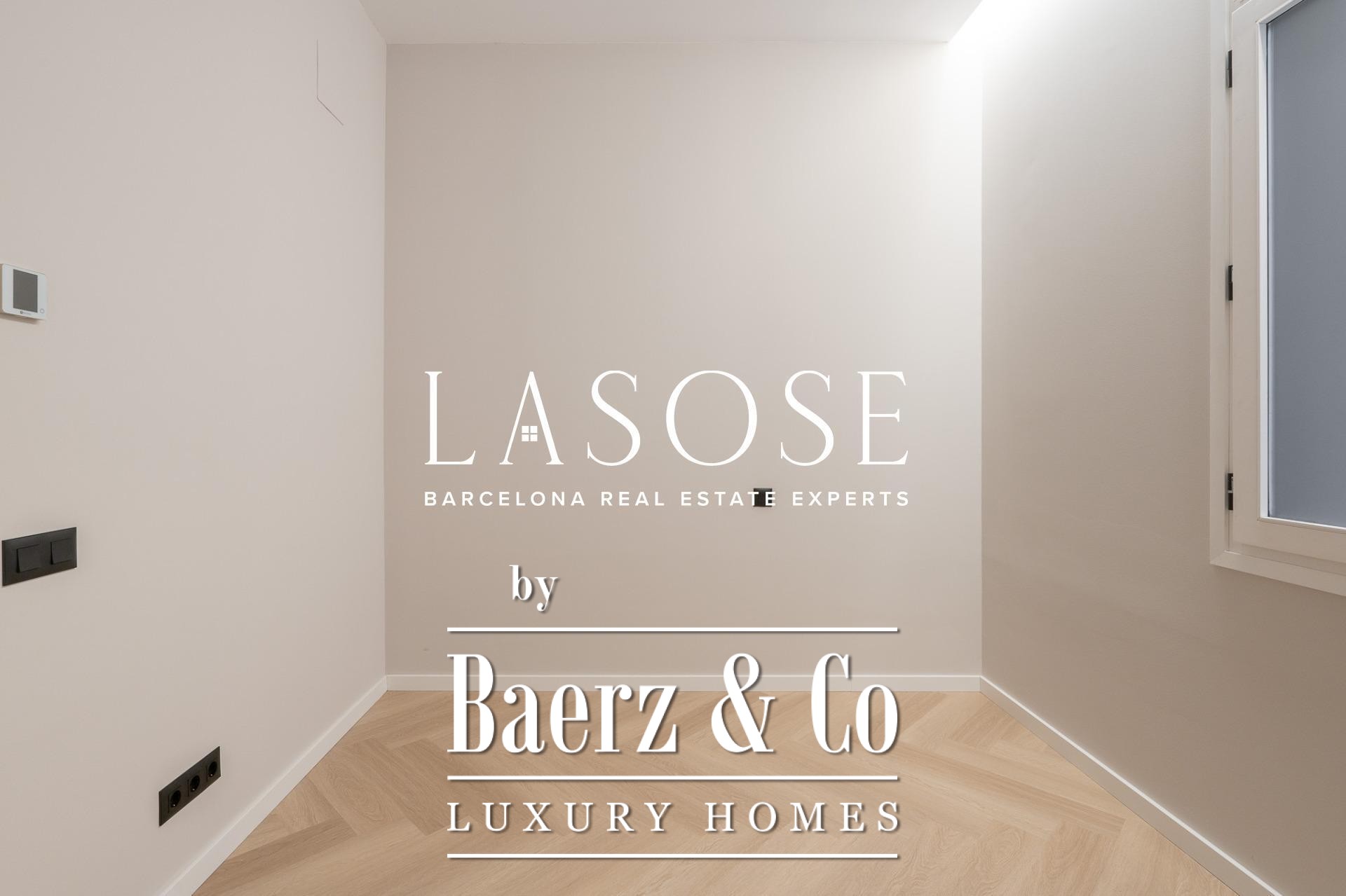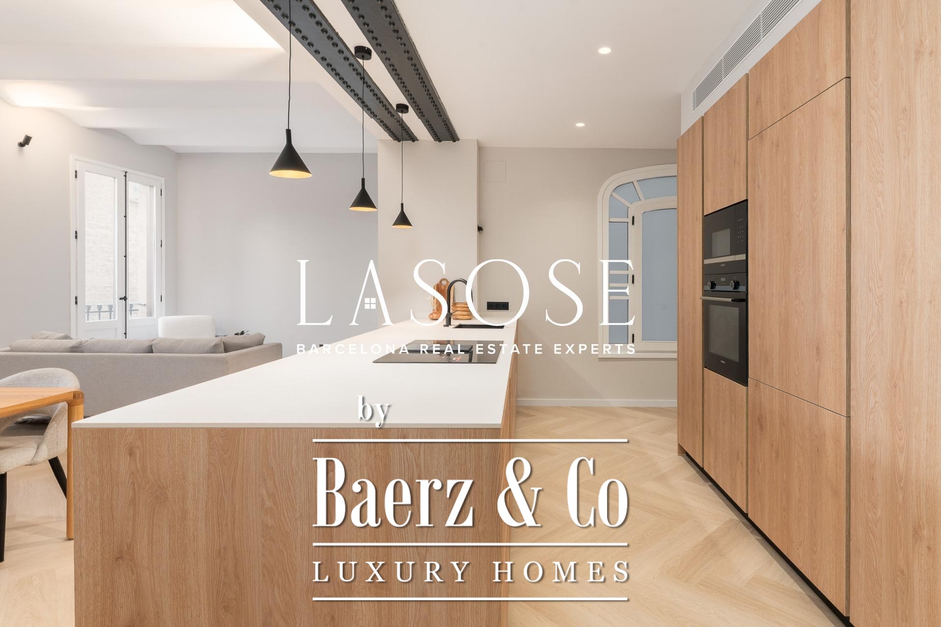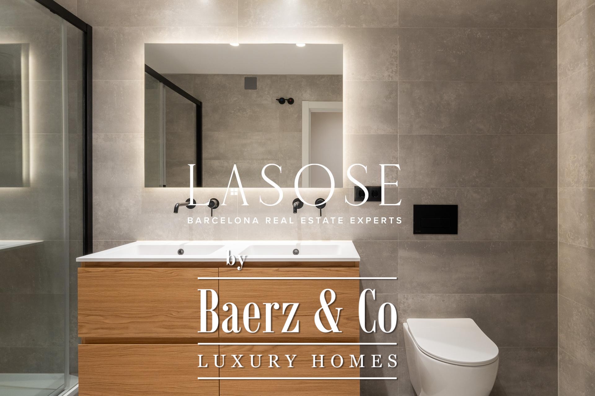 Tres dormitorios, incluyendo una suite principal con baño privado y vestidor independiente, se complementan con armarios empotrados y carpintería a medida. El confort se garantiza mediante climatización aerotérmica y ventanas de madera con doble acristalamiento. Los residentes disfrutan de las comodidades de ascensor, servicio de conserjería, videoportero y puerta acorazada de seguridad. La versión de larga cola de apartamento de lujo en venta en Barcelona es ideal para quienes valoran la discreción y el diseño.
