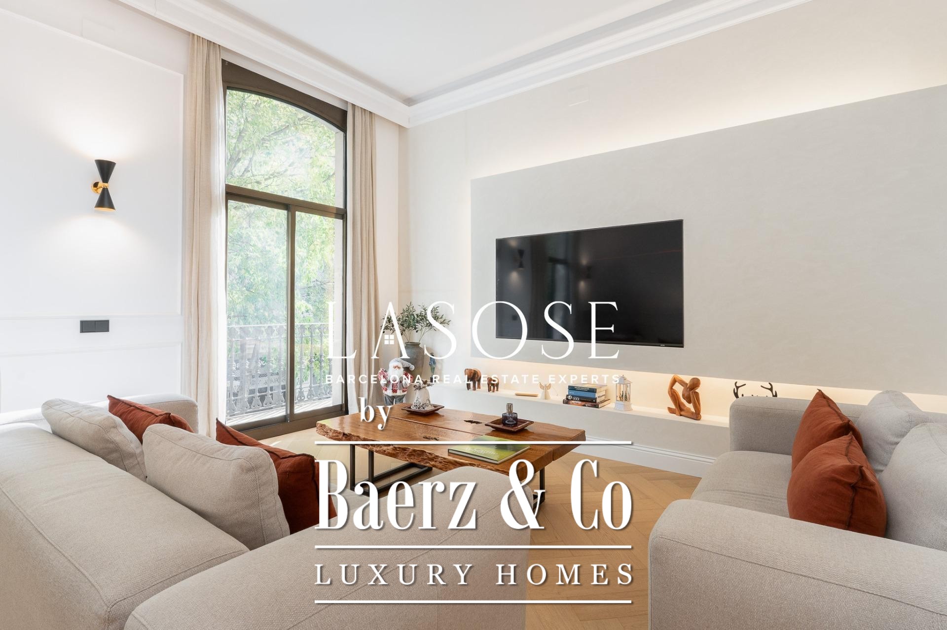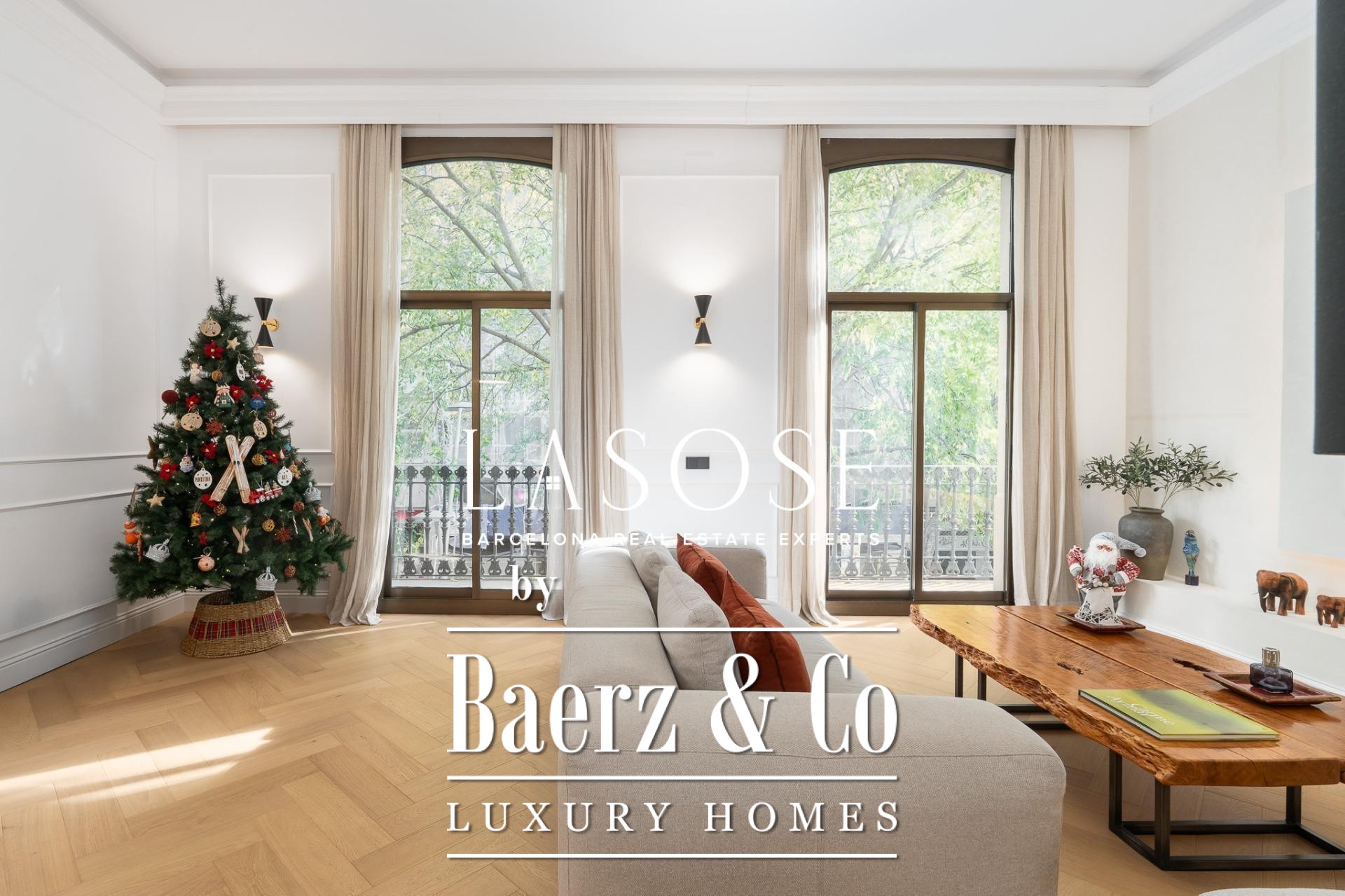 Este apartamento modernista en el Quadrat d'Or de Barcelona es una oportunidad única, ofreciendo 150 metros cuadrados de espacio interior meticulosamente restaurado y una extraordinaria terraza trasera de aproximadamente 100 metros cuadrados. La vivienda, situada en un edificio protegido, fue completamente renovada en 2024 con acabados de alta gama. Se han conservado detalles patrimoniales, como la carpintería exterior en roble natural, las altas puertas interiores y armarios empotrados únicos, aportando una sensación de calidad duradera.