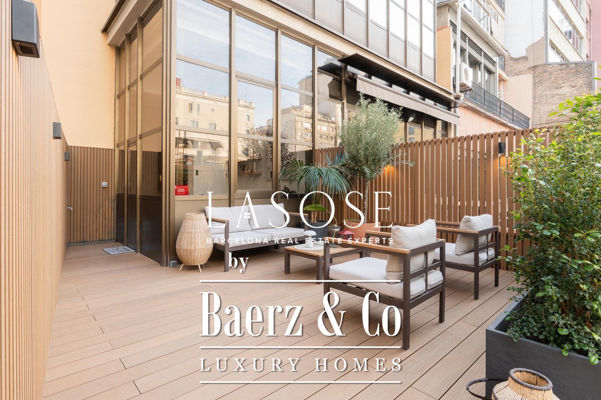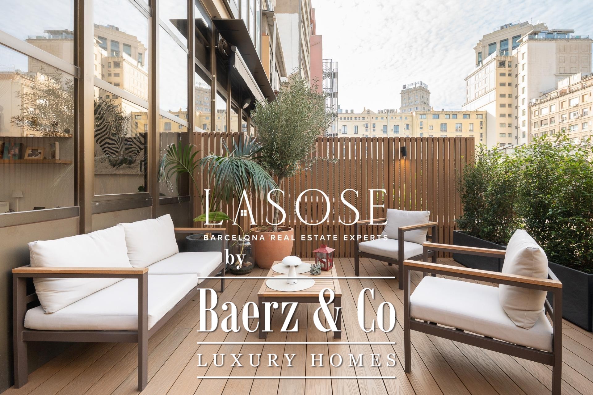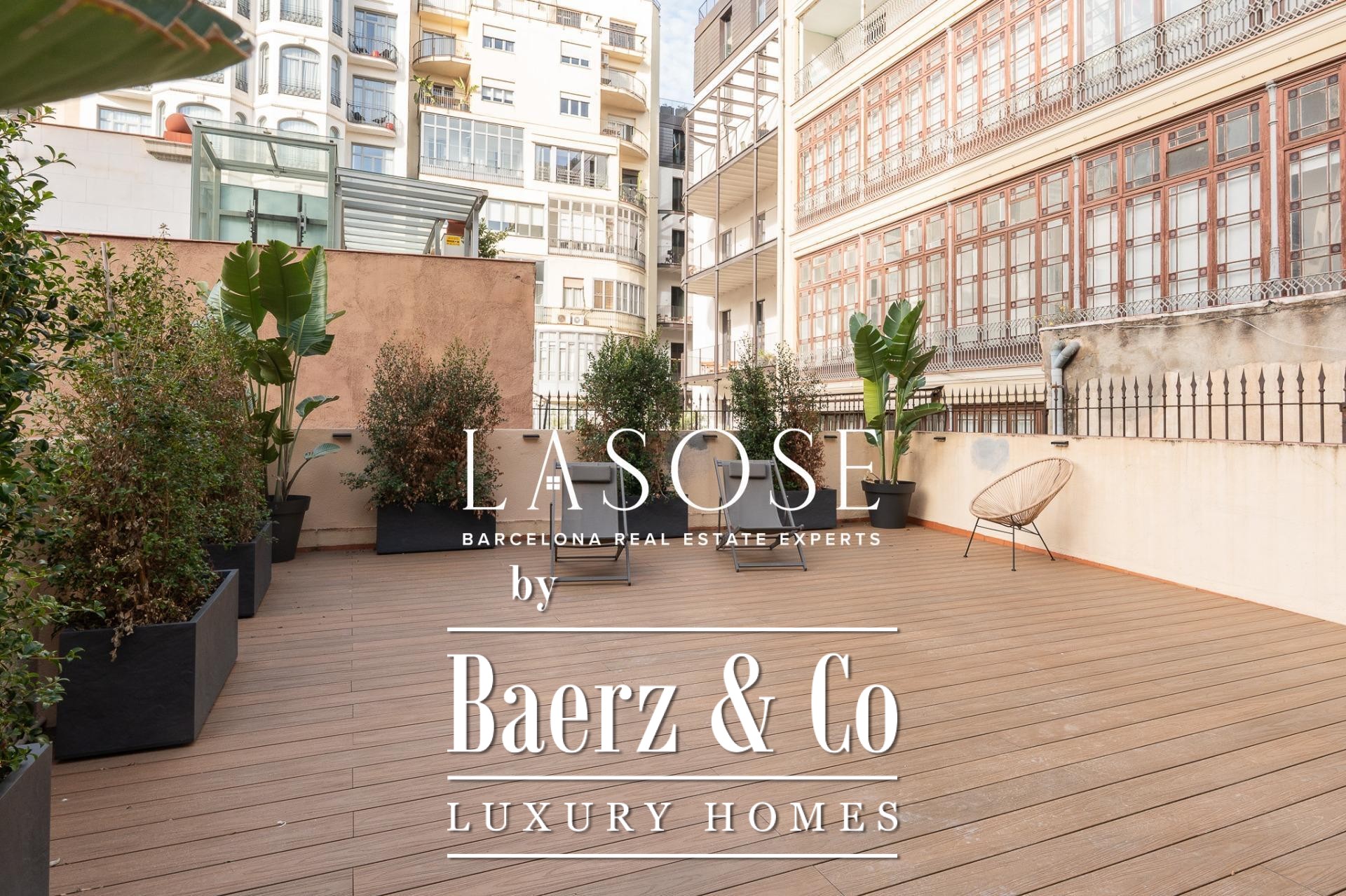 Uno de los grandes atractivos de la propiedad es la terraza privada, inusualmente grande para su ubicación en el Eixample, que ofrece espacio suficiente para una cocina exterior y una amplia zona de estar. Este apartamento modernista en venta en el Quadrat d'Or de Barcelona se sitúa entre la calle Casp y Passeig de Gràcia, rodeado de obras icónicas como la Casa Milà y la Casa Batlló, con boutiques de lujo y principales estaciones de metro a pocos minutos a pie. El edificio cuenta con ascensor y servicio de conserjería para mayor comodidad y discreción, ideal para quienes buscan exclusividad en pleno corazón de Barcelona.