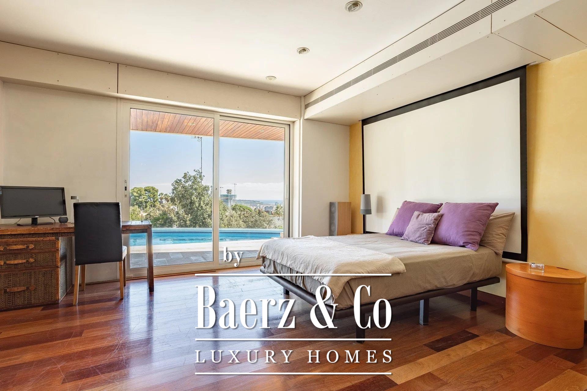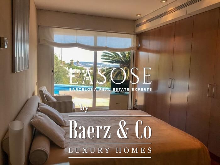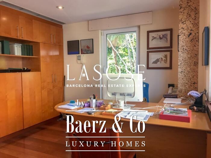 Las plantas superiores albergan la zona de noche, con tres dormitorios principales en suite y una suite principal con despacho. Más arriba, tres dormitorios individuales, cada uno con baño, y una terraza panorámica que permite disfrutar de la luz y vistas lejanas al mar. Entre sus comodidades destacan calefacción central, aire acondicionado, ascensor, videoportero, gimnasio, trastero y riego automático. Esta villa en Esplugues de Llobregat encarna el lujo español discreto, ofreciendo refugio y conexión, ideal para quienes buscan una residencia familiar de distinción cerca de Barcelona.