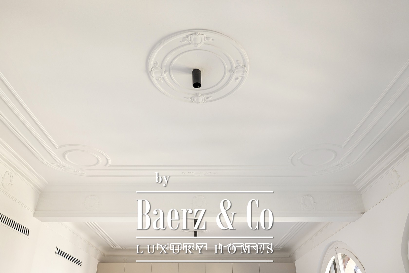 L’appartement propose deux chambres généreusement dimensionnées et deux salles de bains, avec une organisation intérieure inspirant ouverture et clarté. Les galeries et fenêtres restaurées rythment la vie au quotidien, laissant pénétrer la lumière naturelle et enveloppant chaque espace de chaleur du matin au soir. Chaque élément d’éclairage a été choisi à la suite d’une étude architecturale affinée, cultivant une ambiance discrètement sophistiquée à toute heure de la journée.