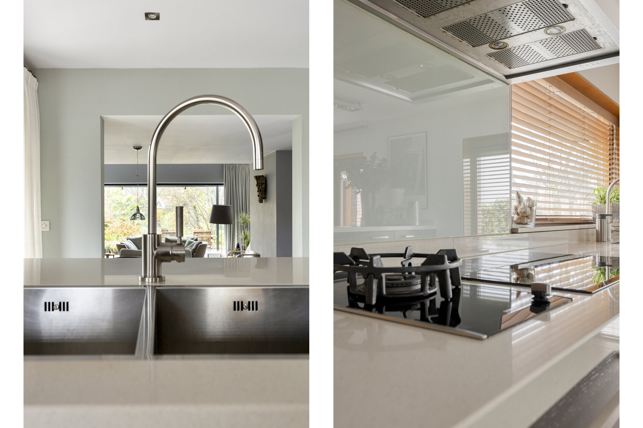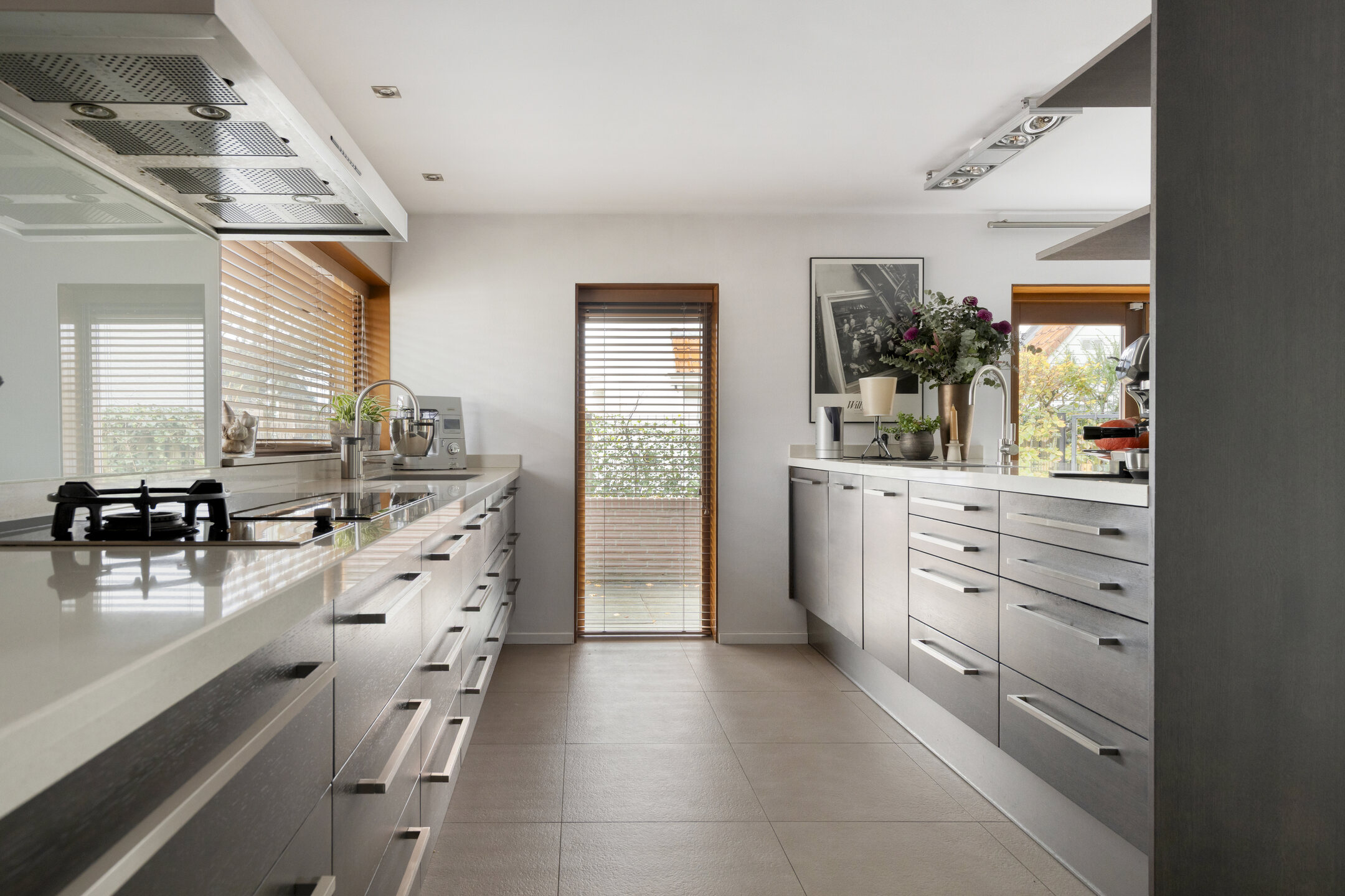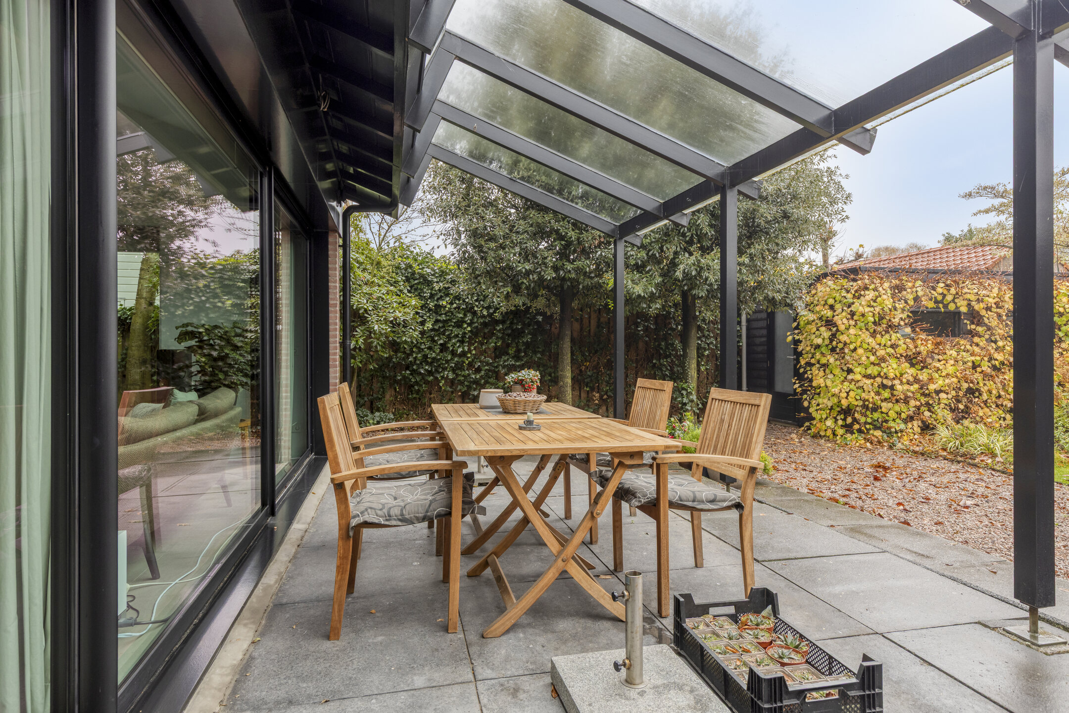 Dès l’entrée latérale vitrée, une sensation de clarté et d’ouverture envahit la cuisine contemporaine, entièrement équipée avec une plaque à induction, un brûleur wok à gaz et des appareils haut de gamme. L’agencement ouvert se prolonge vers le séjour, où de larges baies coulissantes, des plafonds hauts et une cheminée centrale distillent luminosité et quiétude. À l’arrière, la véranda vitrée prolonge la saison et offre une connexion visuelle avec le jardin de plus de 30 mètres de profondeur, orienté ouest-nord-ouest, foisonnant de verdure locale et de faune.