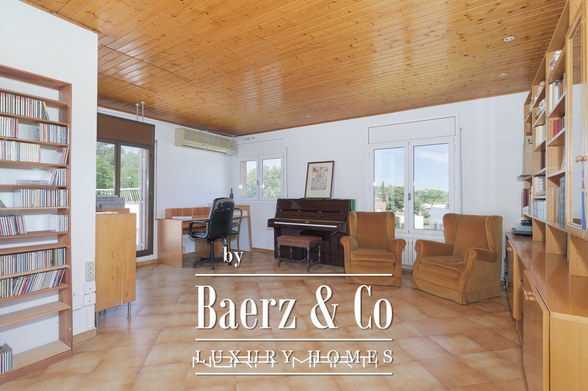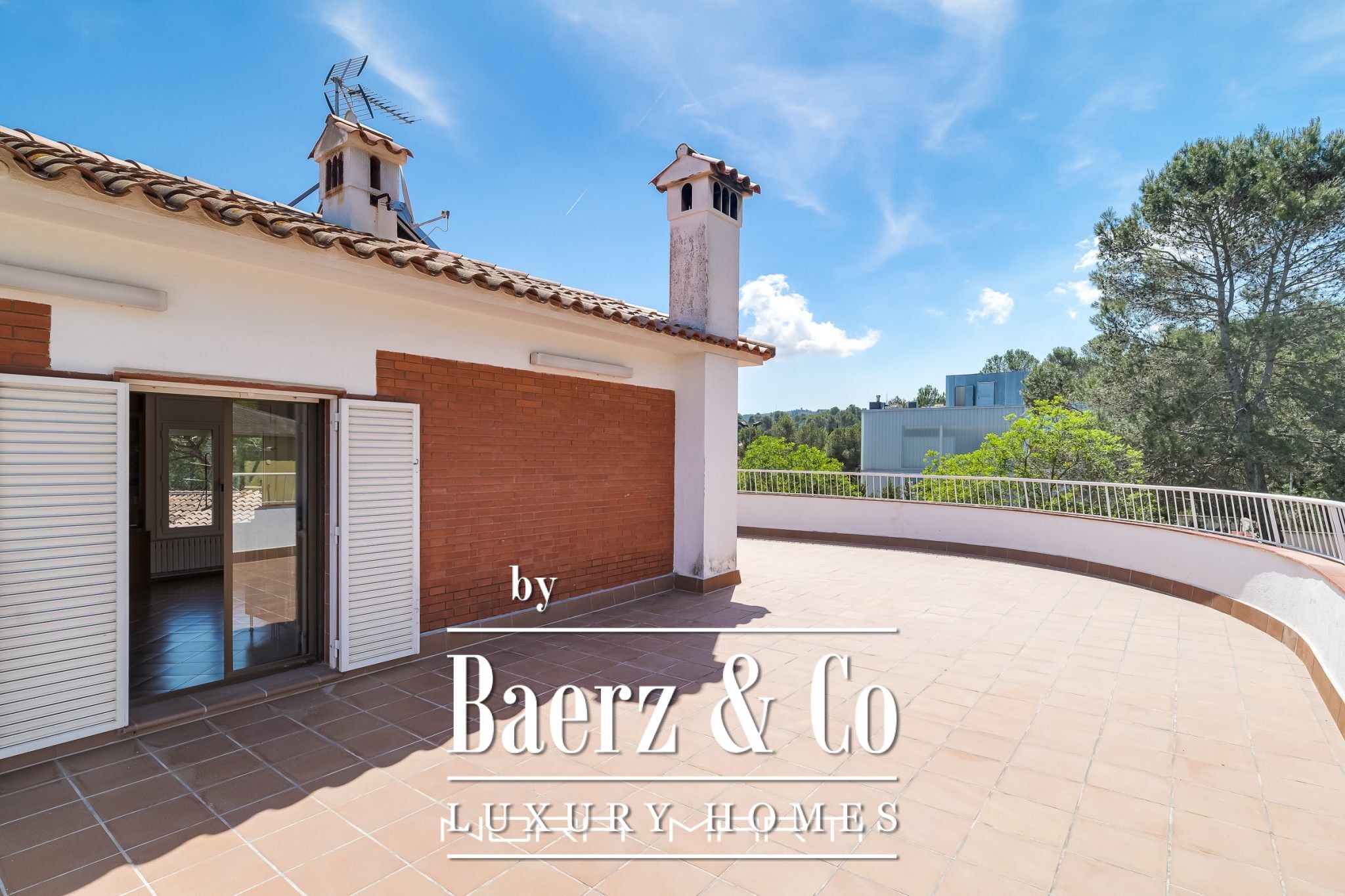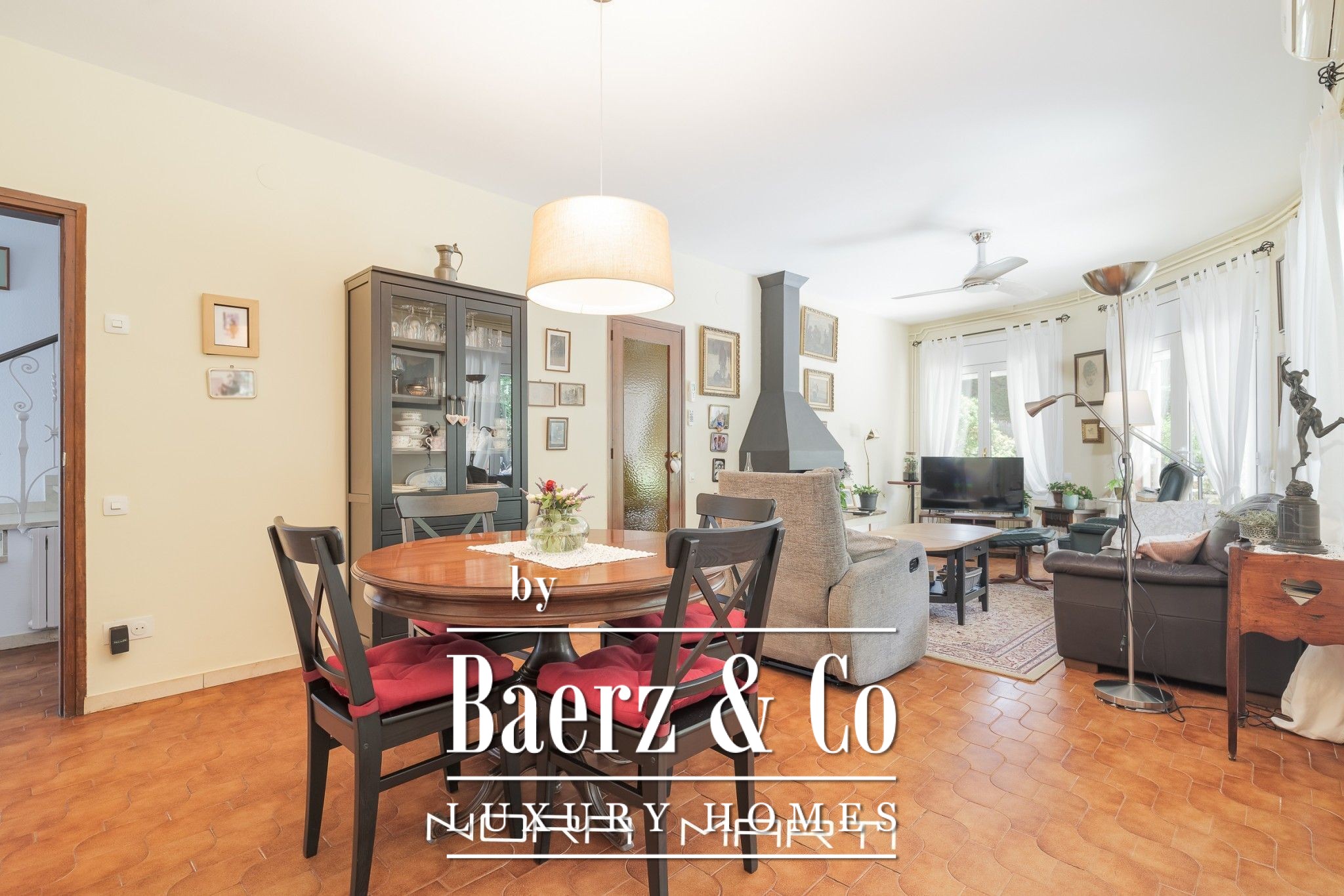 Espace repas extérieur, terrasse périphérique et deux accès de stationnement indépendants renforcent le confort et l’intimité. Située dans un quartier paisible et bien desservi, cette maison à Sant Cugat offre un cadre serein à la vie de famille et à la convivialité.