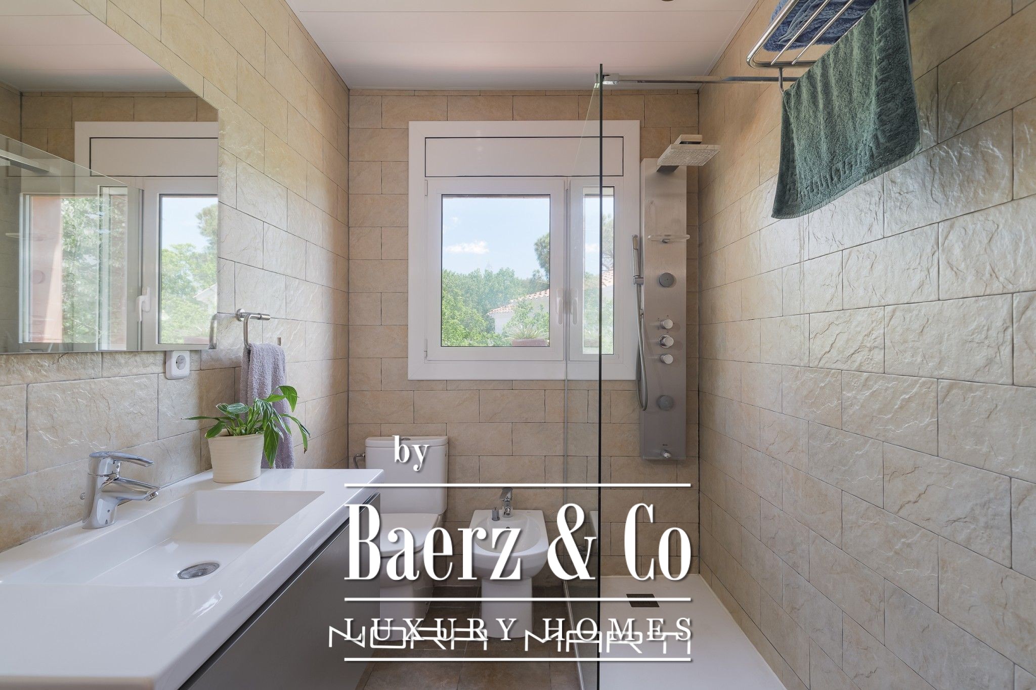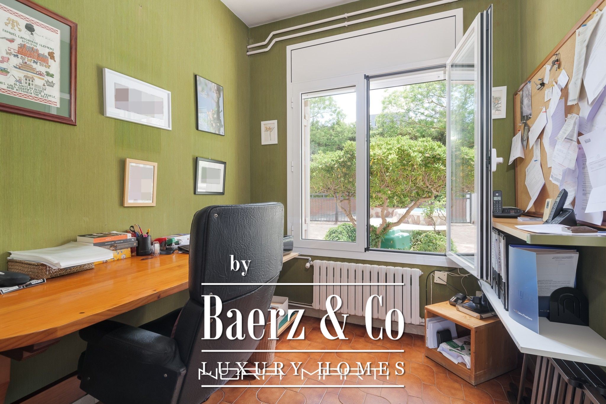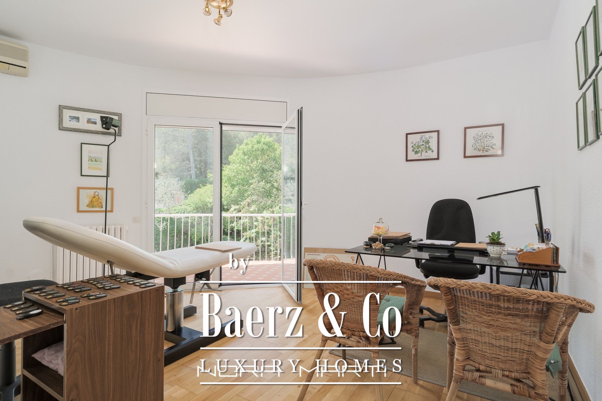 Espace repas extérieur, terrasse périphérique et deux accès de stationnement indépendants renforcent le confort et l’intimité. Située dans un quartier paisible et bien desservi, cette maison à Sant Cugat offre un cadre serein à la vie de famille et à la convivialité.
