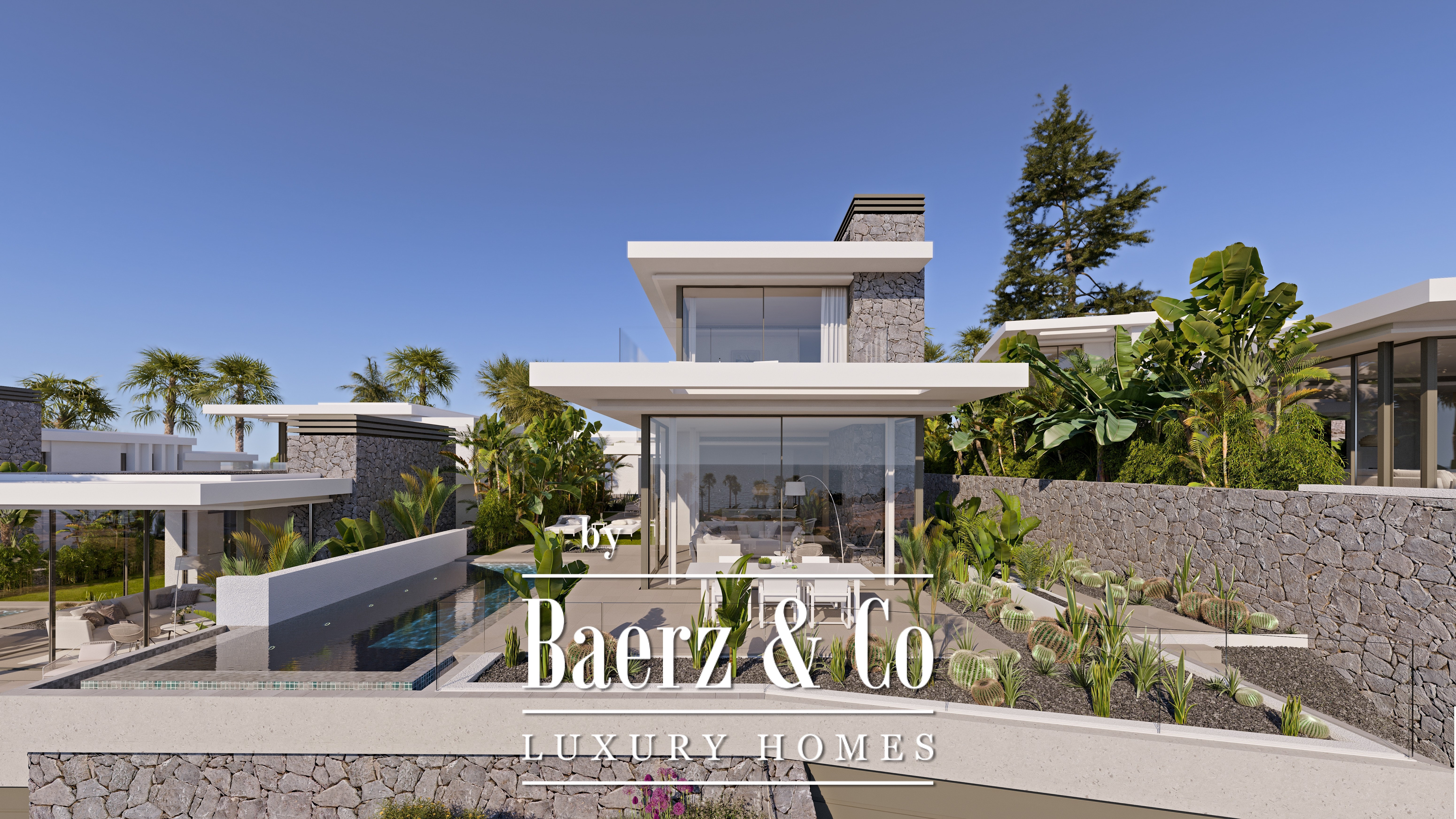 We zijn verheugd u deze vrijstaande villa's met 3 slaapkamers en een modern design aan te bieden, elk met uitzicht op zee, een open keuken, een privézwembad, aangelegde tuinen, drieënhalf badkamers, een open haard en een privégarage.