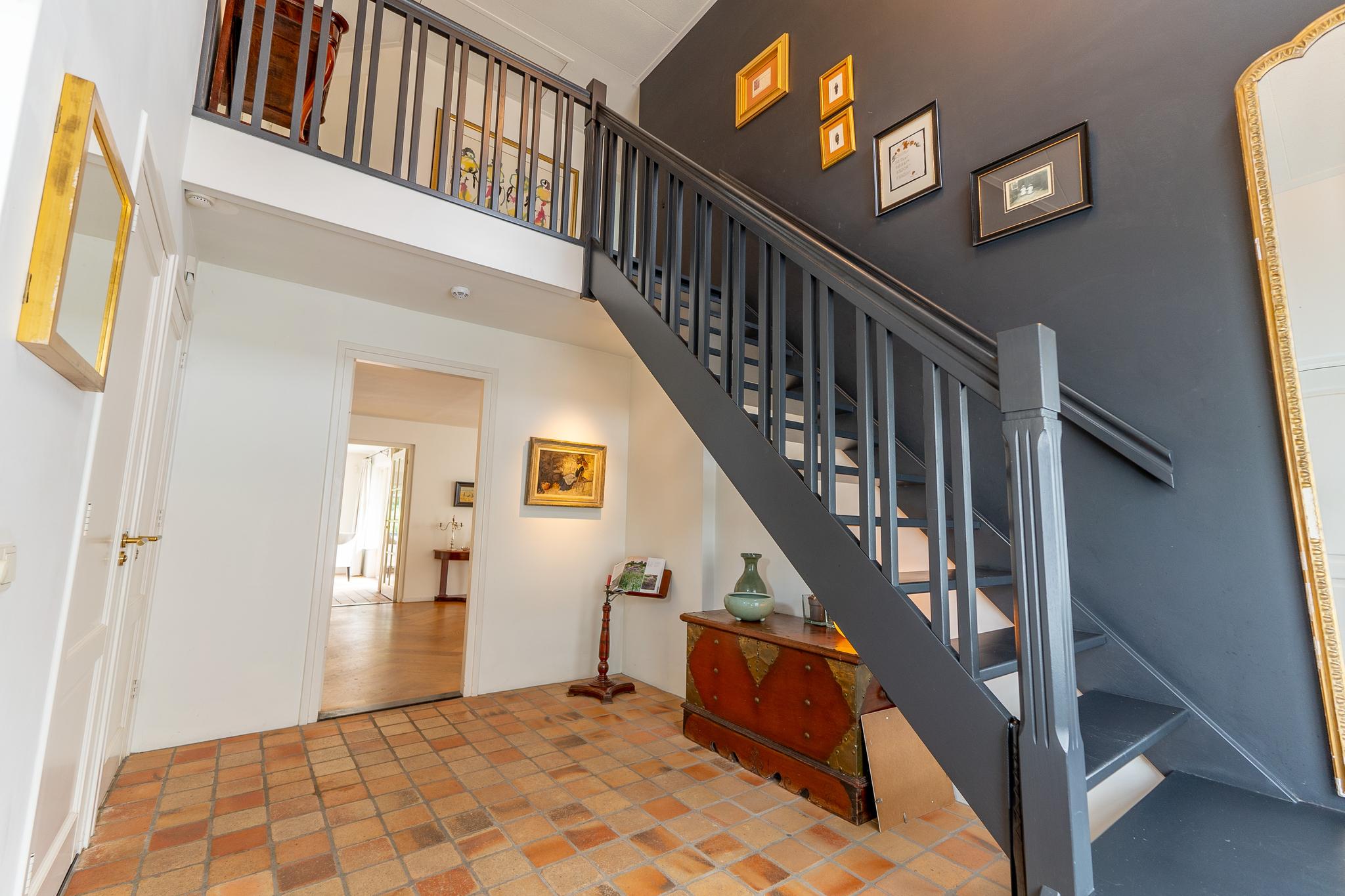 Entree, prachtige hal met hoog plafond en trapgang en toegang tot toilet en woonkamer.