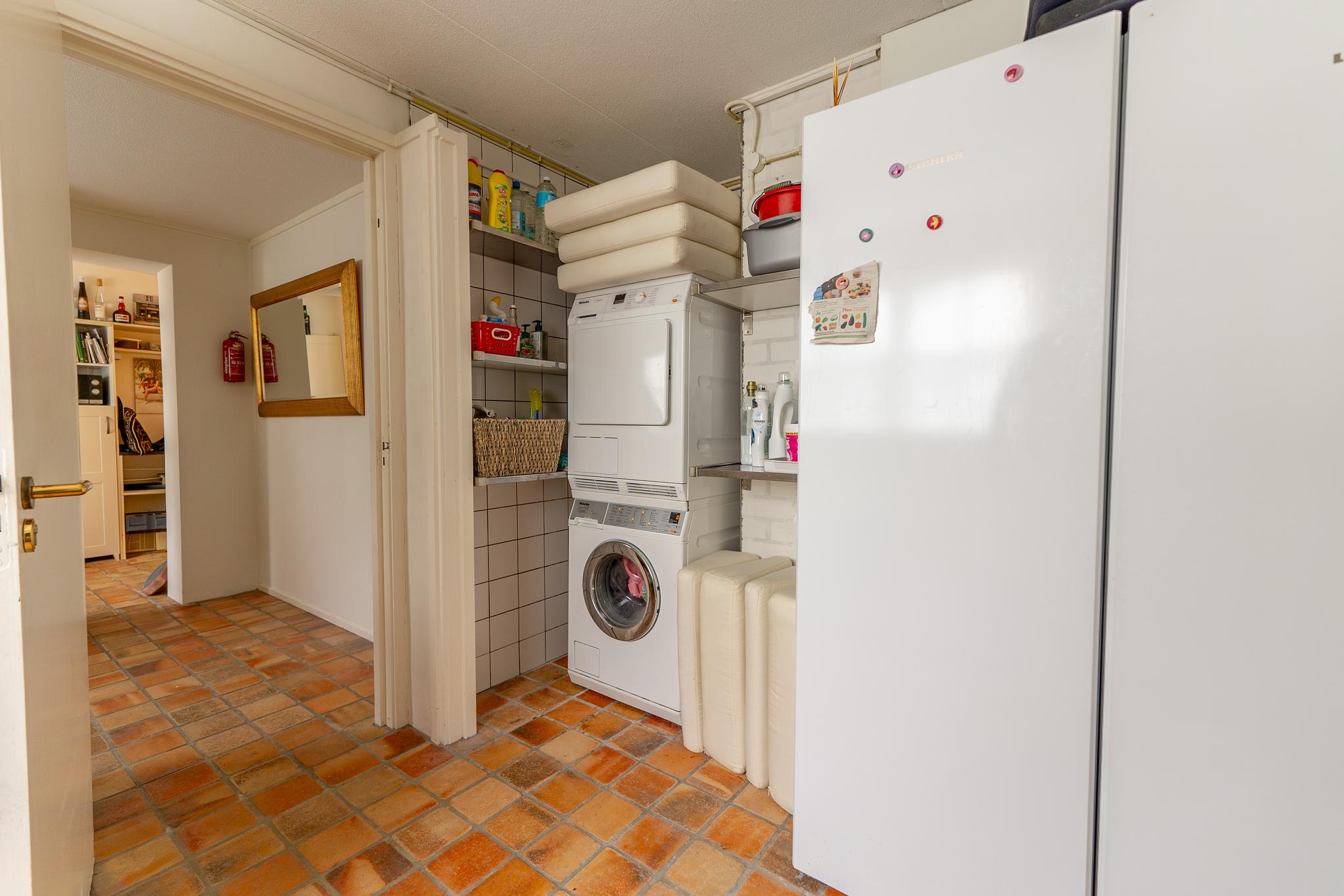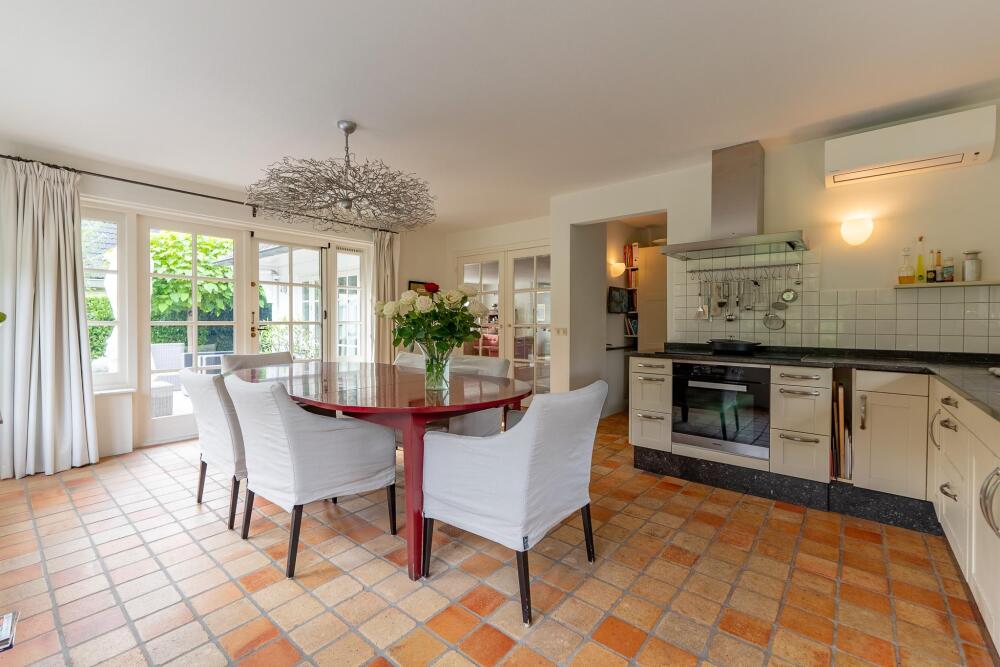 Tevens is de woonkamer voorzien van een airconditioner en openslaande deuren naar de achtertuin. Vanuit de woonkamer bereikt u de gezellige en ruime woonkeuken voorzien van divers inbouwapparatuur en veel ramen en openslaande deuren naar de tuin. De bijkeukens zijn praktisch ingedeeld en bieden veel berg, provisieruimte en tevens de opstelling voor wasmachine en droger.