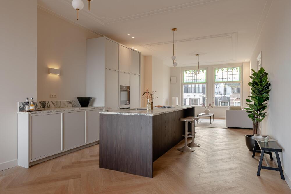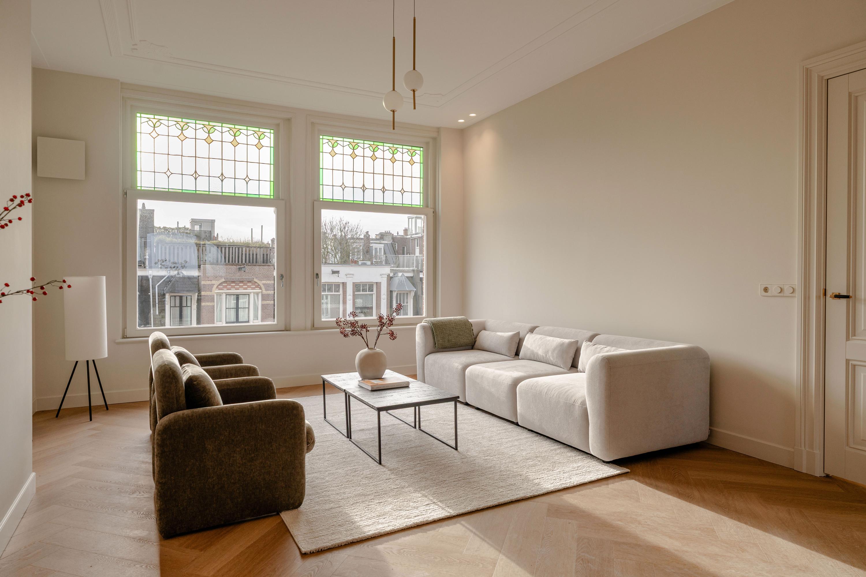 Aan de geliefde Koninginneweg in Amsterdam Oud-Zuid ligt dit elegant afgewerkte appartement van 87,7 m², gelegen op de derde verdieping. De woning onderscheidt zich door een royale, open leefruimte, hoge plafonds en een rustige ligging met uitzicht over groen aan de achterzijde. Met twee slaapkamers, twee badkamers en een overdekt balkon is dit een verfijnde en comfortabele woonplek in de directe nabijheid van het Vondelpark en het Museumkwartier.