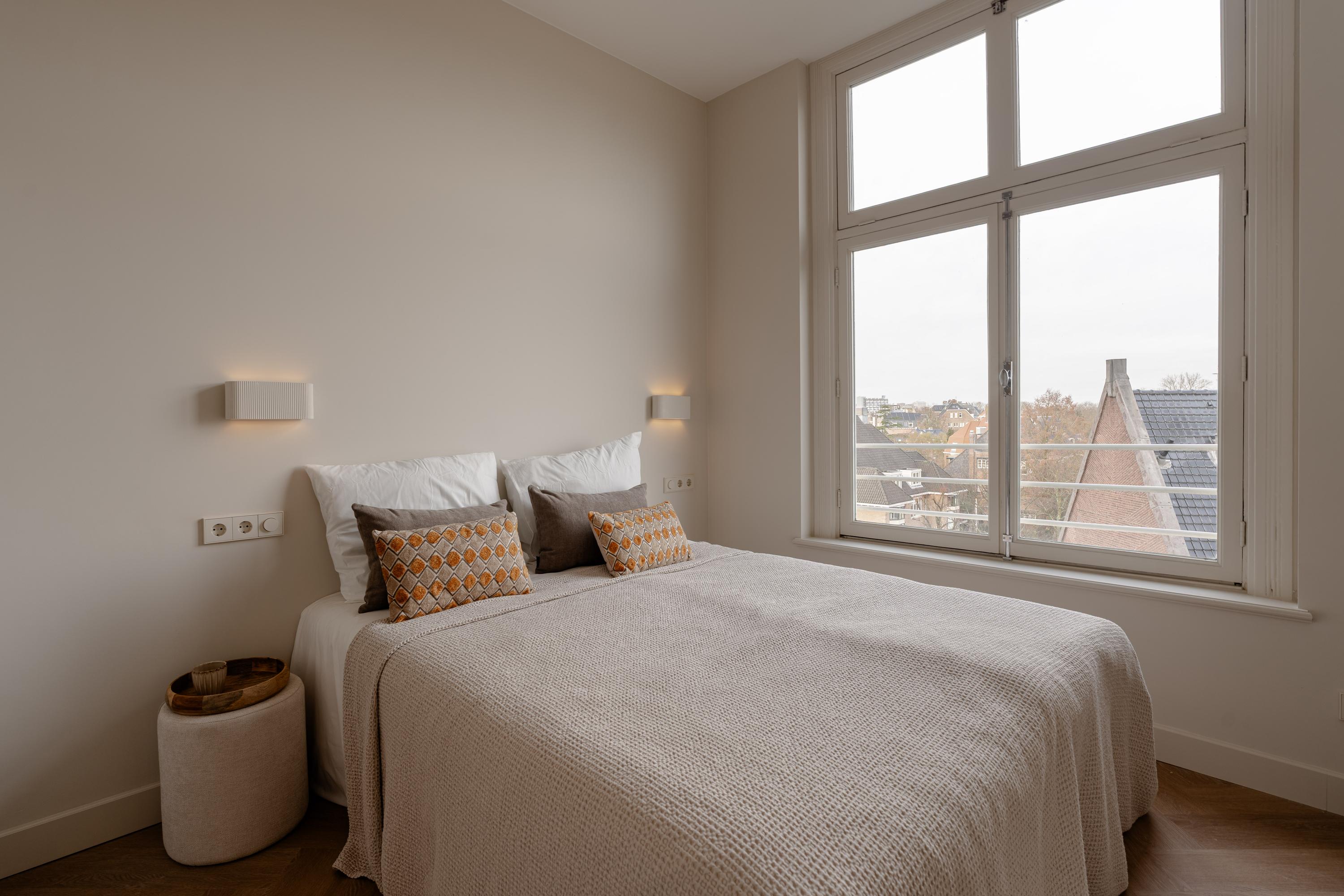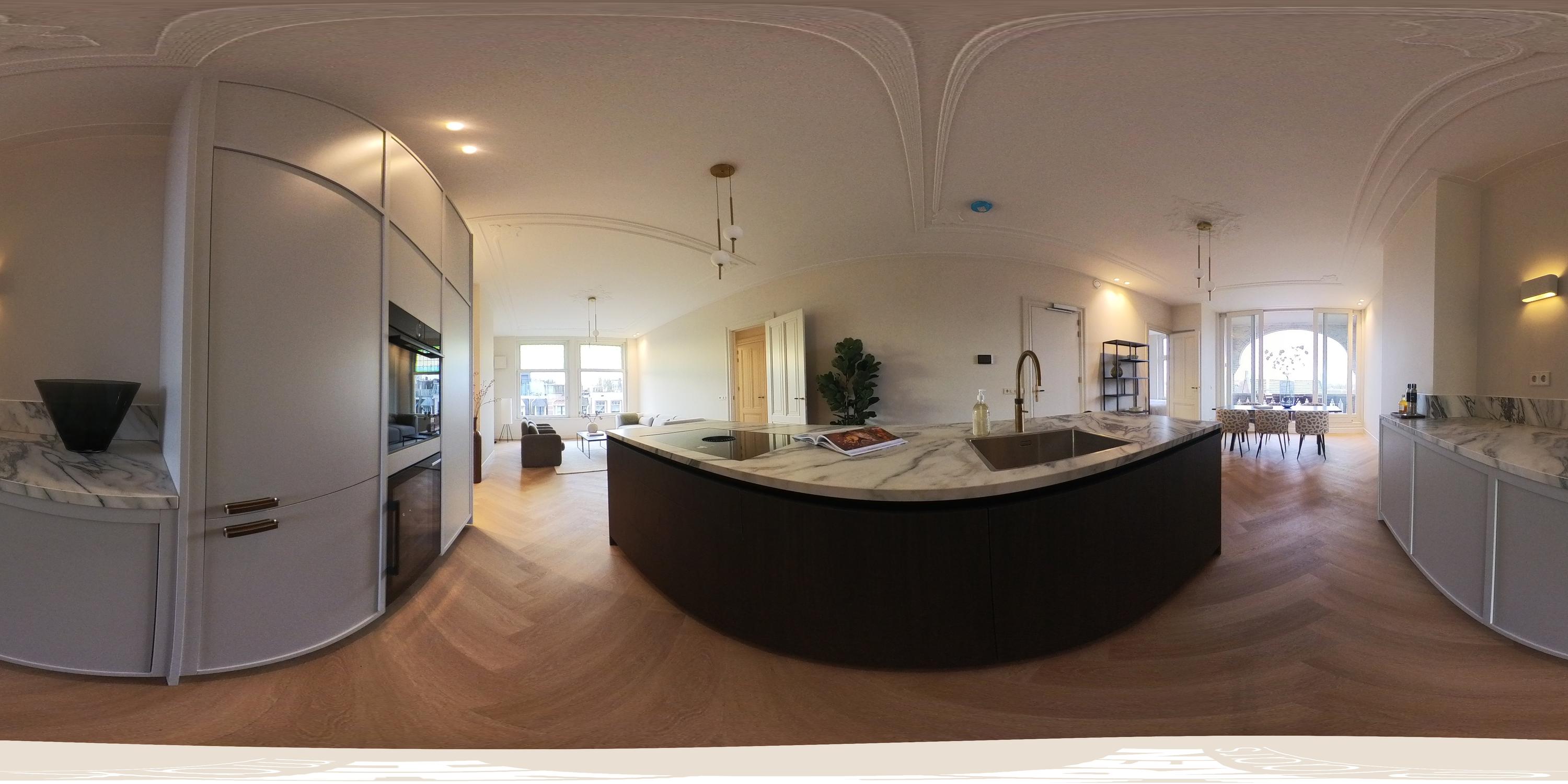 Dit luxe appartement is gelegen op de derde verdieping en wordt gekenmerkt door een ruime en open indeling, met grote raampartijen aan zowel de voor- als achterzijde die zorgen voor een prettige lichtinval. De woning is hoogwaardig afgewerkt en biedt een comfortabele woonomgeving met een rustige, verfijnde uitstraling. De woonkamer is gesitueerd aan de voorzijde van het appartement en beschikt over een plafondhoogte van circa 3,07 meter. De woonruimte vormt samen met de keuken en eetkamer één grote, open leefruimte. De luxe keuken is centraal in de woning gelegen en uitgevoerd met een royaal spoel- en kookeiland, voorzien van een inductiekookplaat, spoelbak en Quooker. Daarnaast beschikt de keuken over een koelkast, vriezer, combi-oven, klimaatkast en voldoende kastruimte. Het kookeiland fungeert tevens als comfortabele bar. Aan de achterzijde van het appartement bevindt zich het overdekte balkon, dat een fraai uitzicht biedt over de groene tuinen aan de achterzijde en een rustige plek vormt om buiten te zitten. Aan de voorzijde van de woning bevindt zich de gang, vanwaar toegang is tot de eerste slaapkamer, het separate toilet, de wasruimte/berging en de eerste badkamer. Deze badkamer is uitgerust met een inloopdouche en een dubbele wastafel met meubel. De tweede slaapkamer is gelegen aan de achterzijde van het appartement en beschikt over vaste kastruimte en een ensuite badkamer, voorzien van een inloopdouche en een wastafel met meubel.
